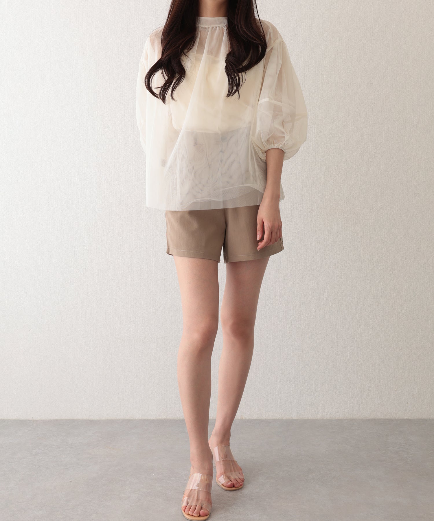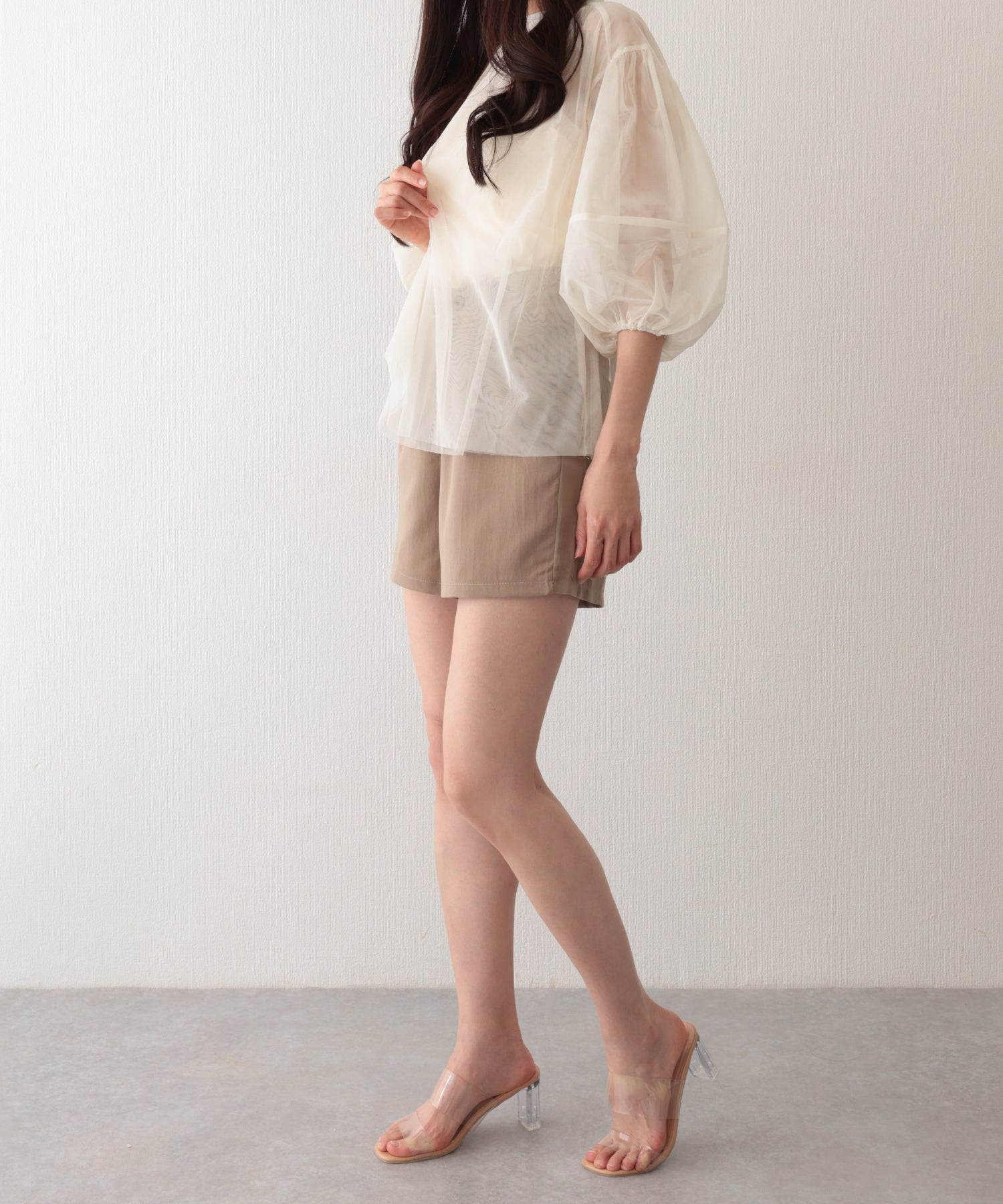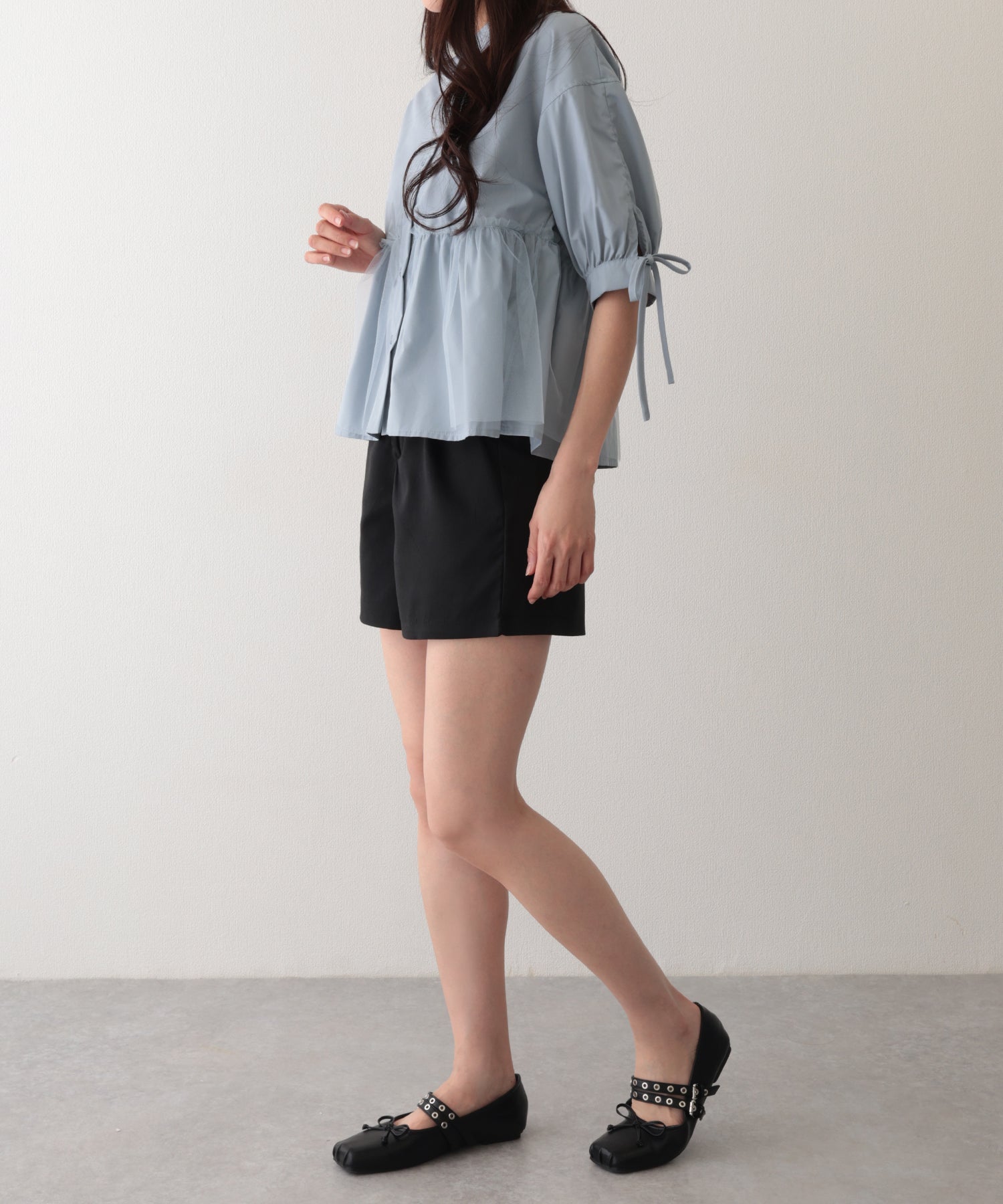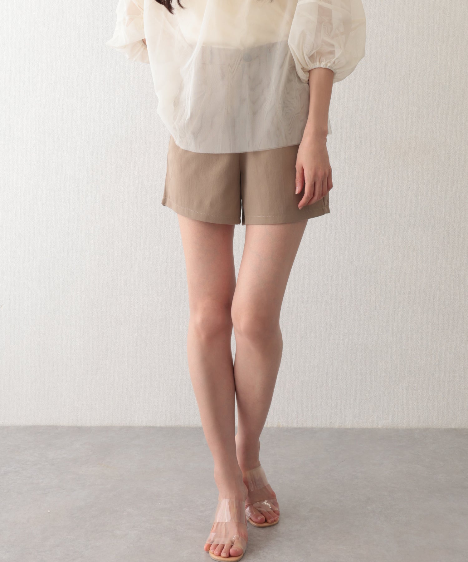 緩やかなフレアシルエットが女性らしいショートパンツ。
