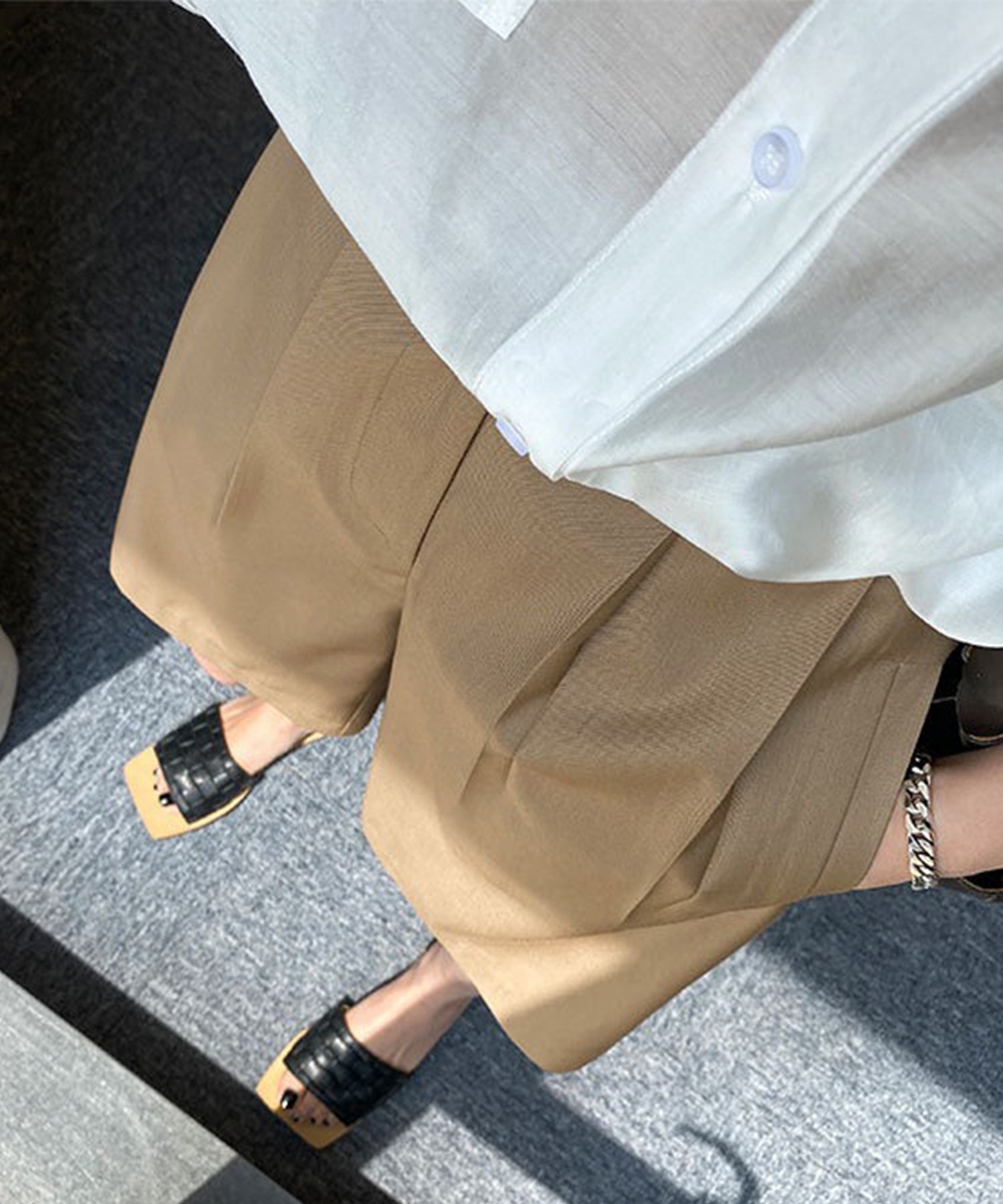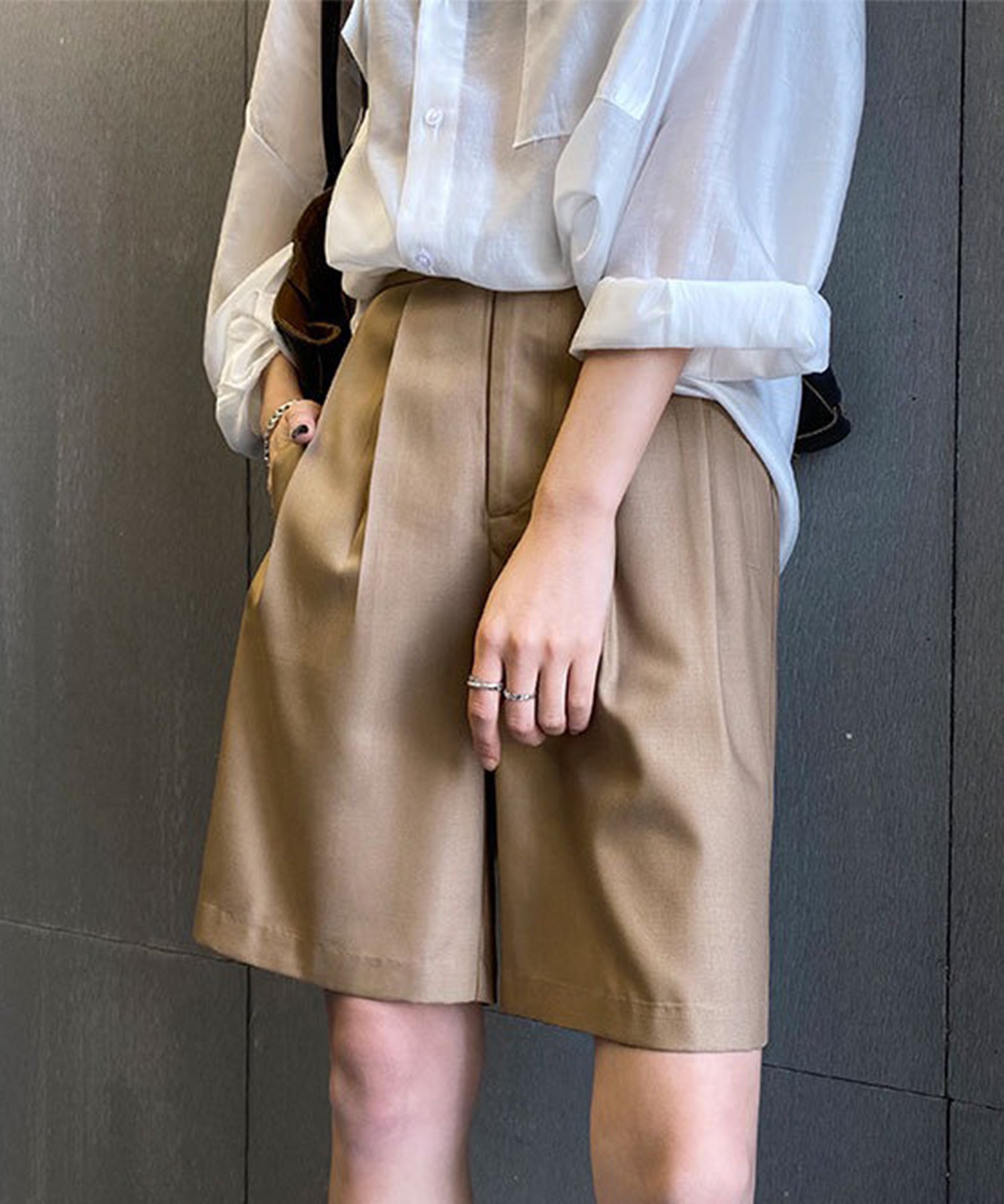 きれいめカジュアルを楽しめるダブルタックのハーフパンツ。