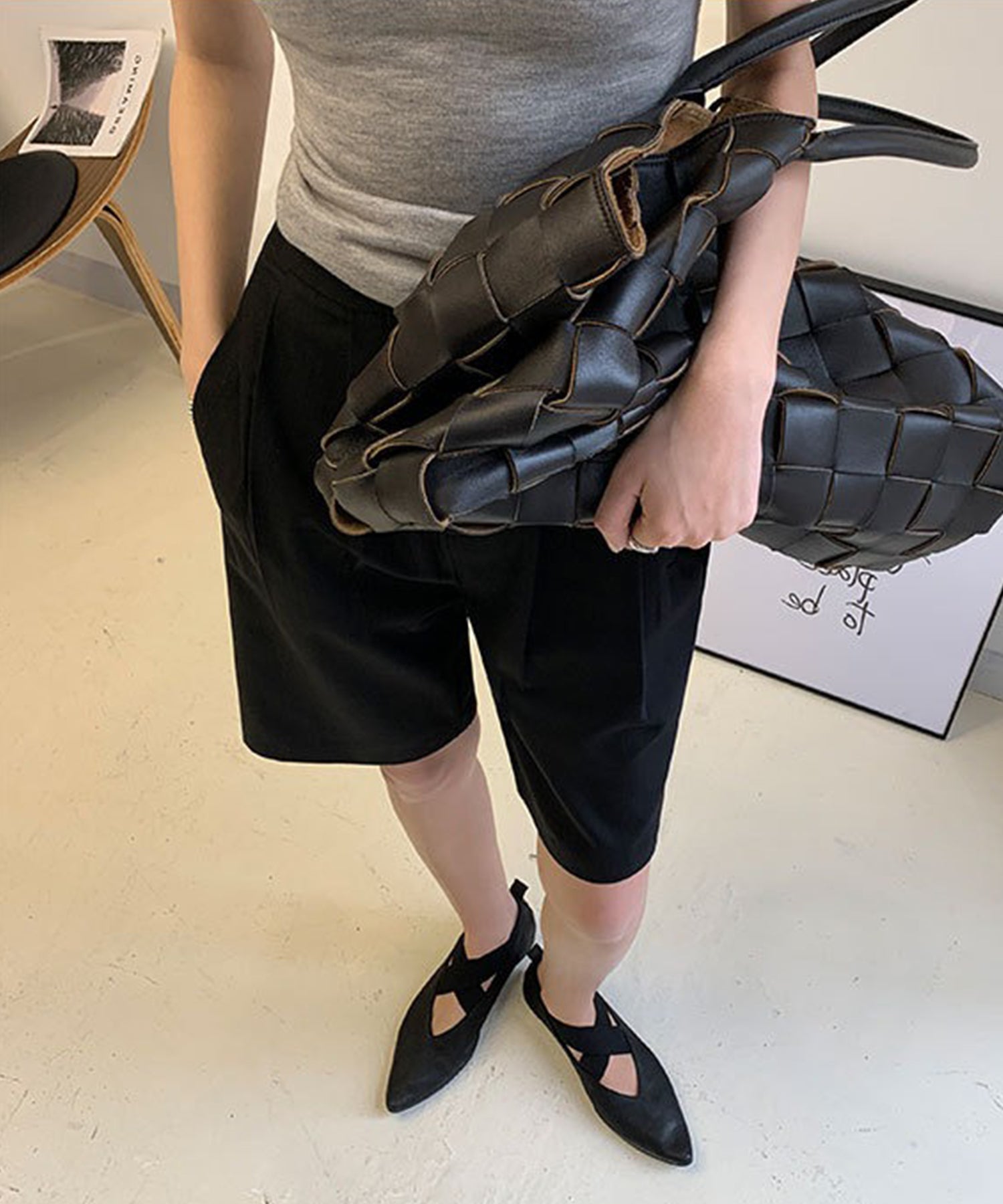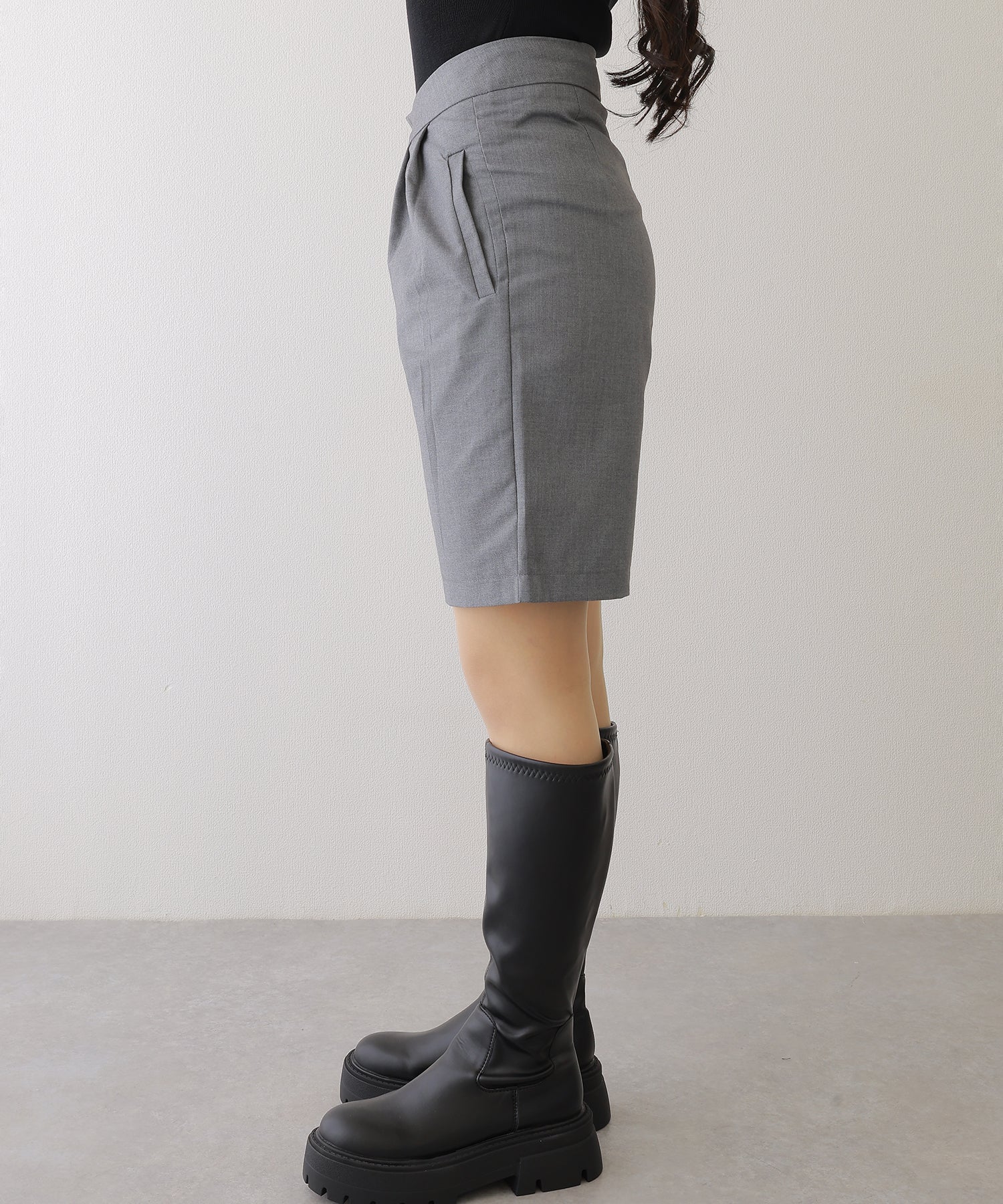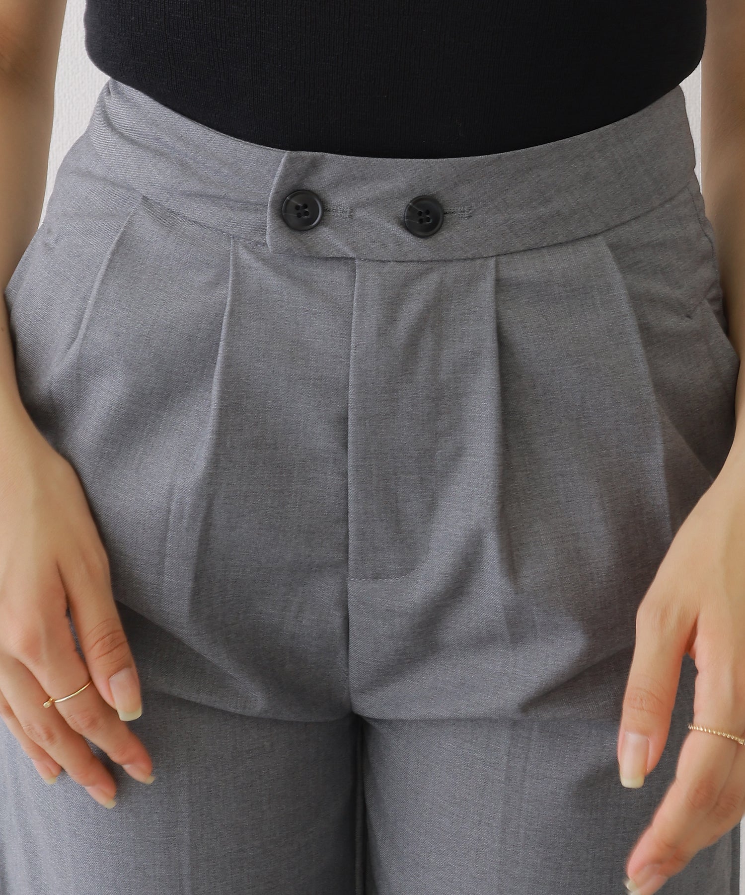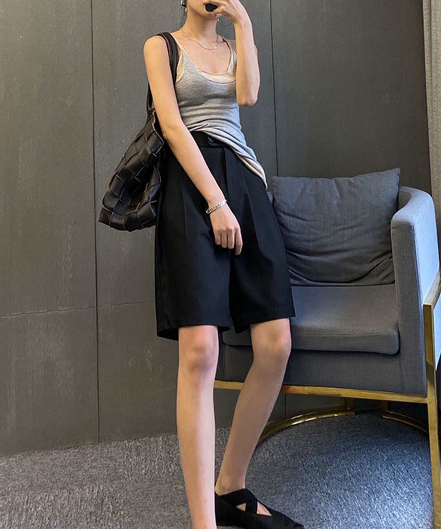 フロントボタン ダブルタック ハイウエスト ハーフ パンツ