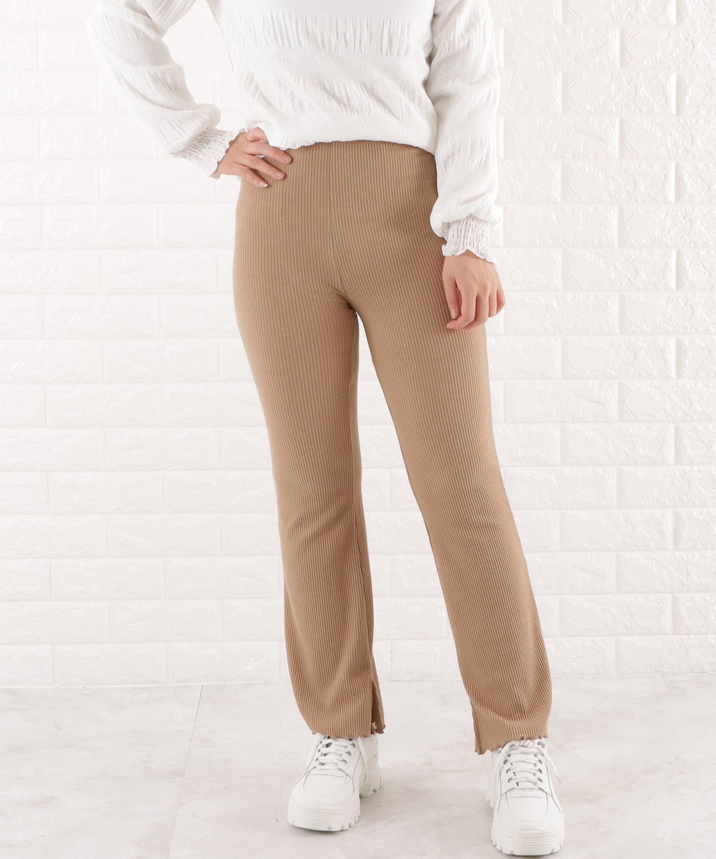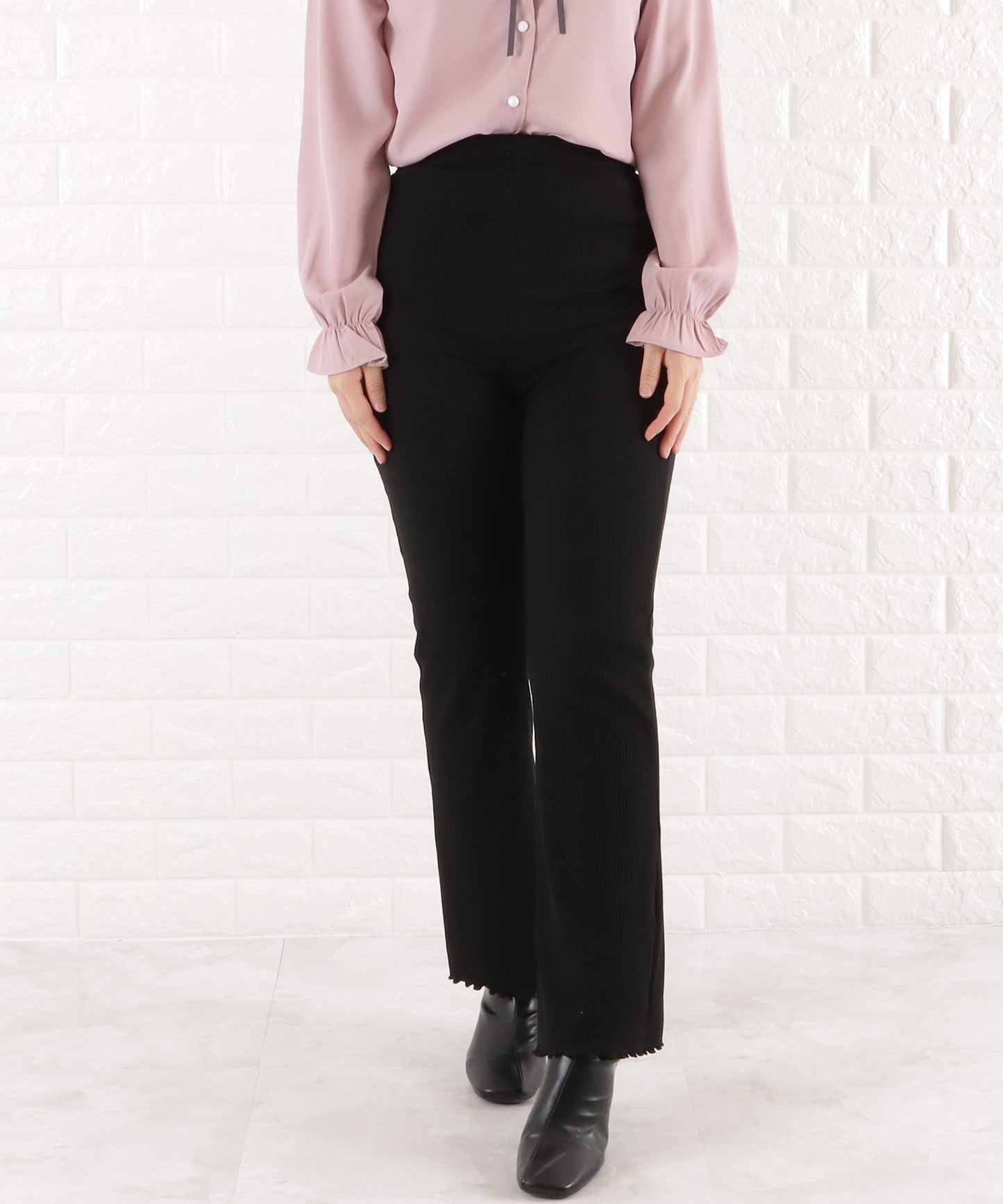 柔らかな生地感で肌触りの良いフレアイージーパンツ。