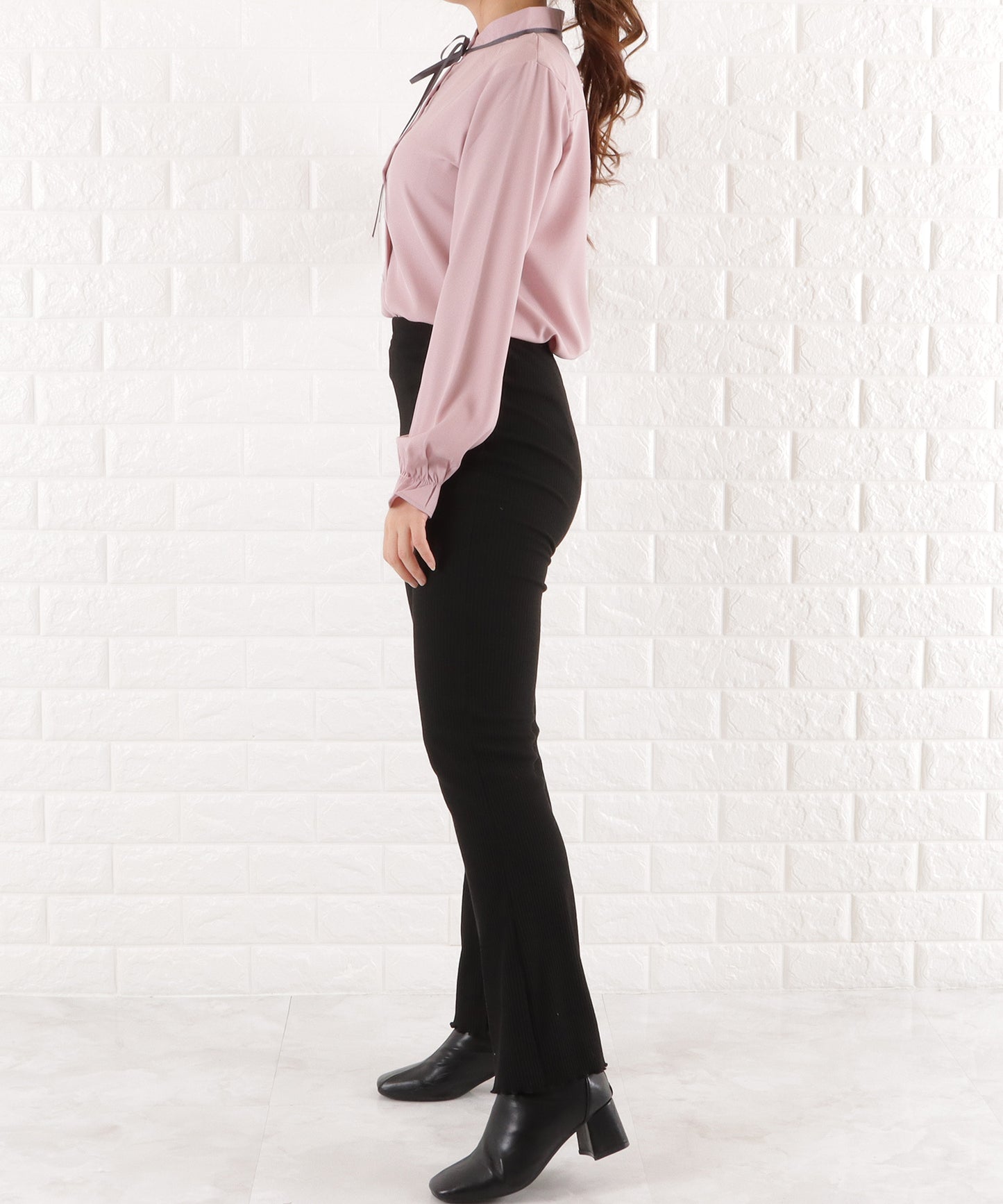 スタンドカラー ボウタイリボン ペプラム ドッキング セットアップ