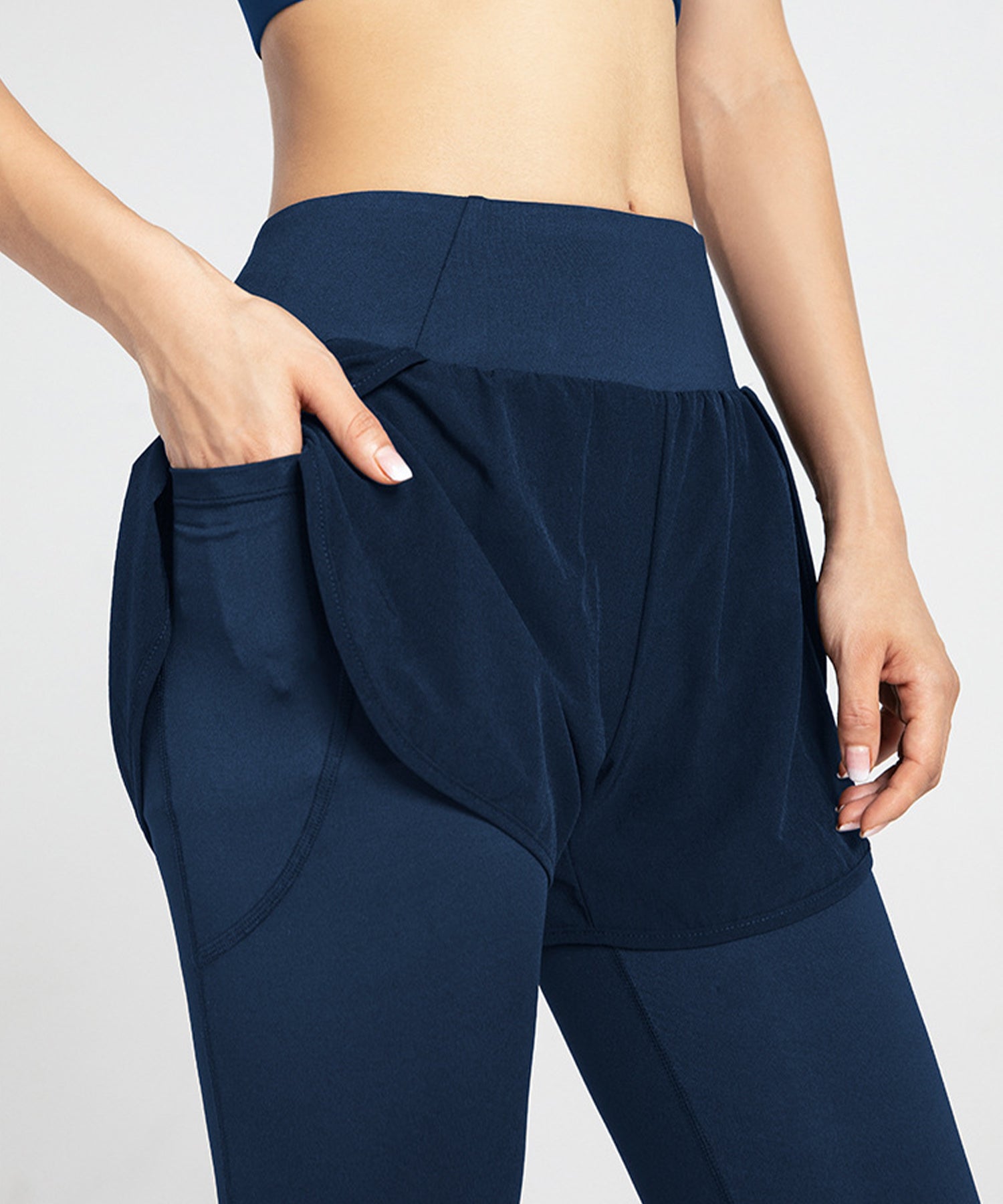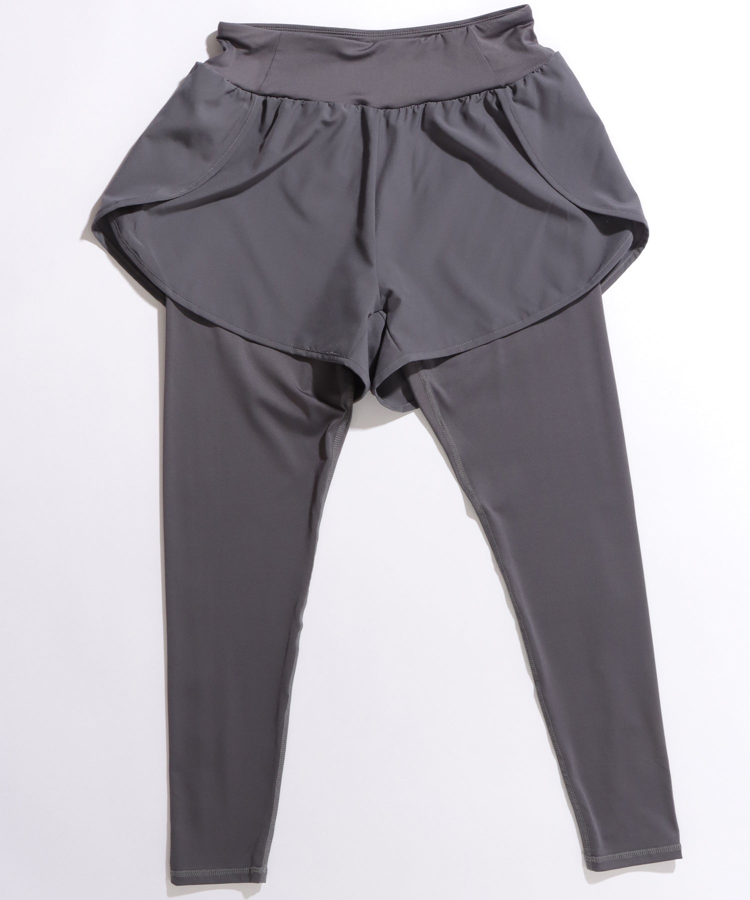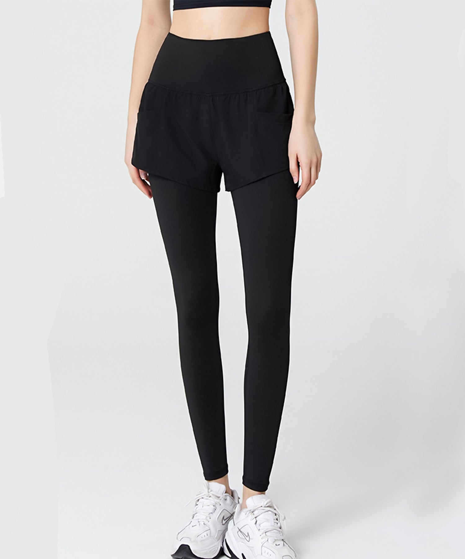 フェイクレイヤード ハイウエスト ポケット付き ヨガ レギンス 水陸両用