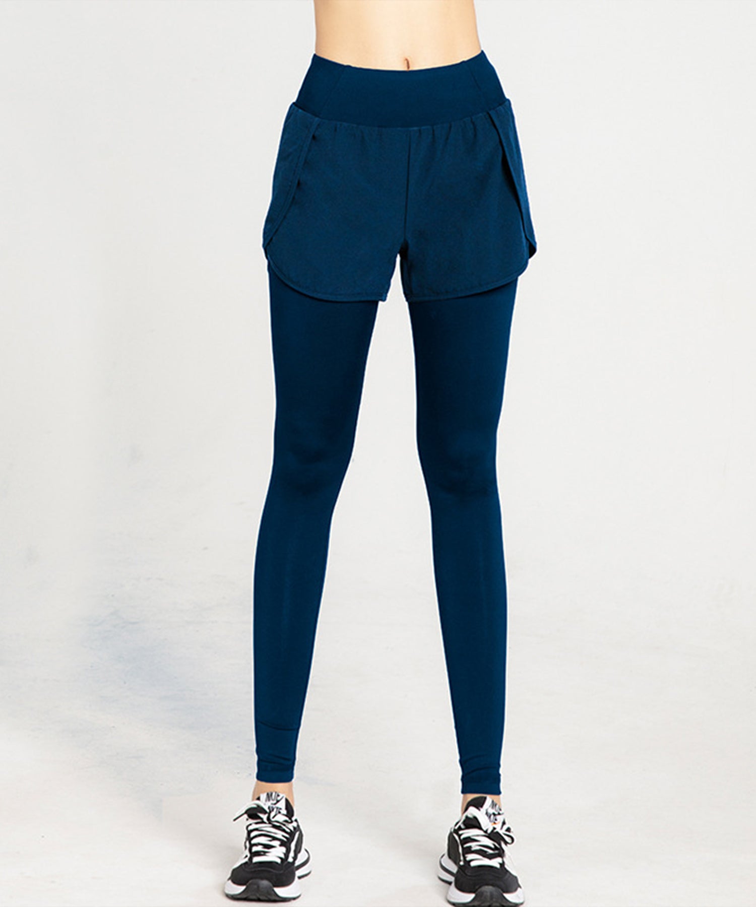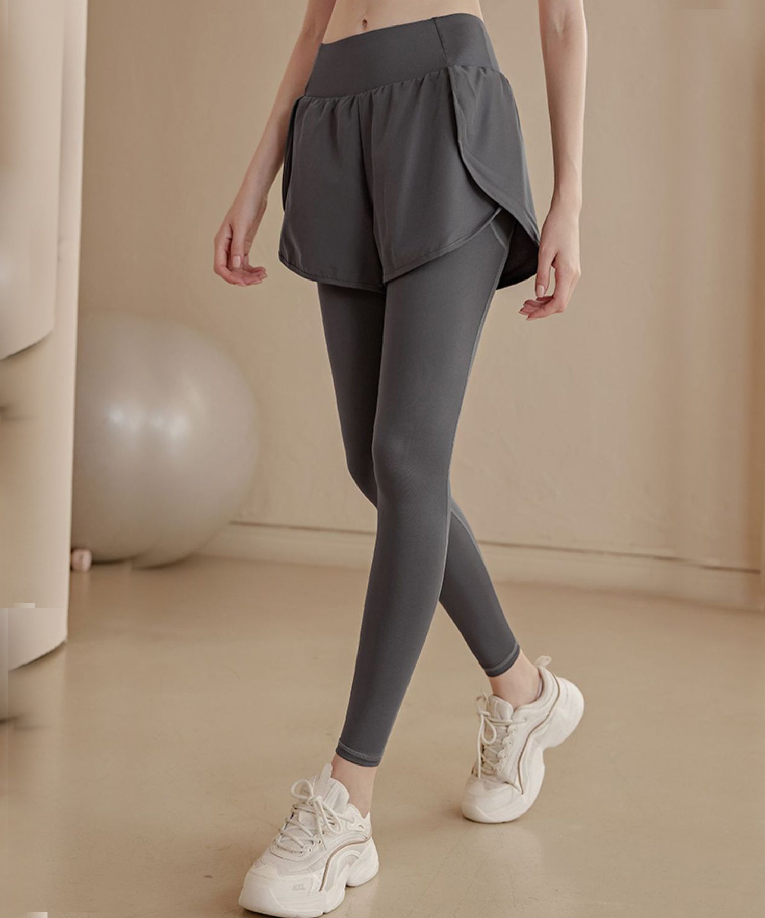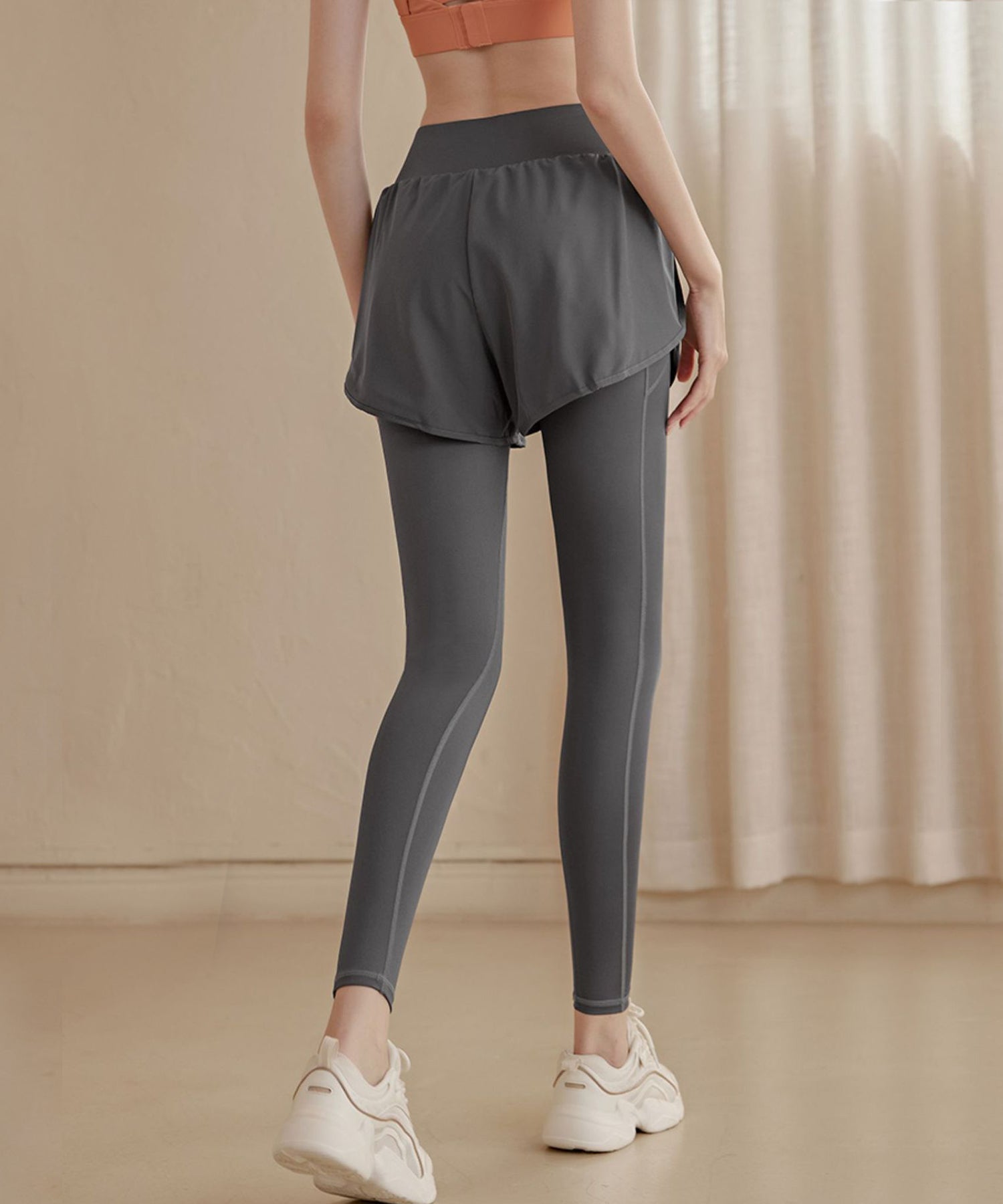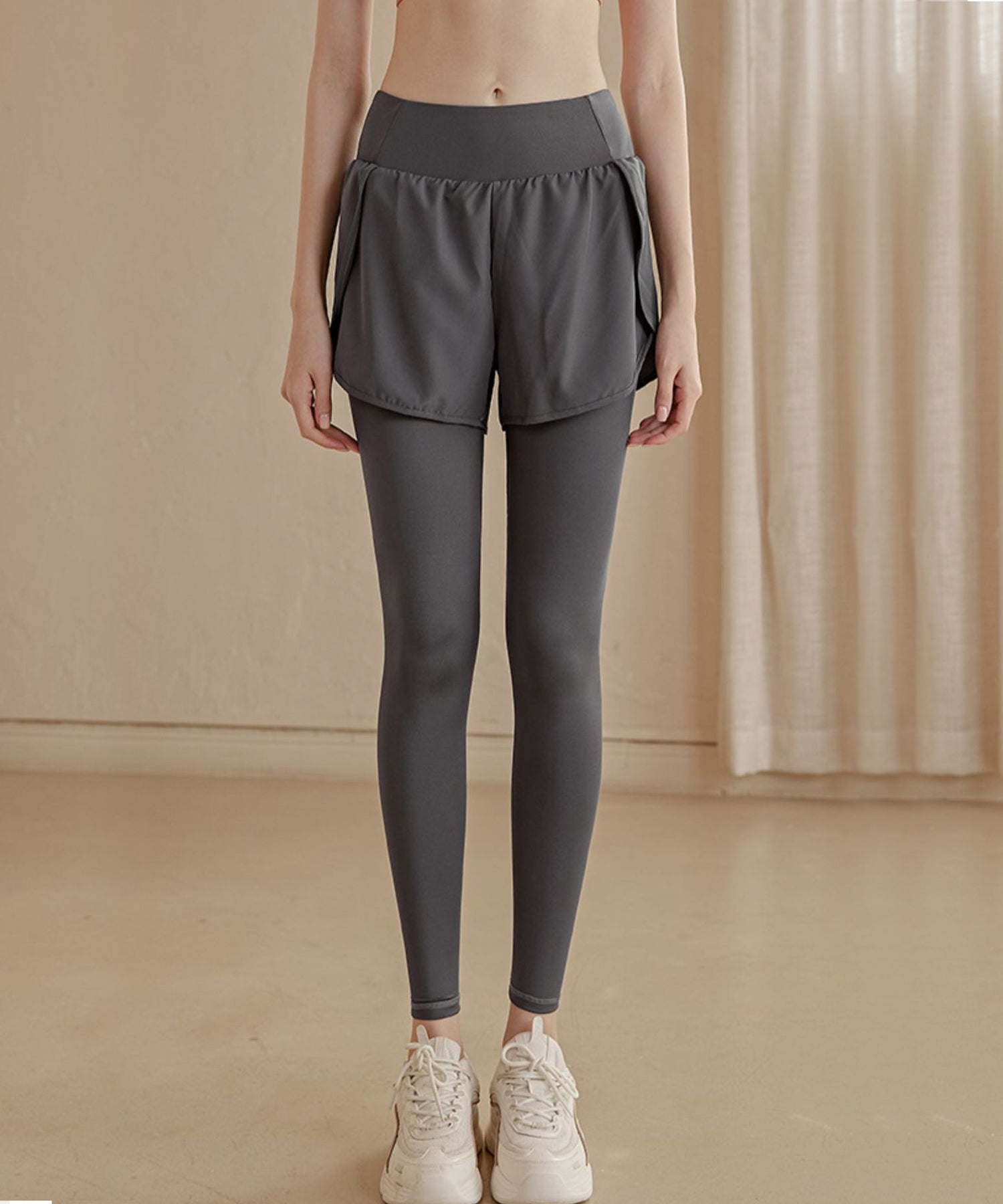 フェイクレイヤード ハイウエスト ポケット付き ヨガ レギンス 水陸両用