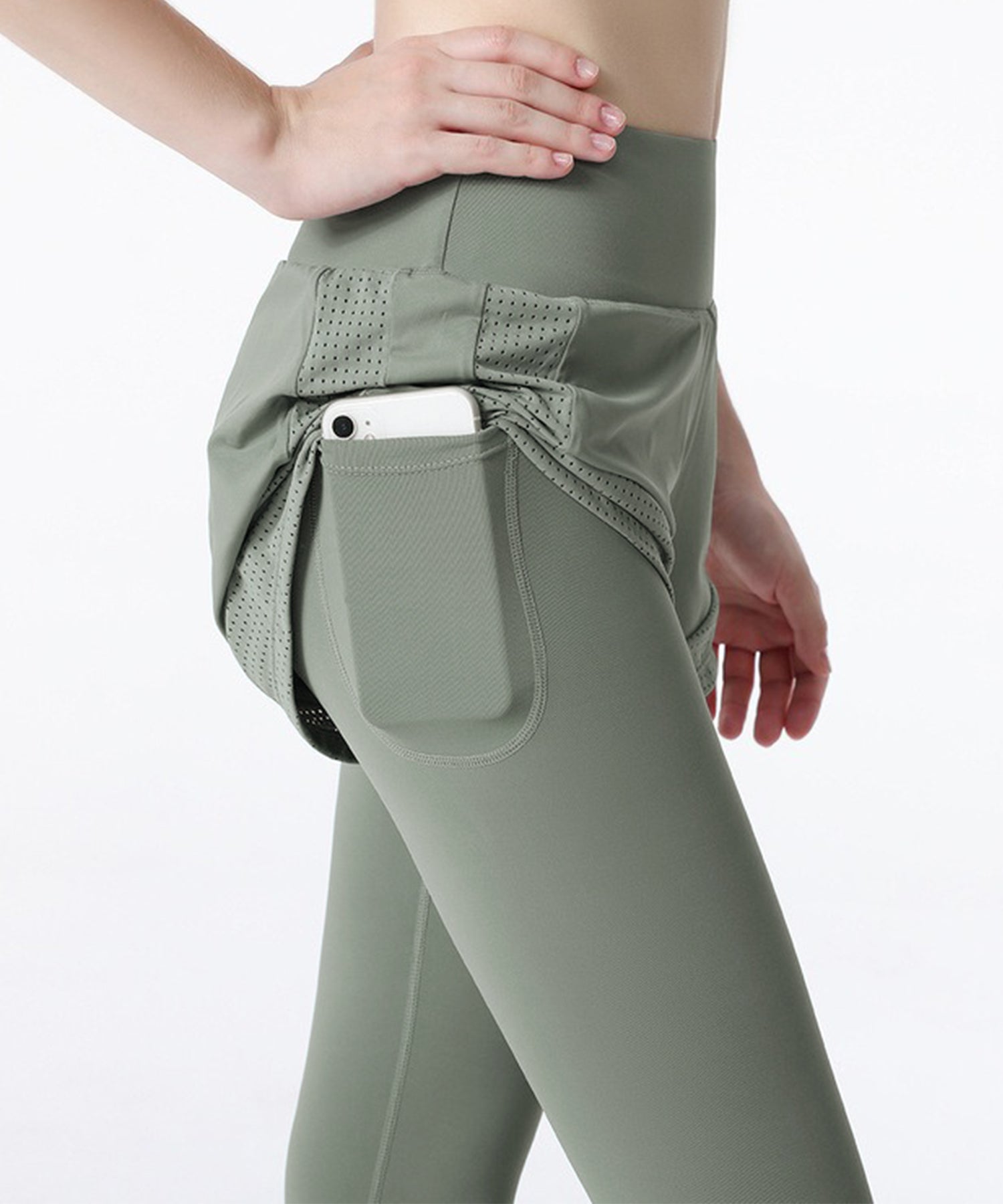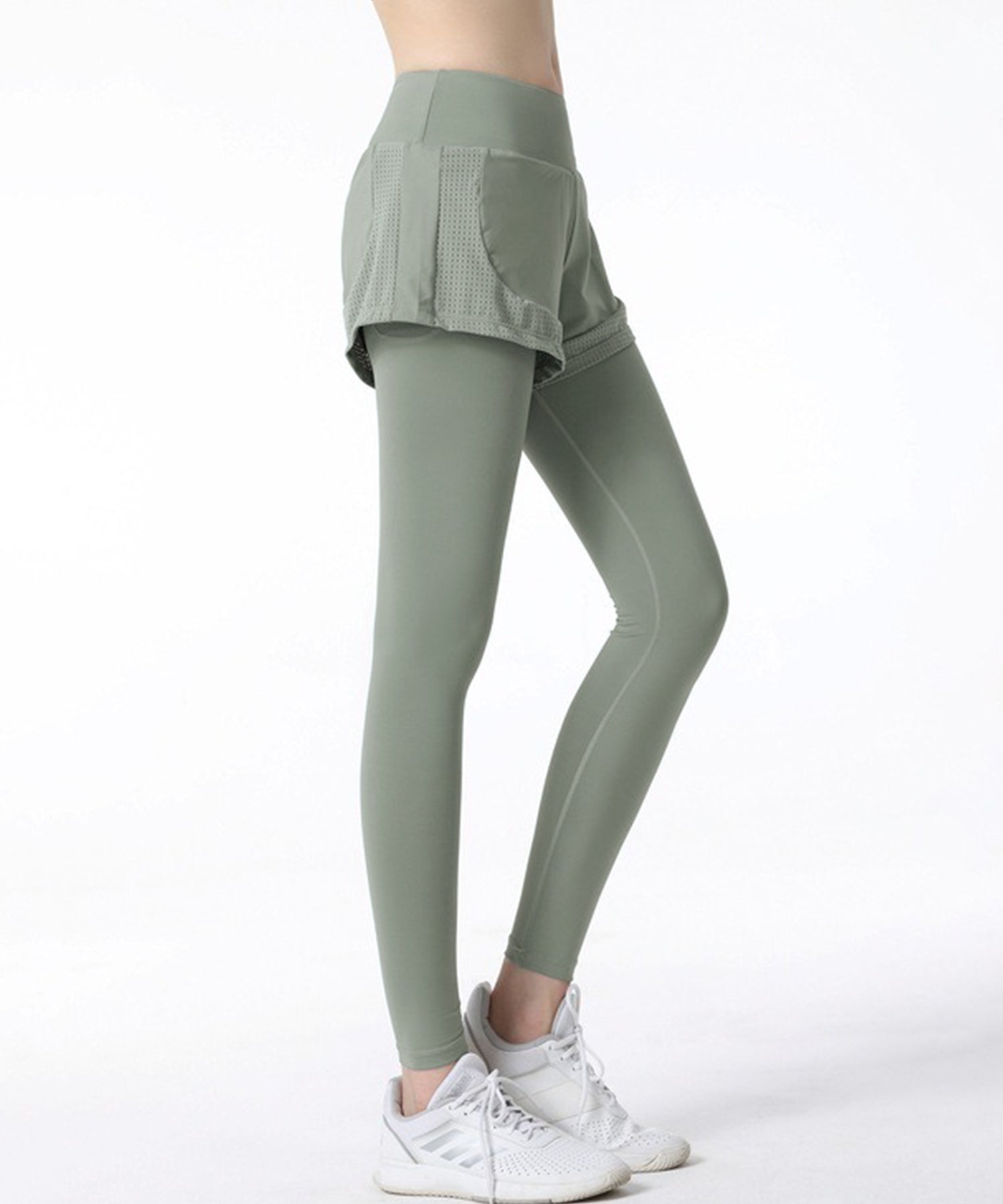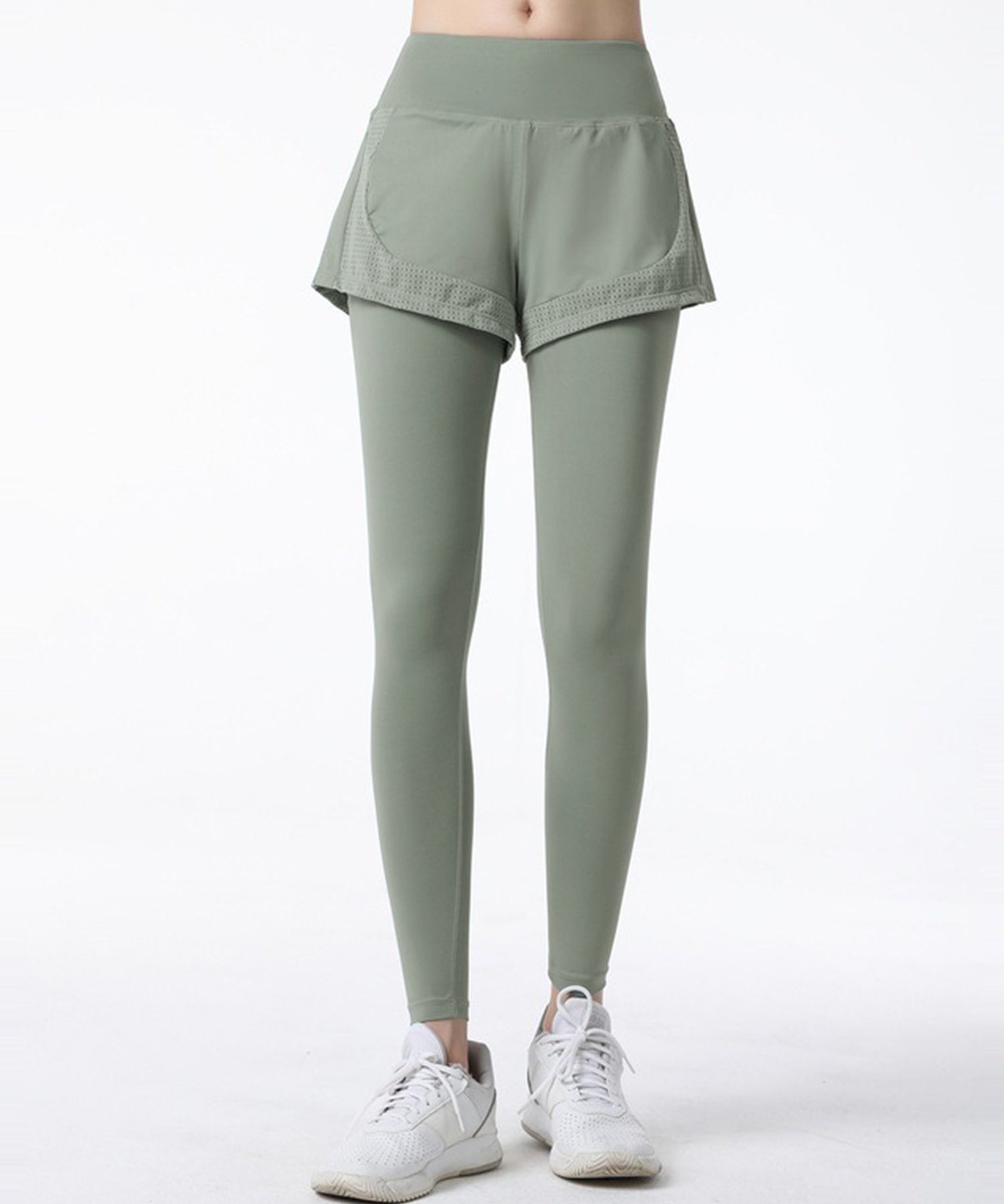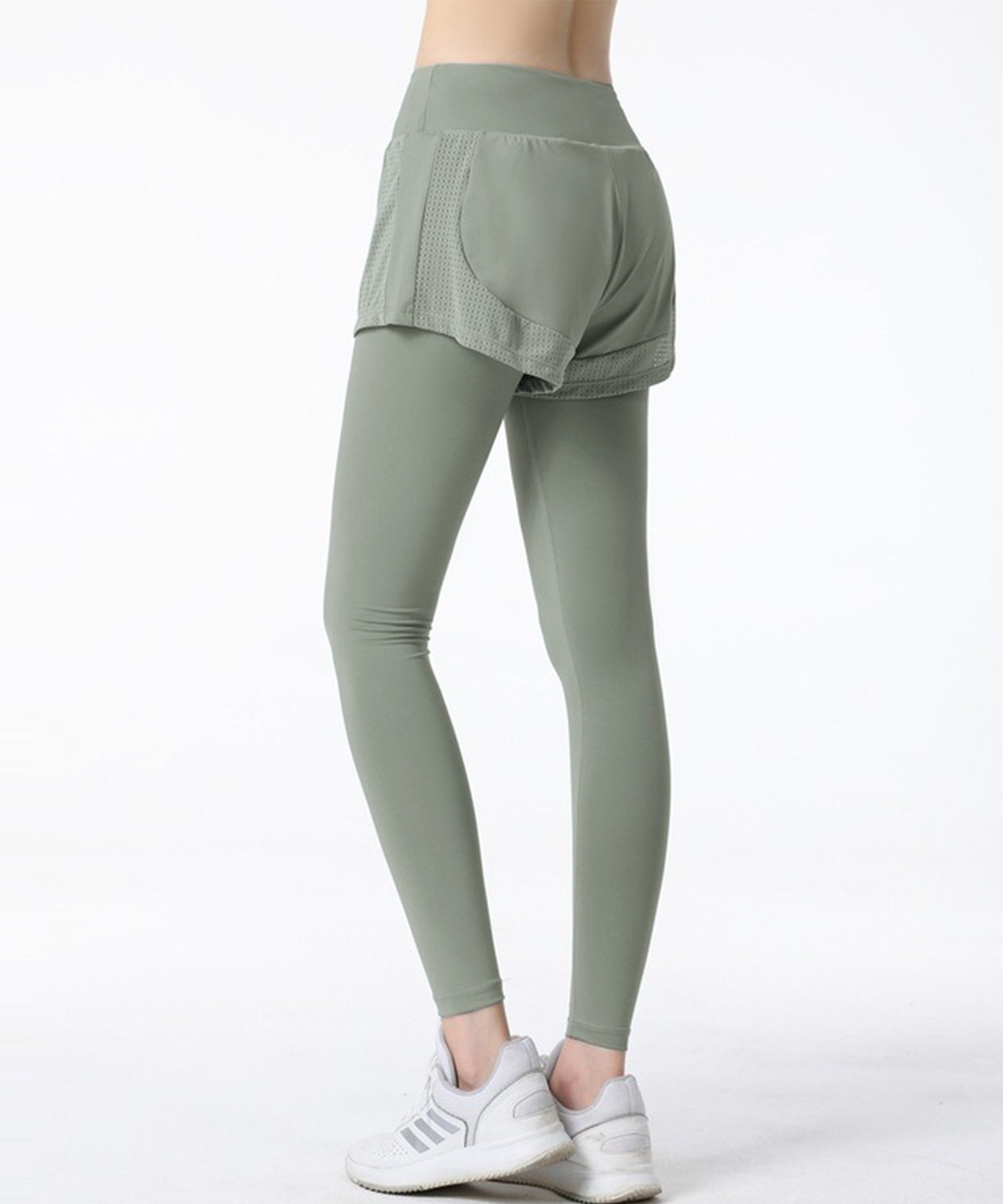 フェイク レイヤード パンツ付き フィットネス ヨガ レギンス 水着 水陸両用