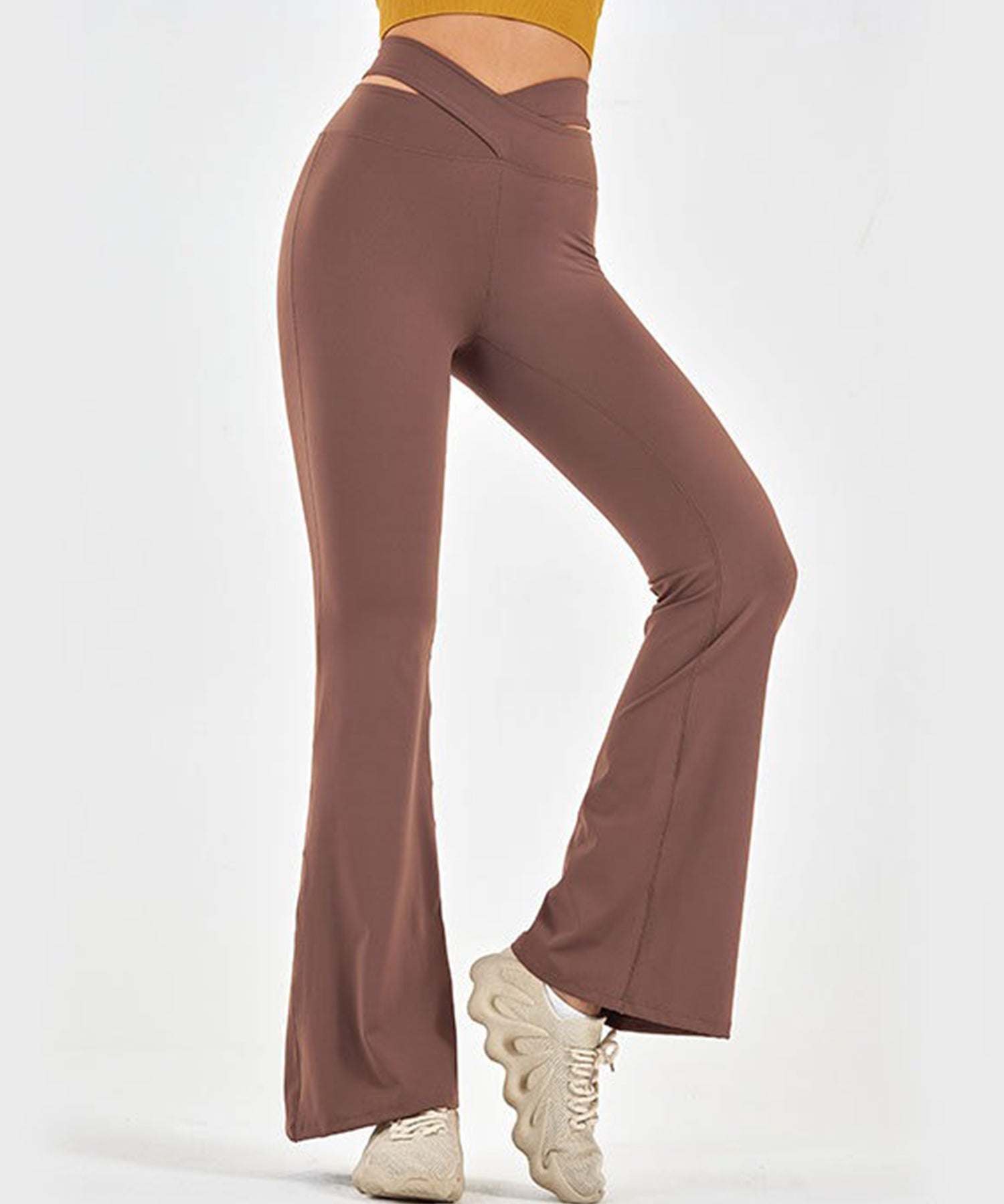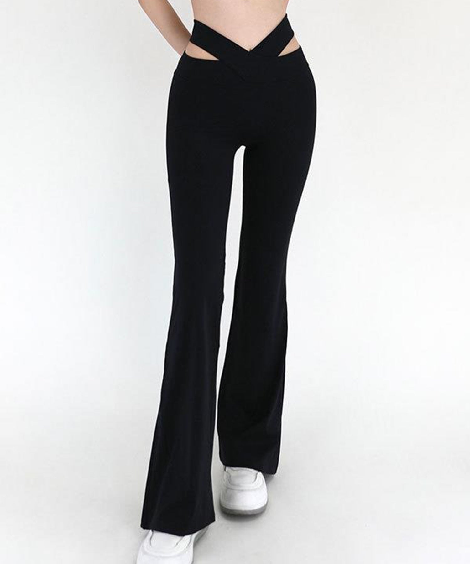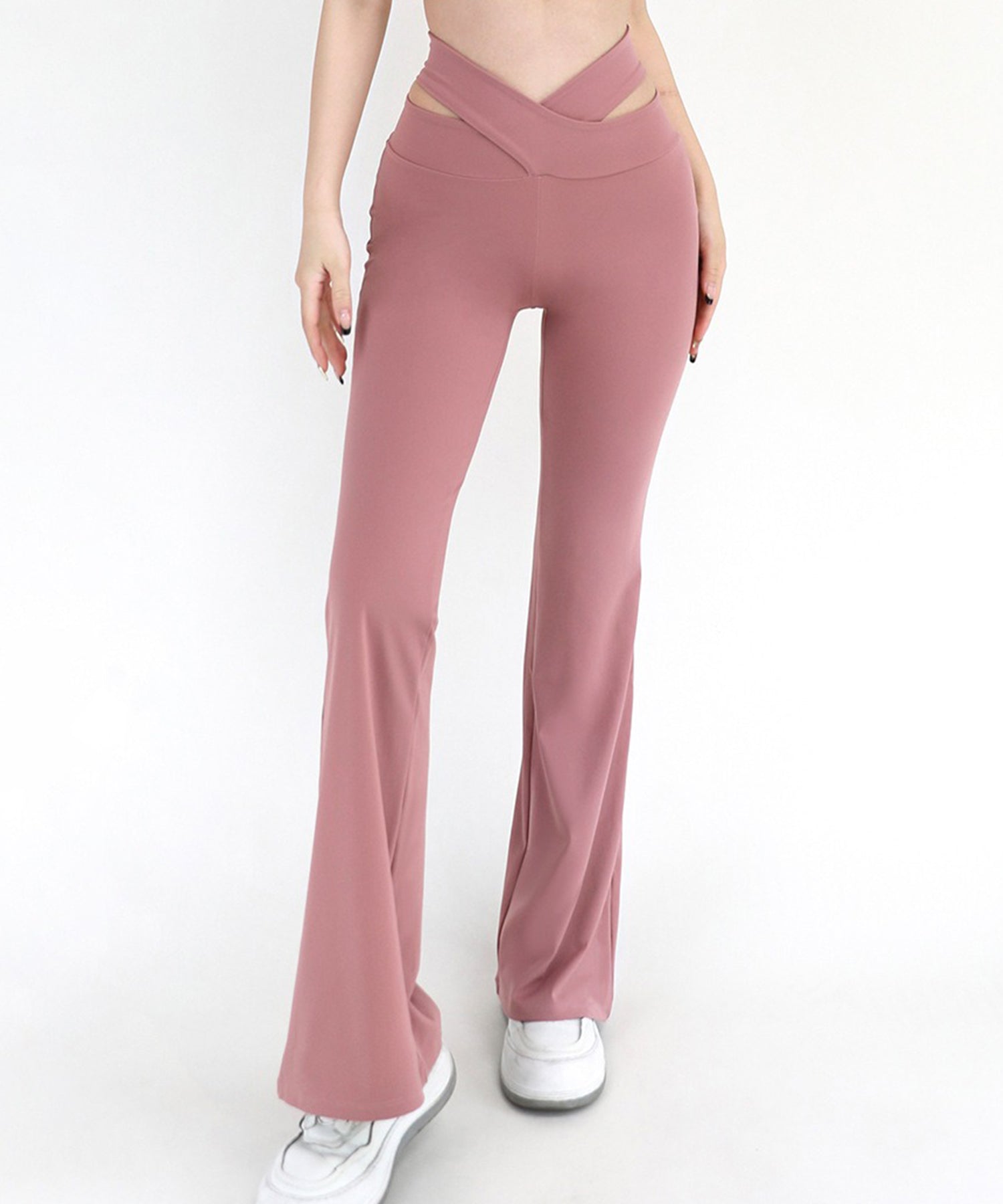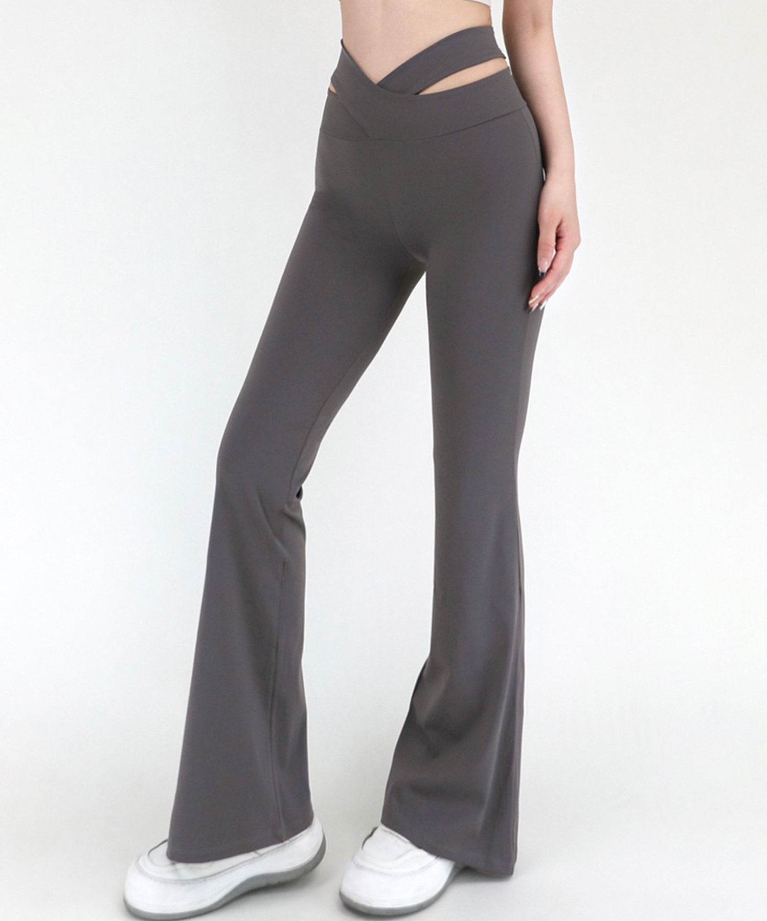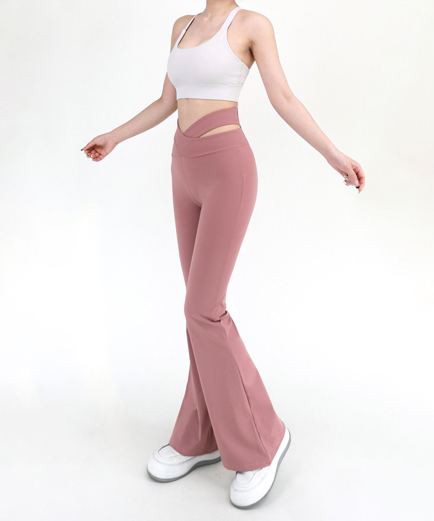 ソリッドカラー V バンド付き フィットネス フレア レギンス 水着 水陸両用
