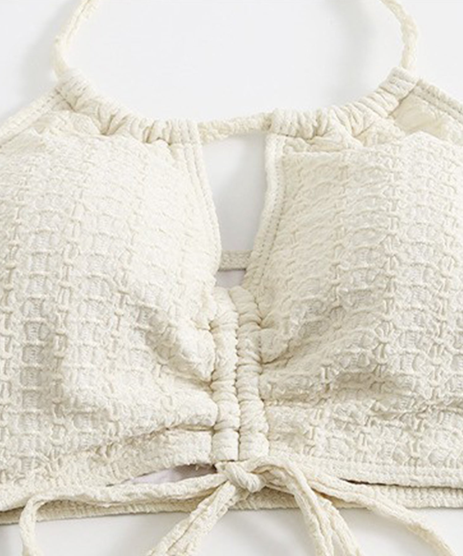 大人っぽいホルターネックに、大きめバストの方にも安心してお使いいただける面積大きめのブラトップ。