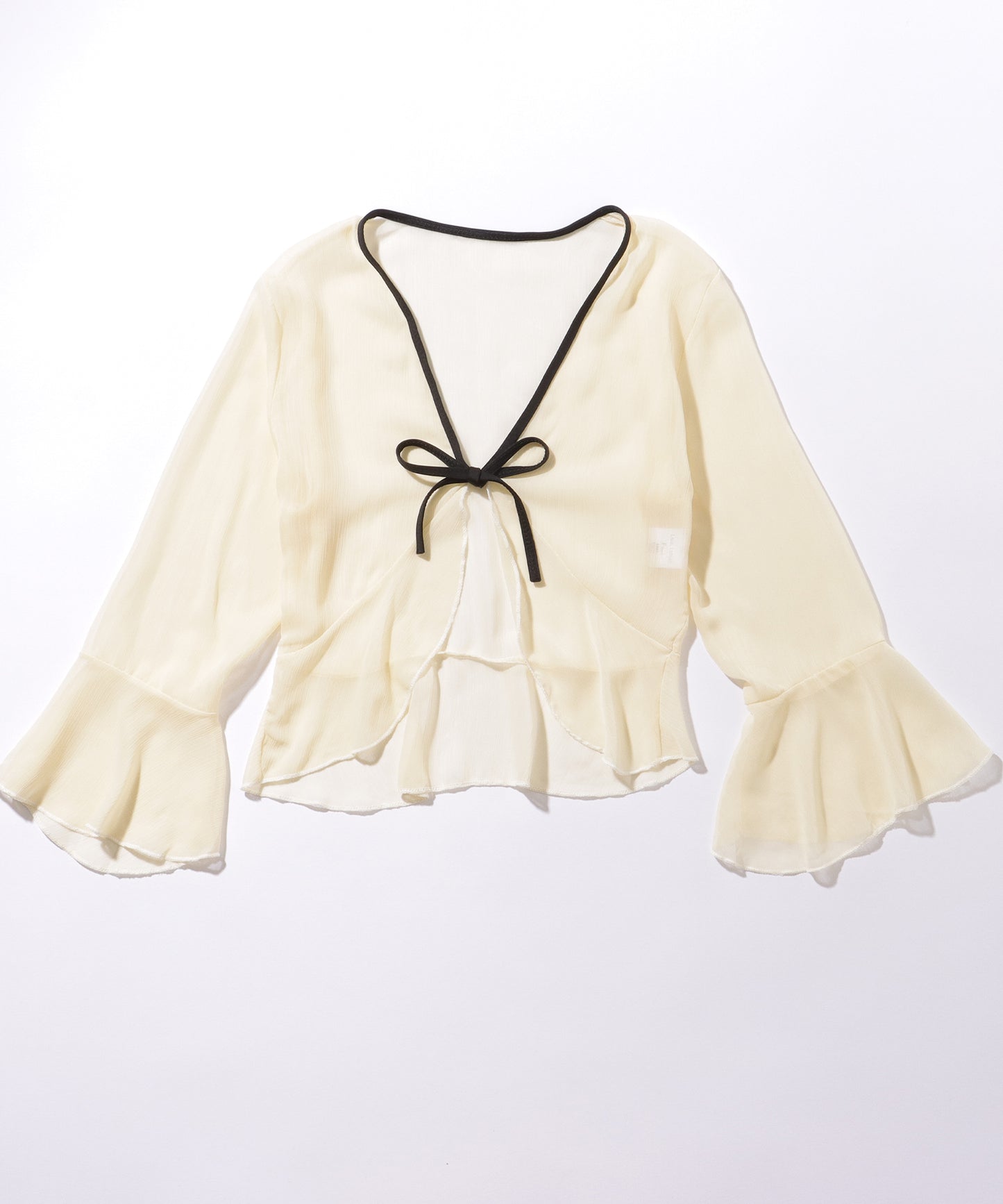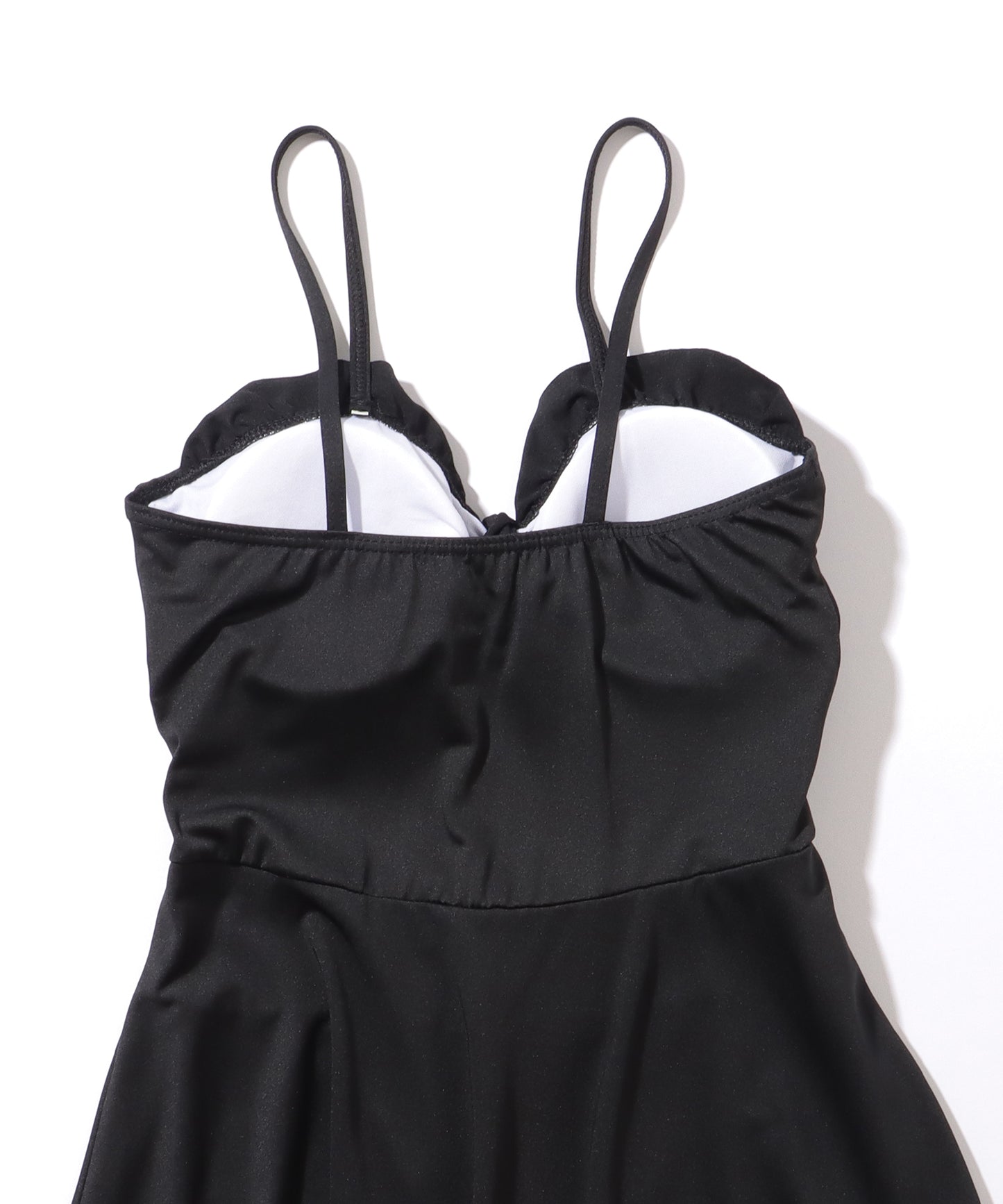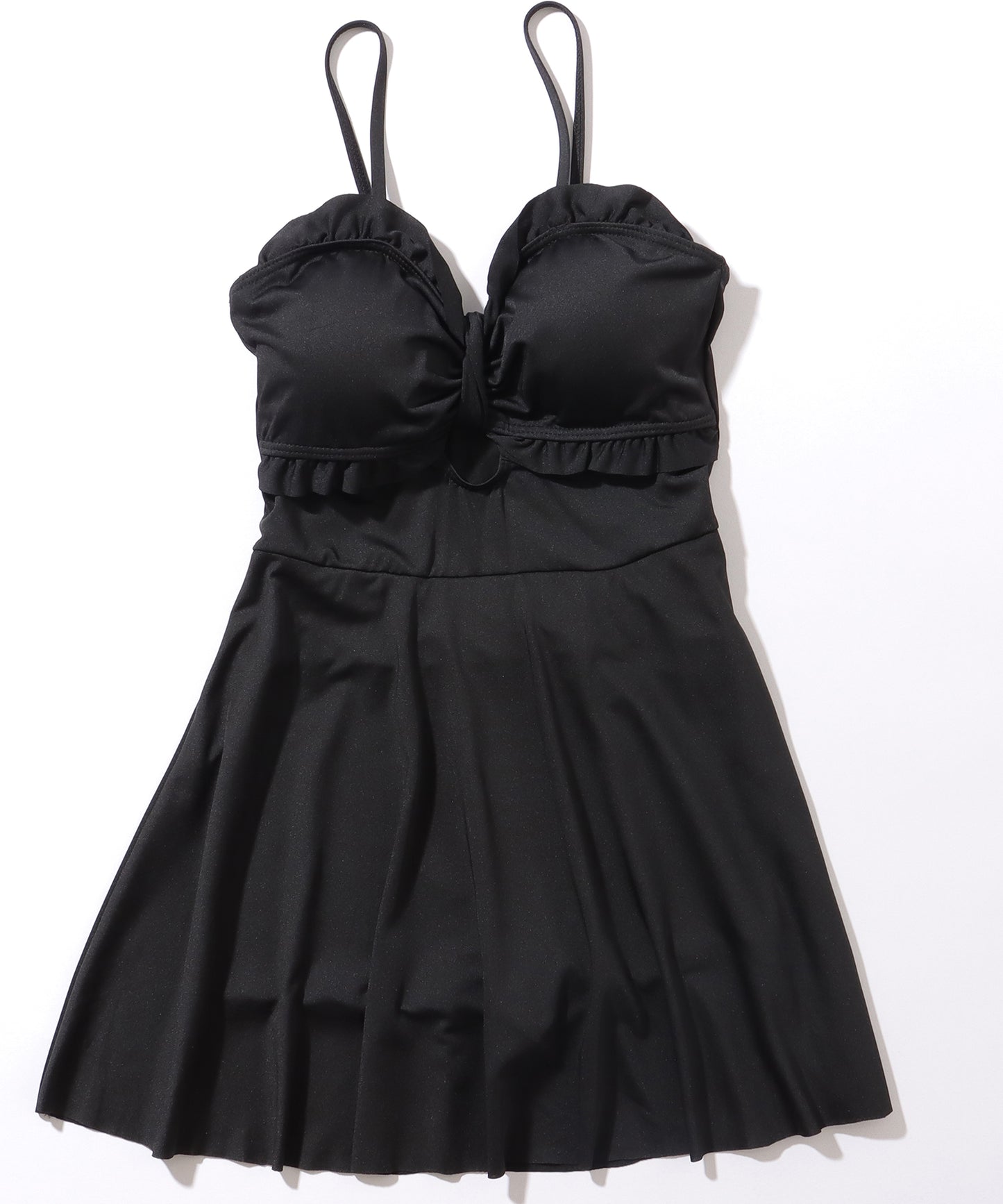 リボンがイメージできるキュートなデザインの胸元には、フリルやカットアウトデザインをプラスすることで、トレンド感たっぷりに仕上げました。