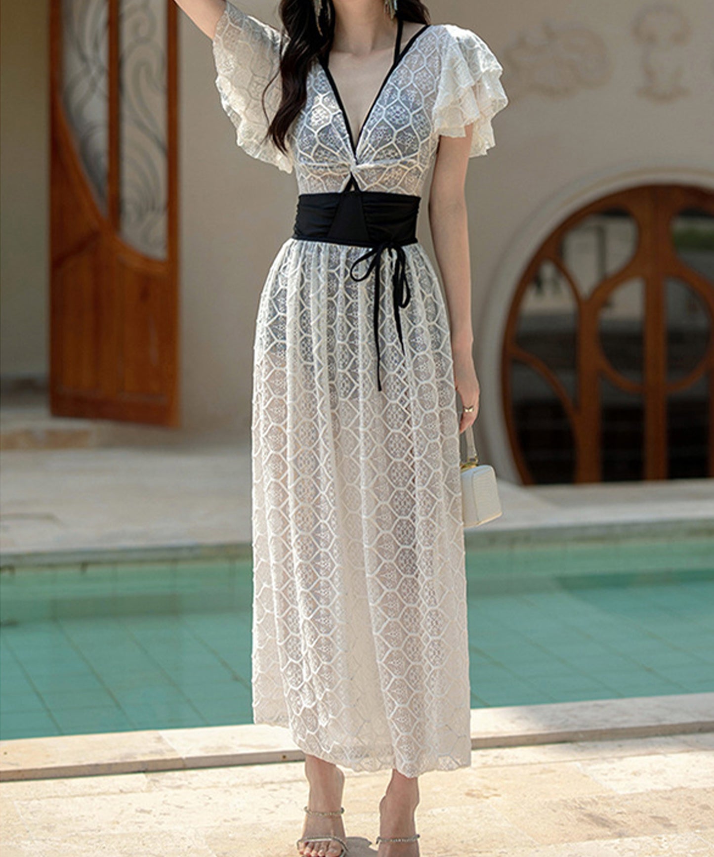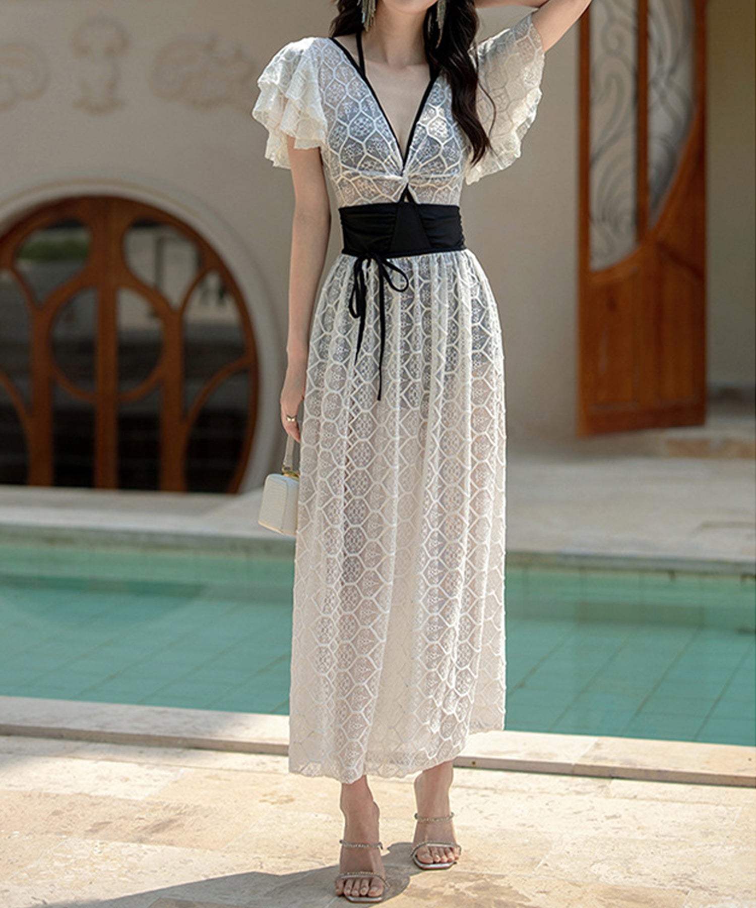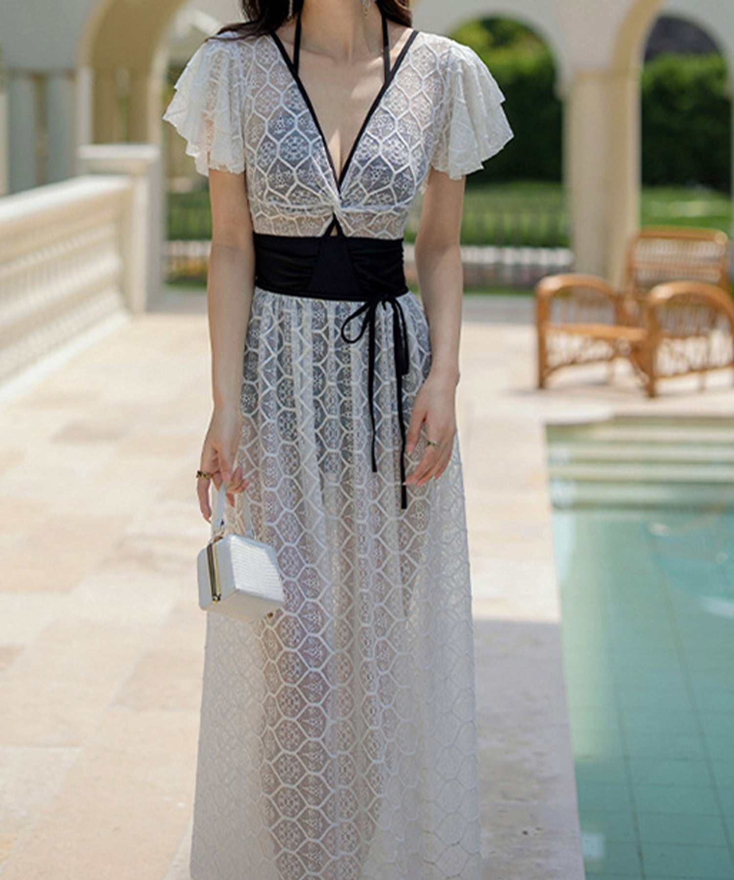 2way バックコンシャス レース 袖リボン レイヤード ドレス