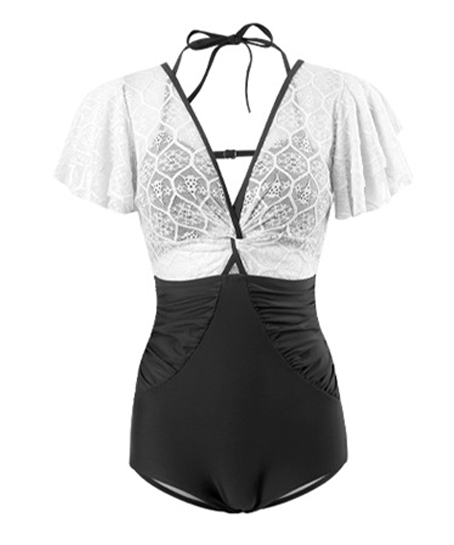 華やかなティアードフリルの袖が目を引く、スイムワンピース。