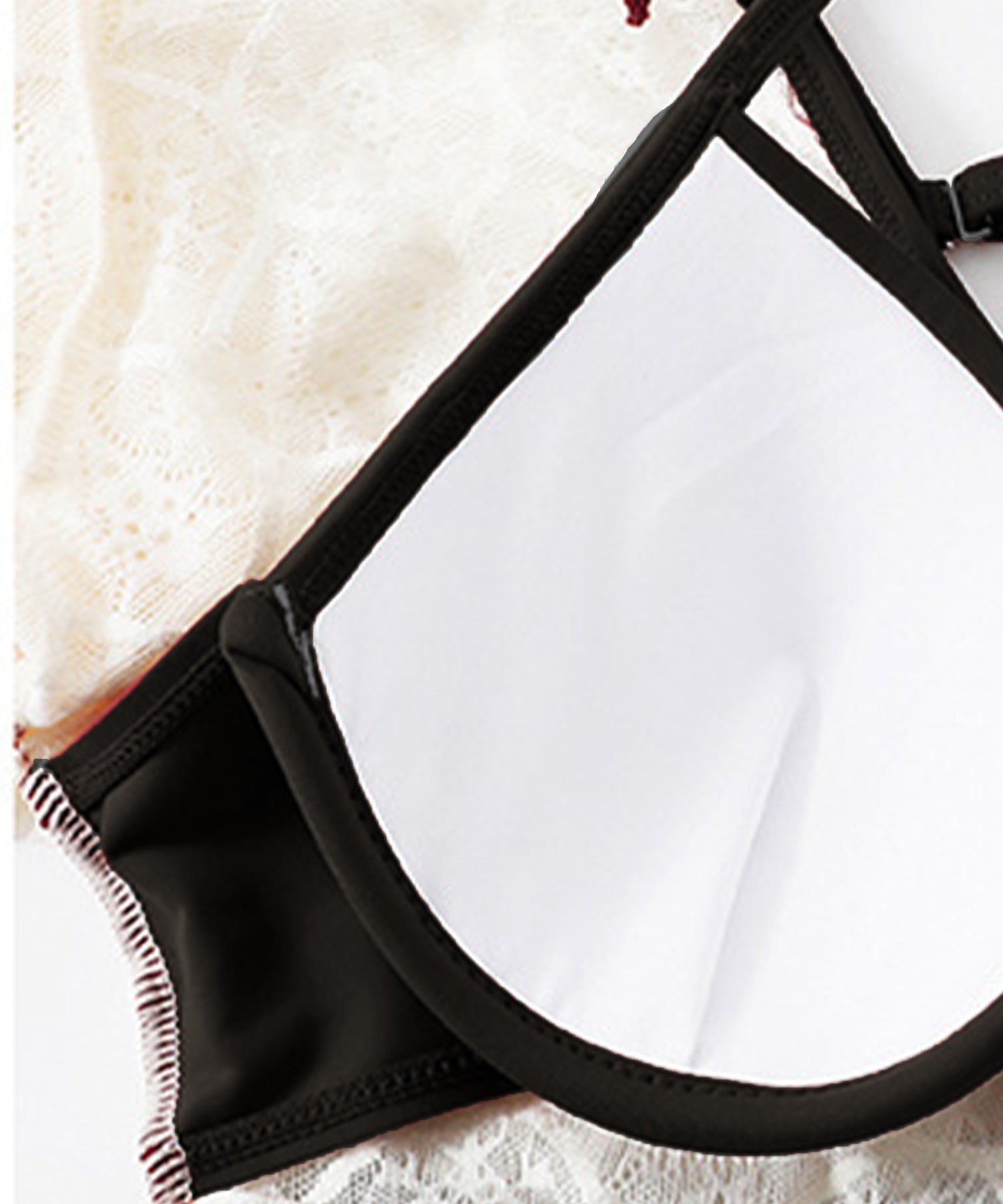 インにホルタービキニを身につけたような、フェイクレイヤードデザインがおしゃれなアイテムです。