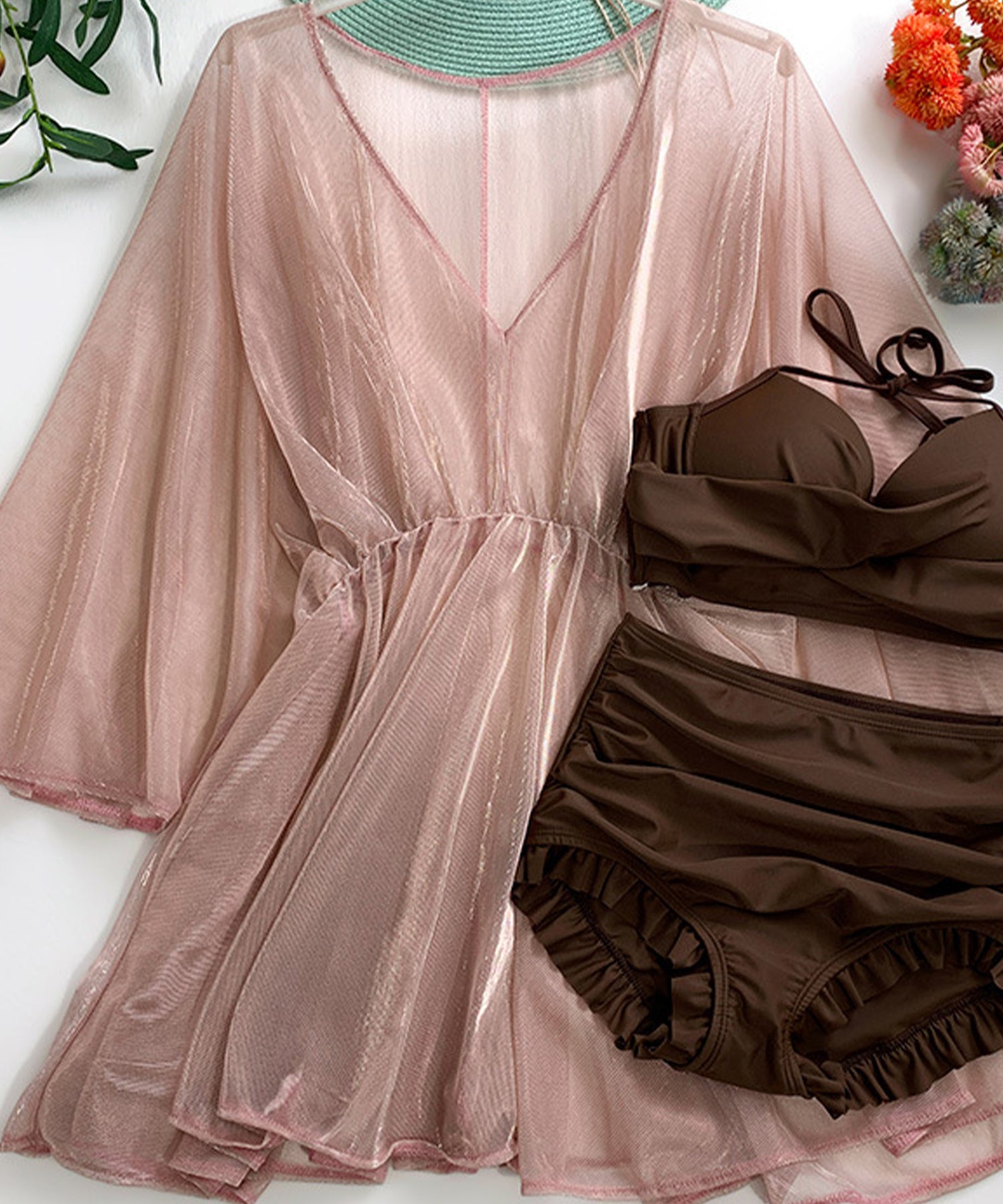 【3点セット】シアー チュニック付 ハイウエスト ツイスト ビキニ