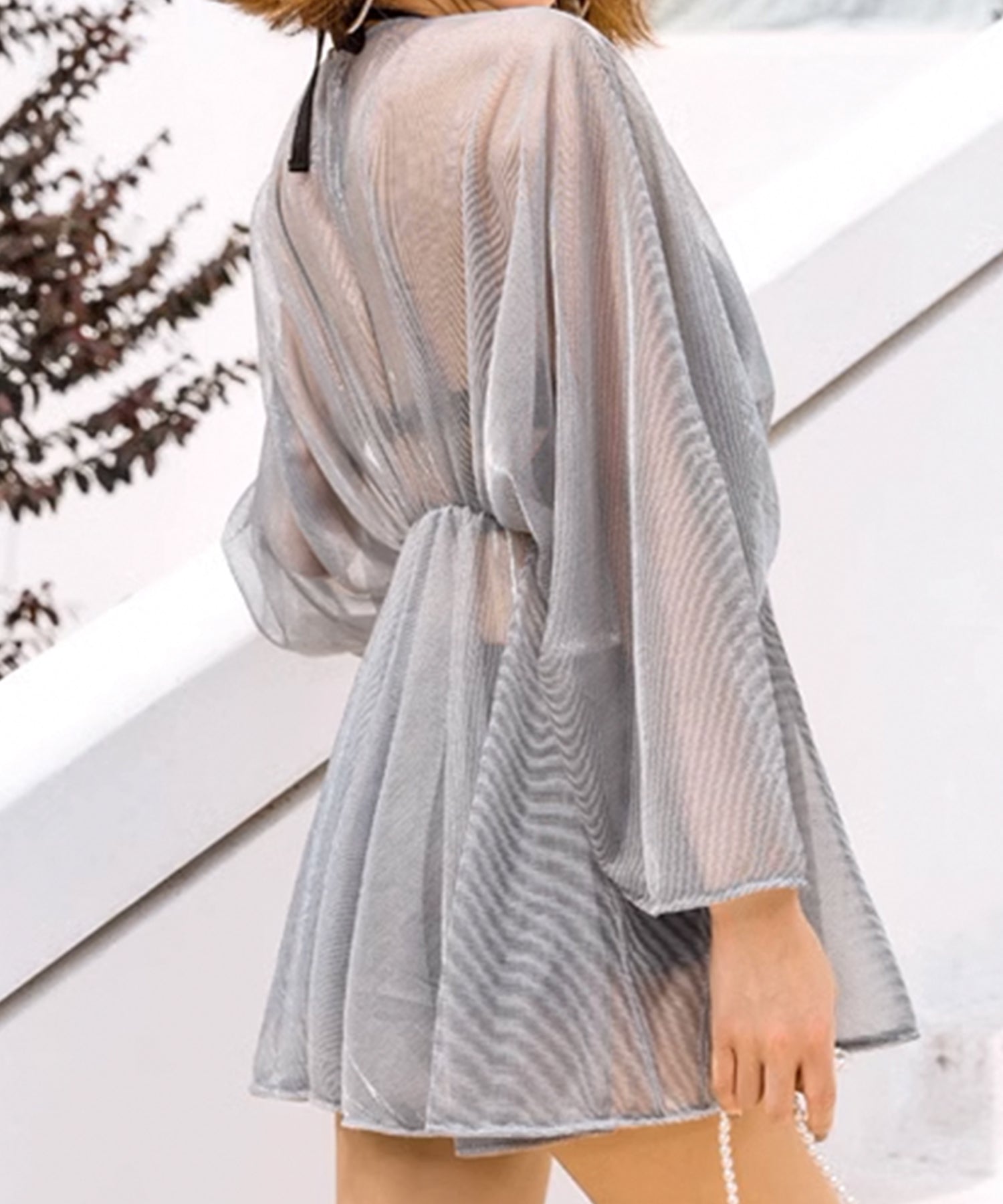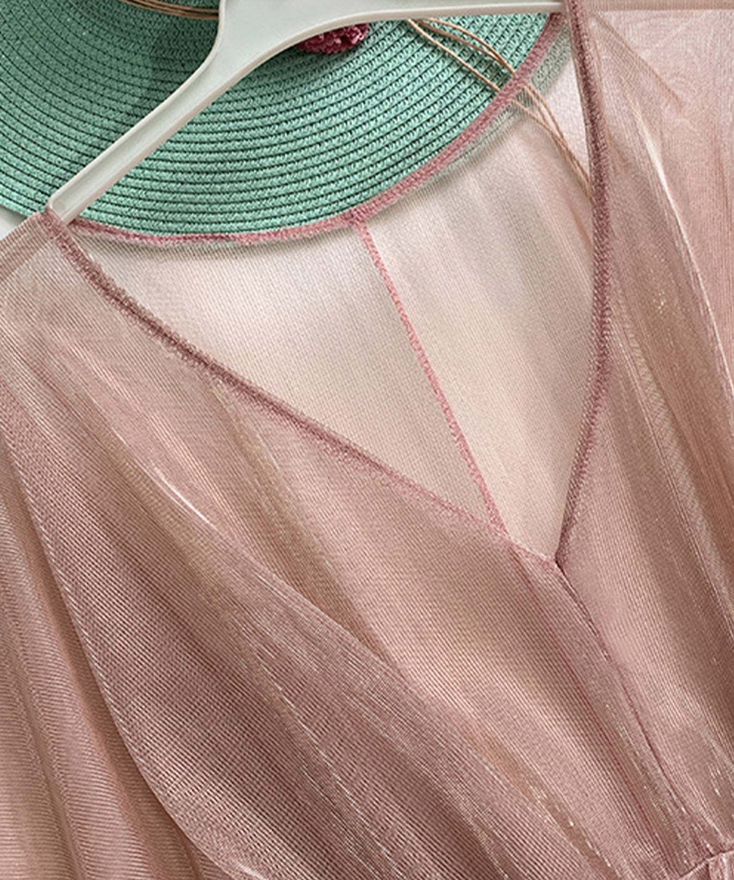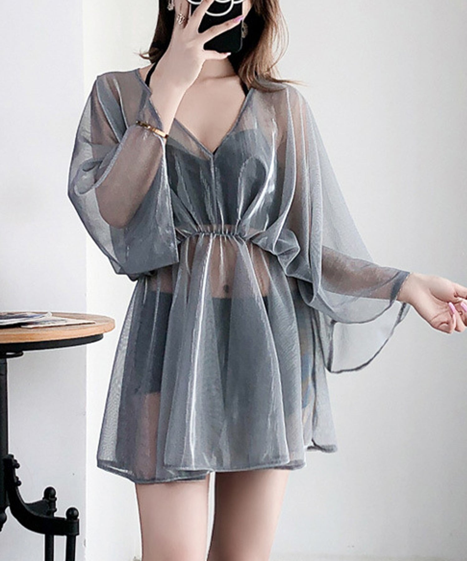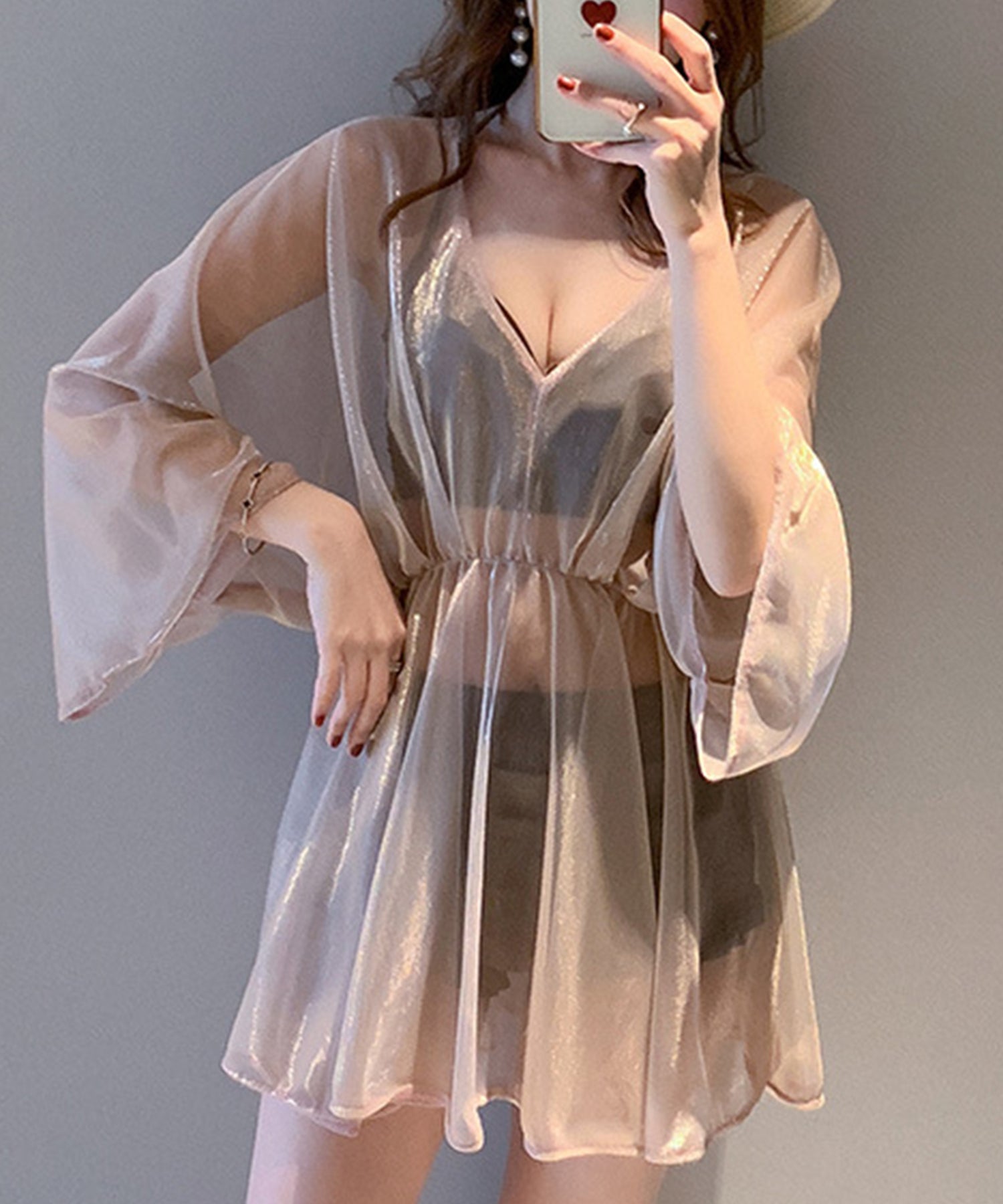 ふんわりと素肌の透ける、シアーチュニック付きの3点セットでご用意しました。