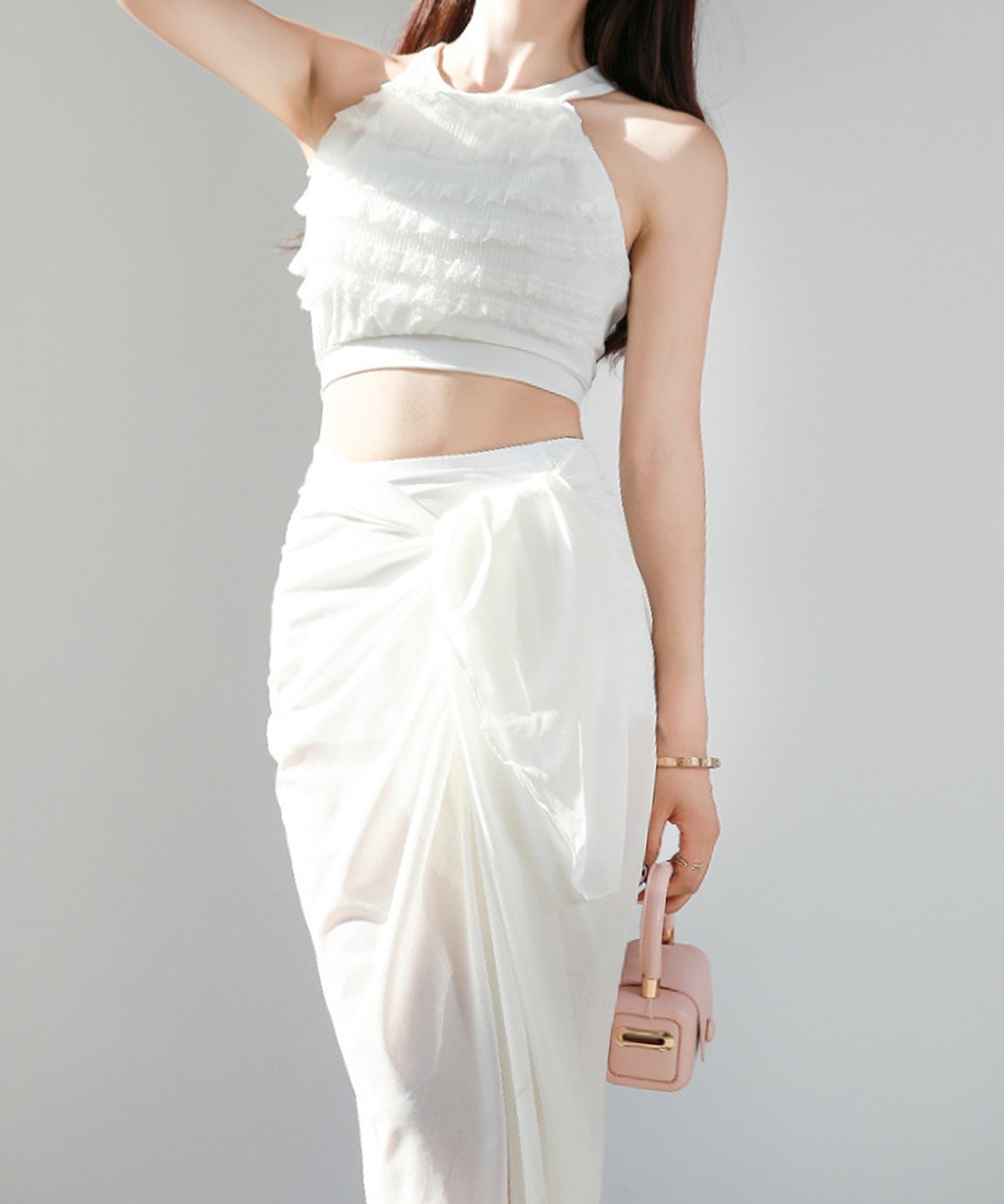 セットになっているパレオは、シアー素材にすることで重さを感じさせないのもポイントです。