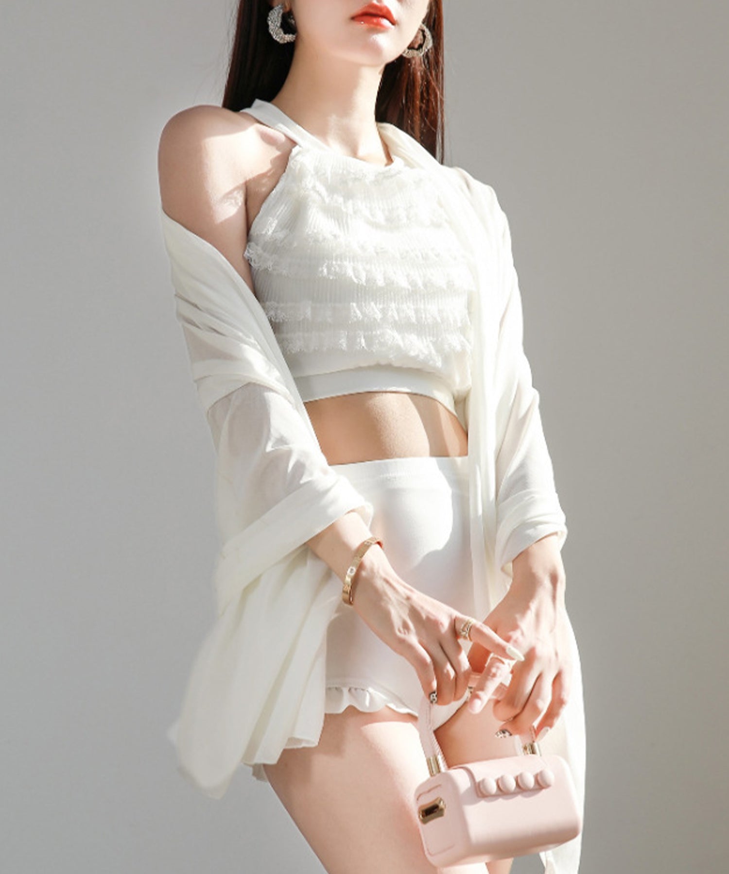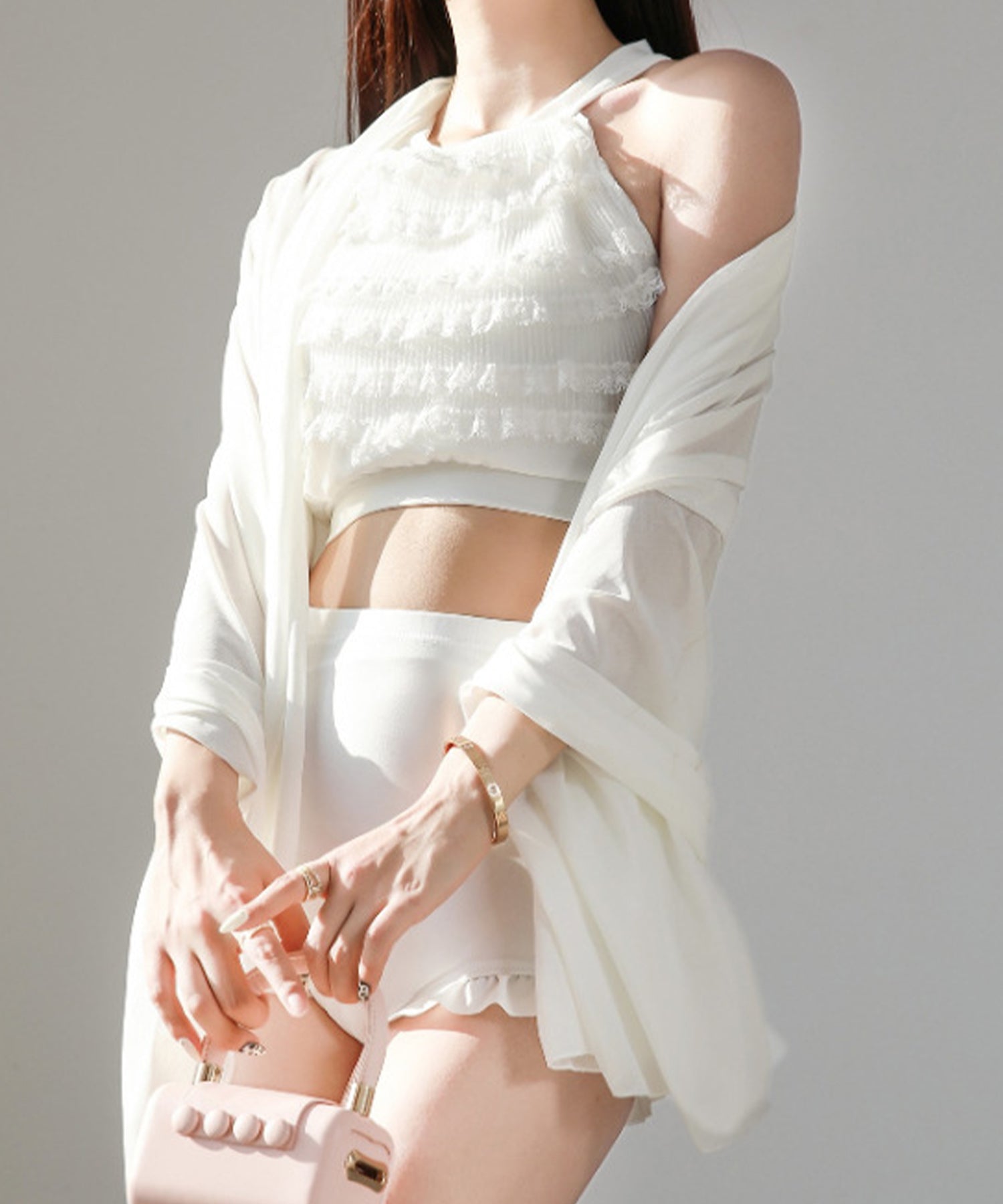 ふんだんにあしらったフリルが目を引く、キュートなビキニ。