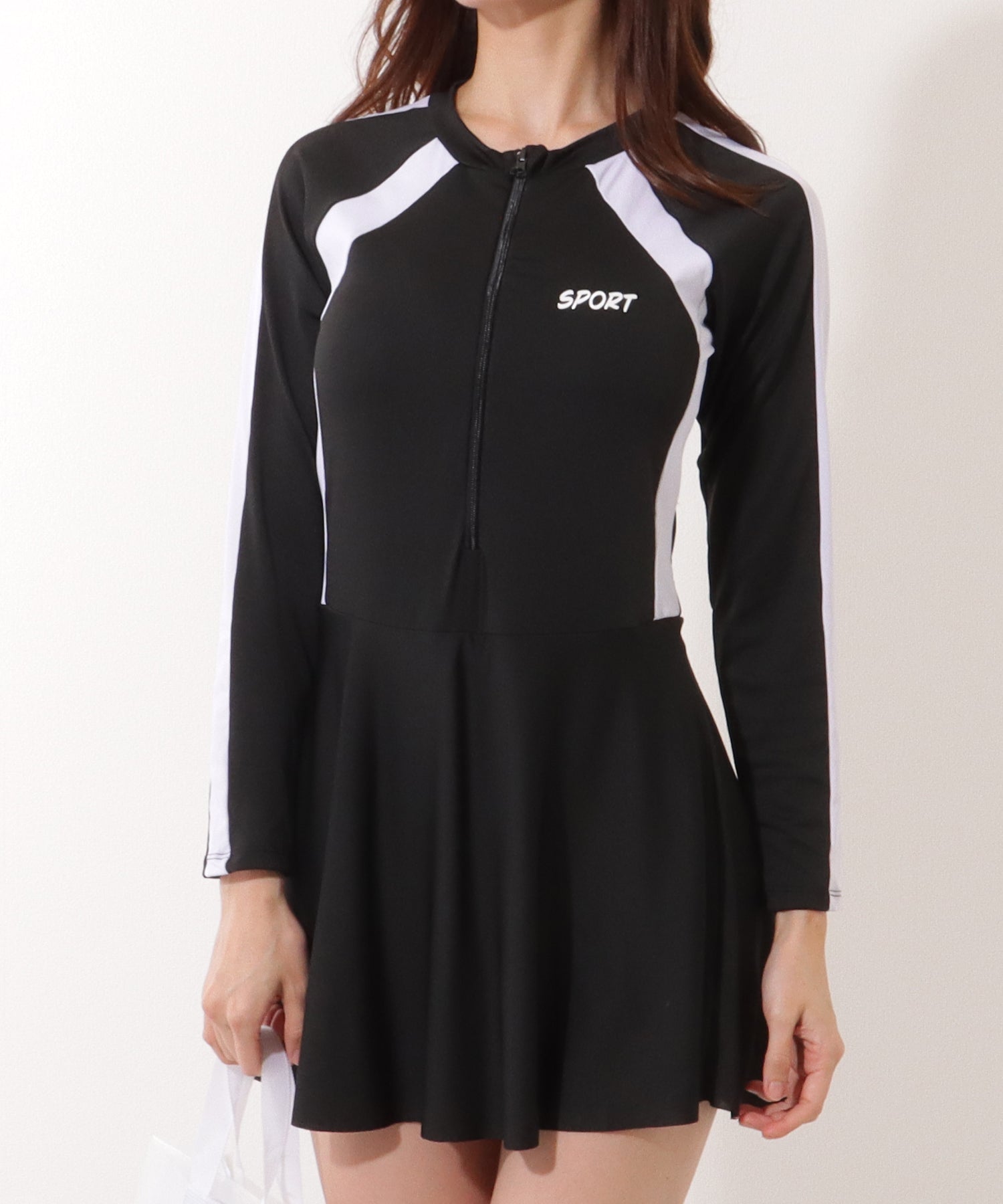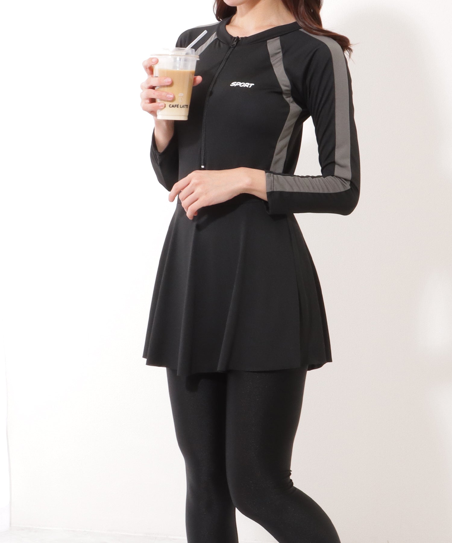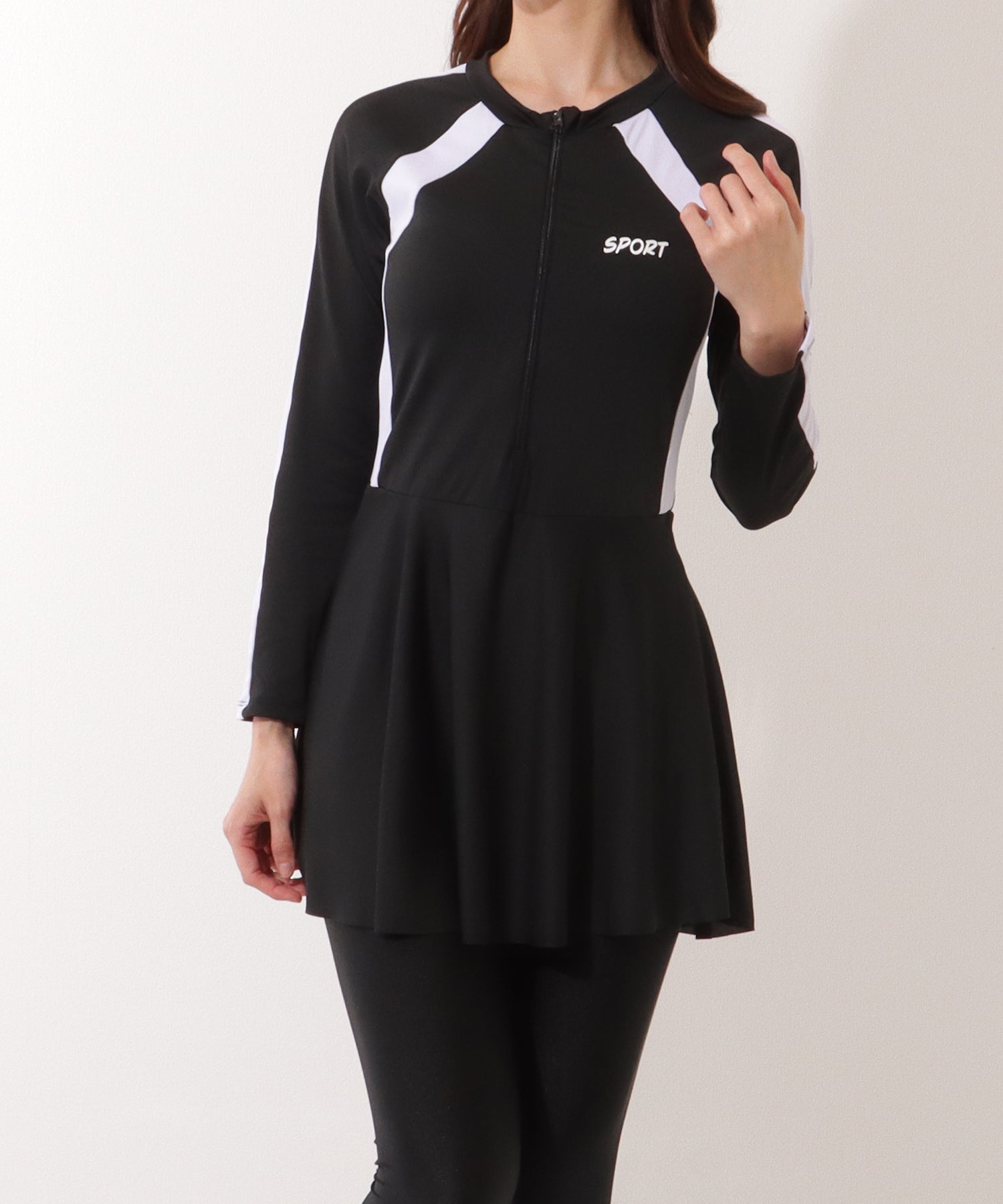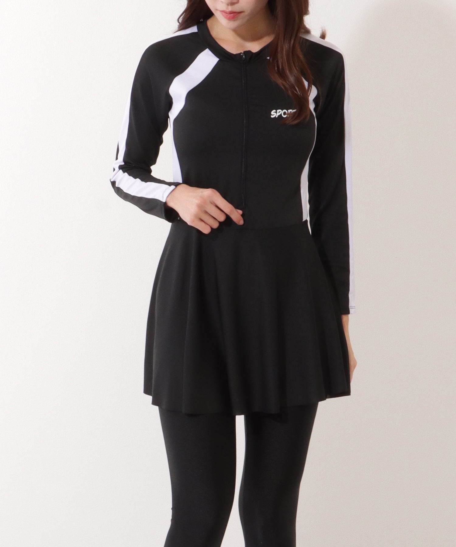 【2点セット】フロント ジップ 長袖 スカート スイムウエア