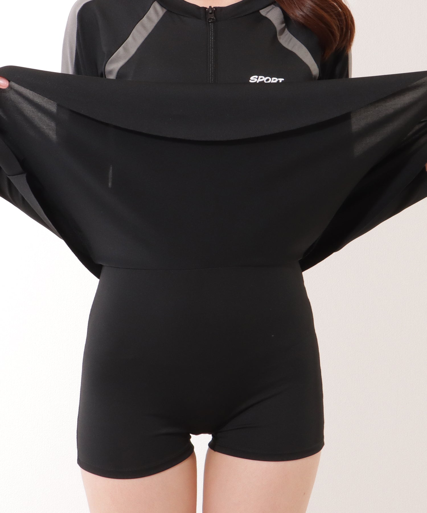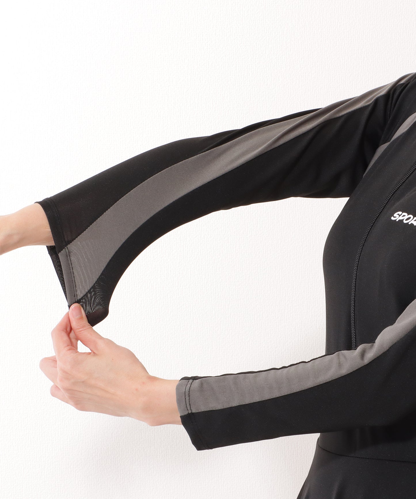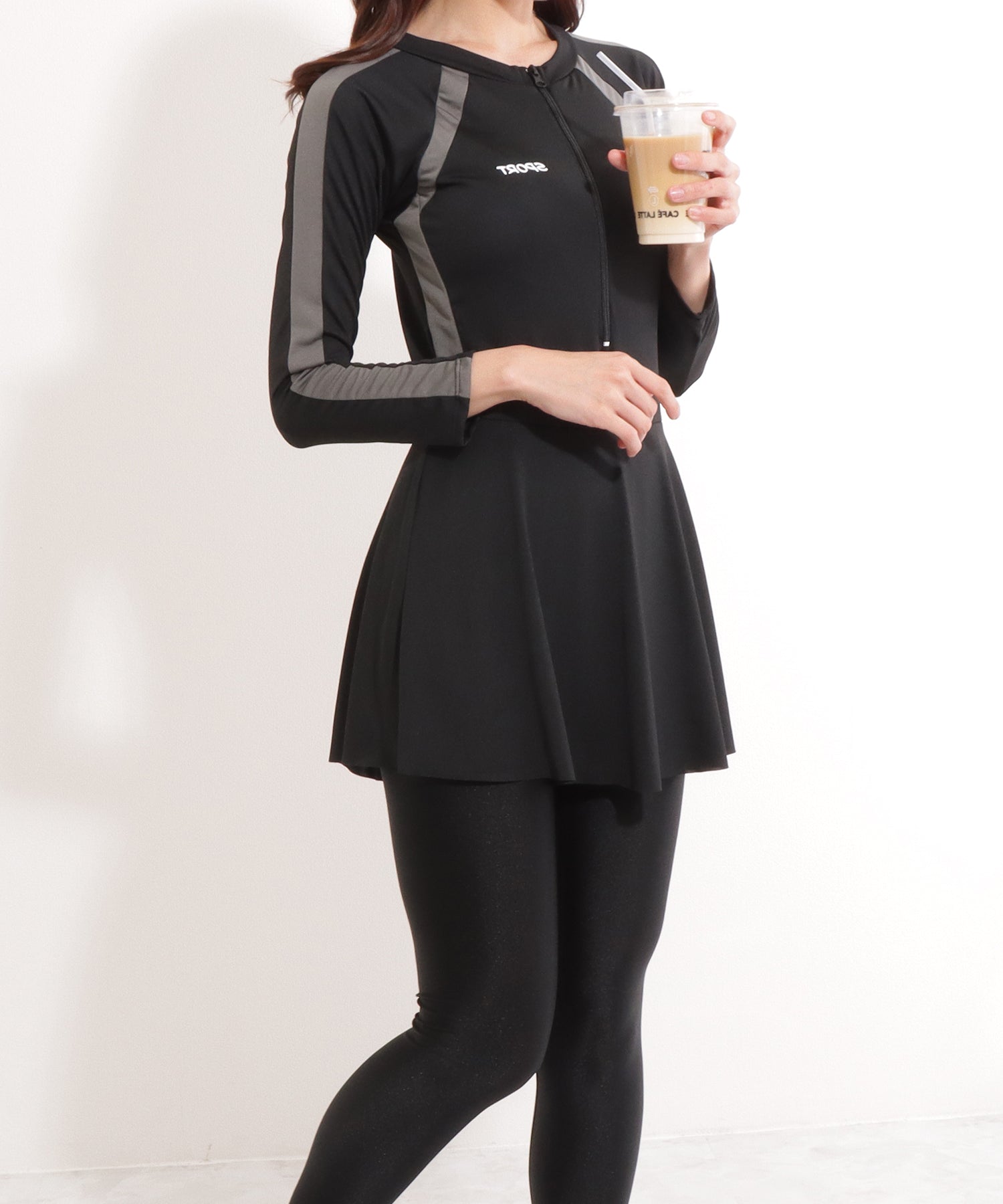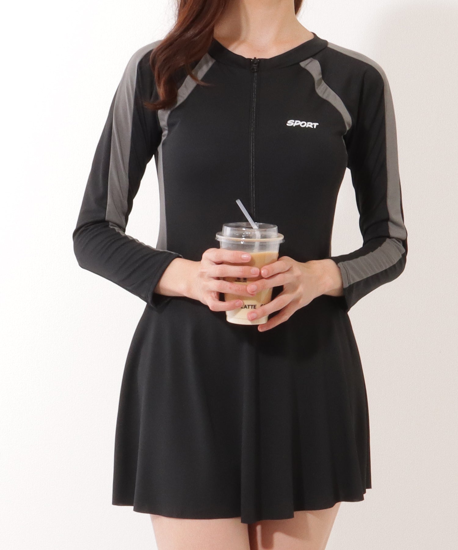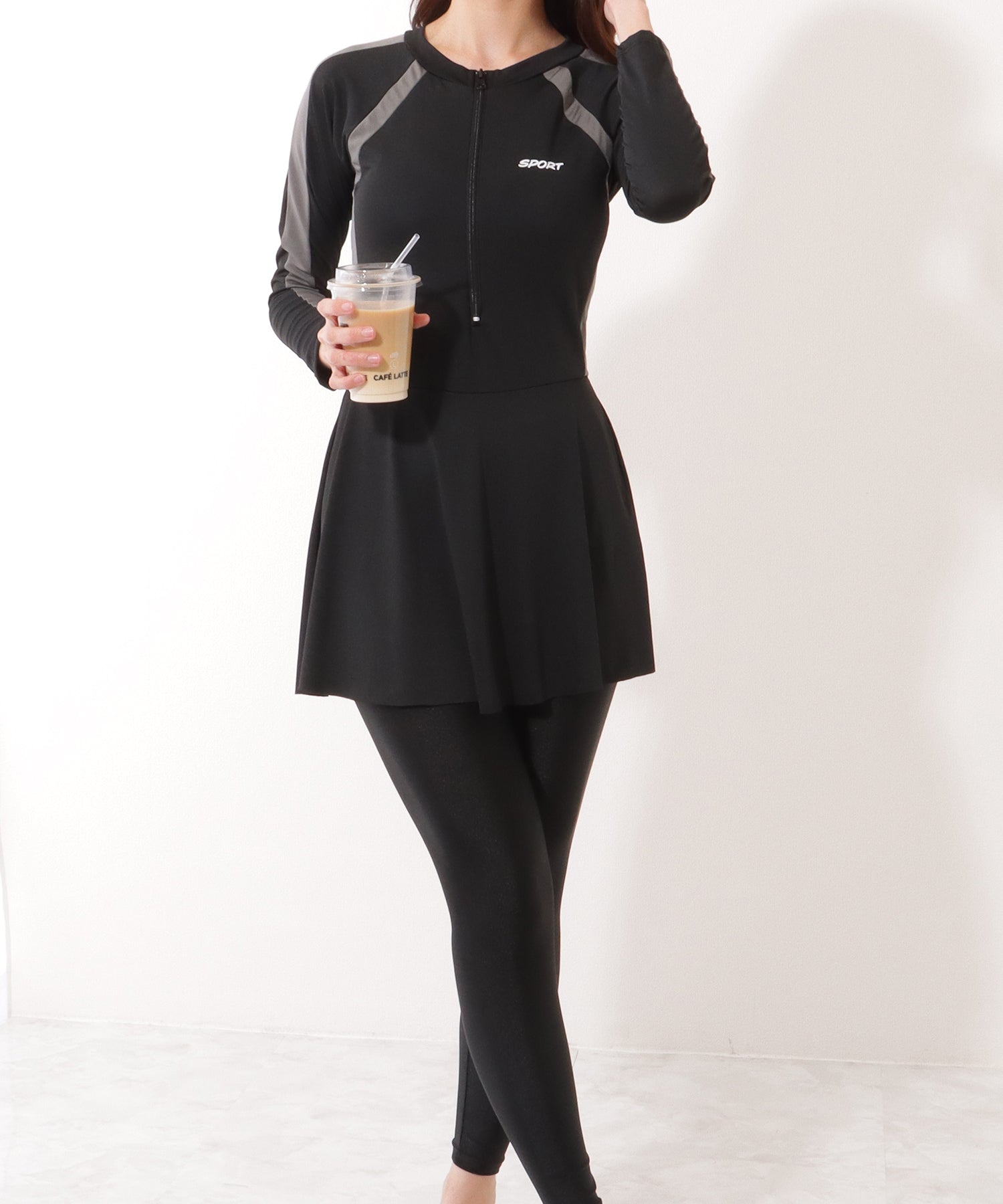 【2点セット】フロント ジップ 長袖 スカート スイムウエア