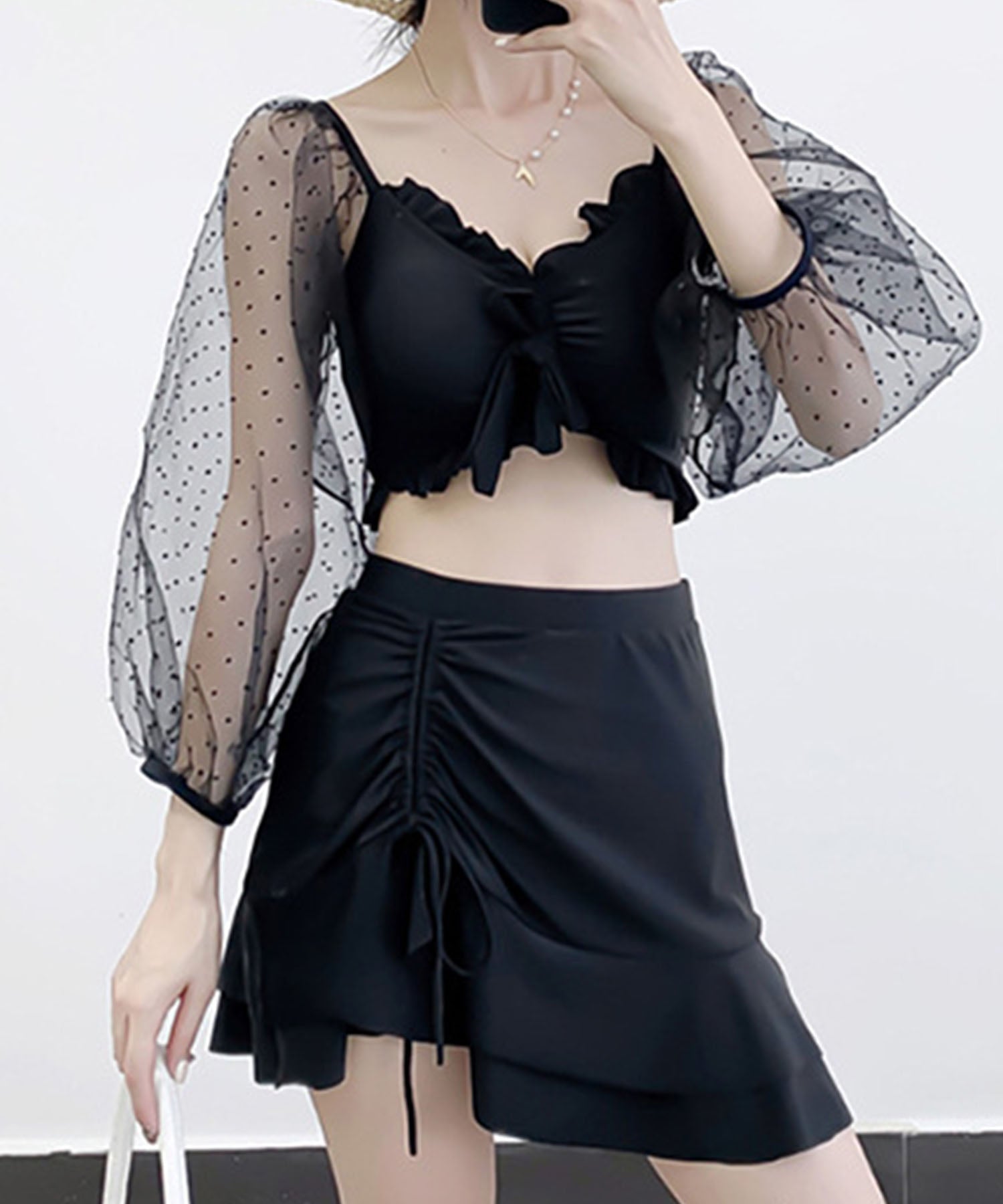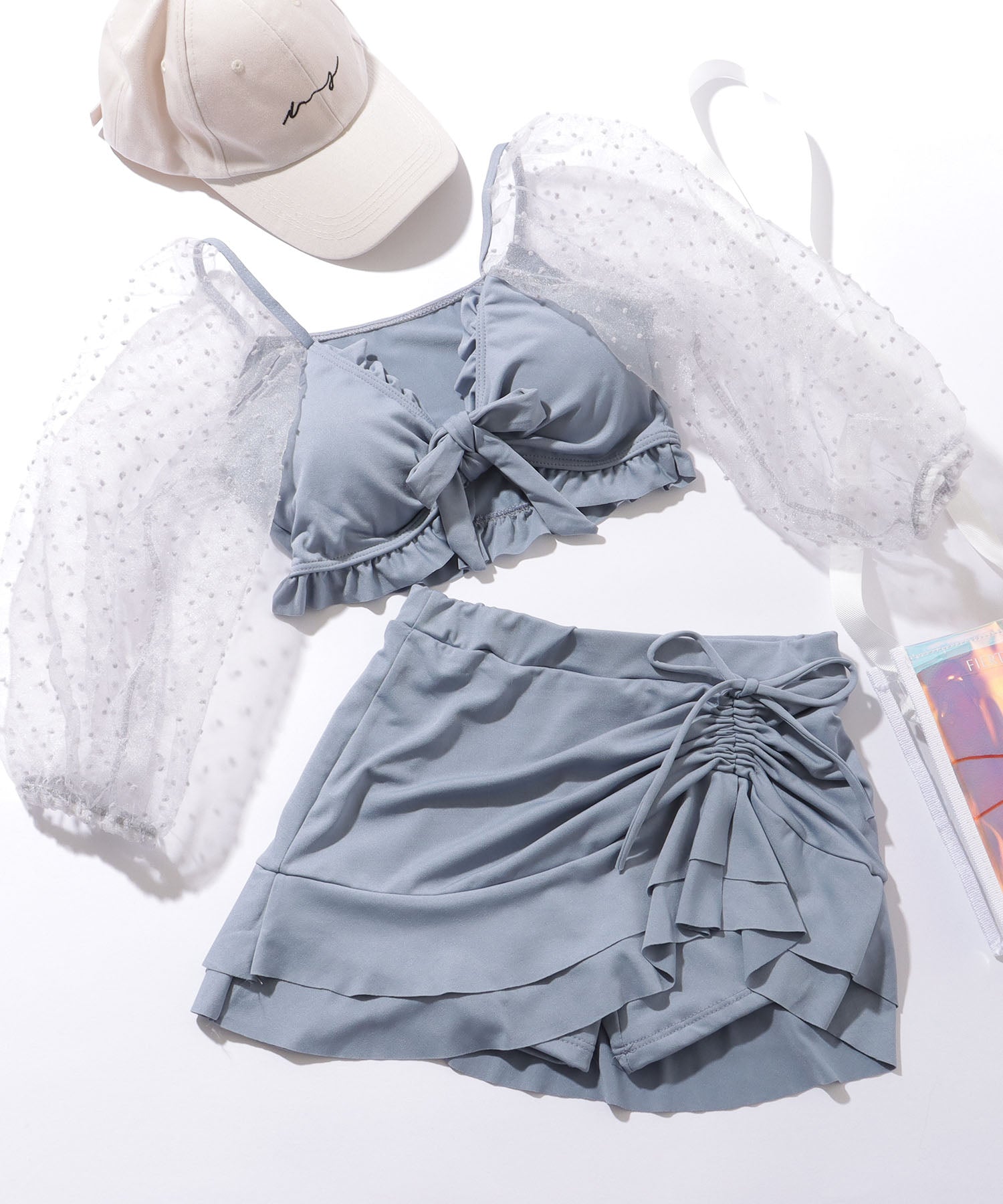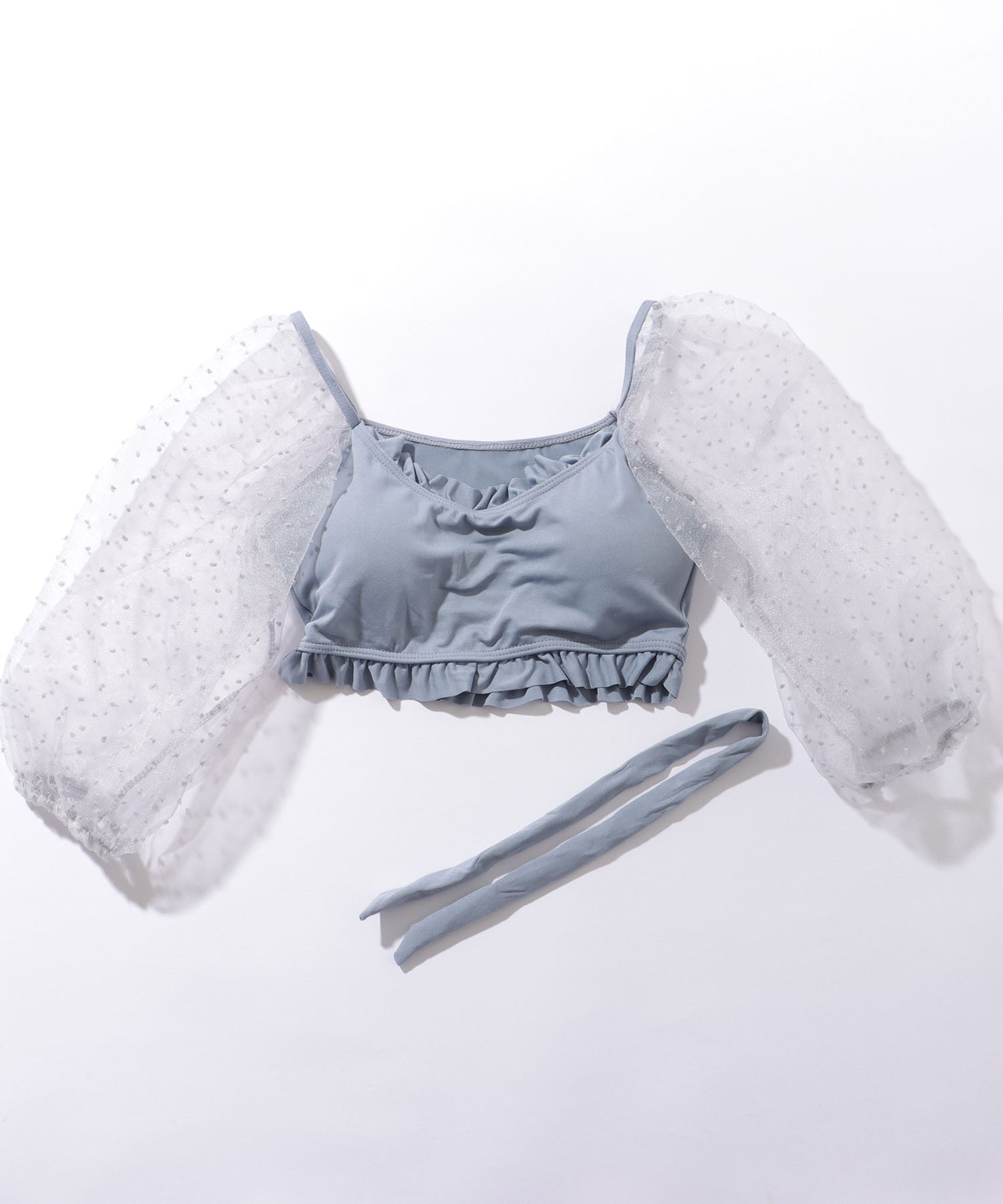 【2点セット】チュール ドット バルーン袖 フリル ビキニ