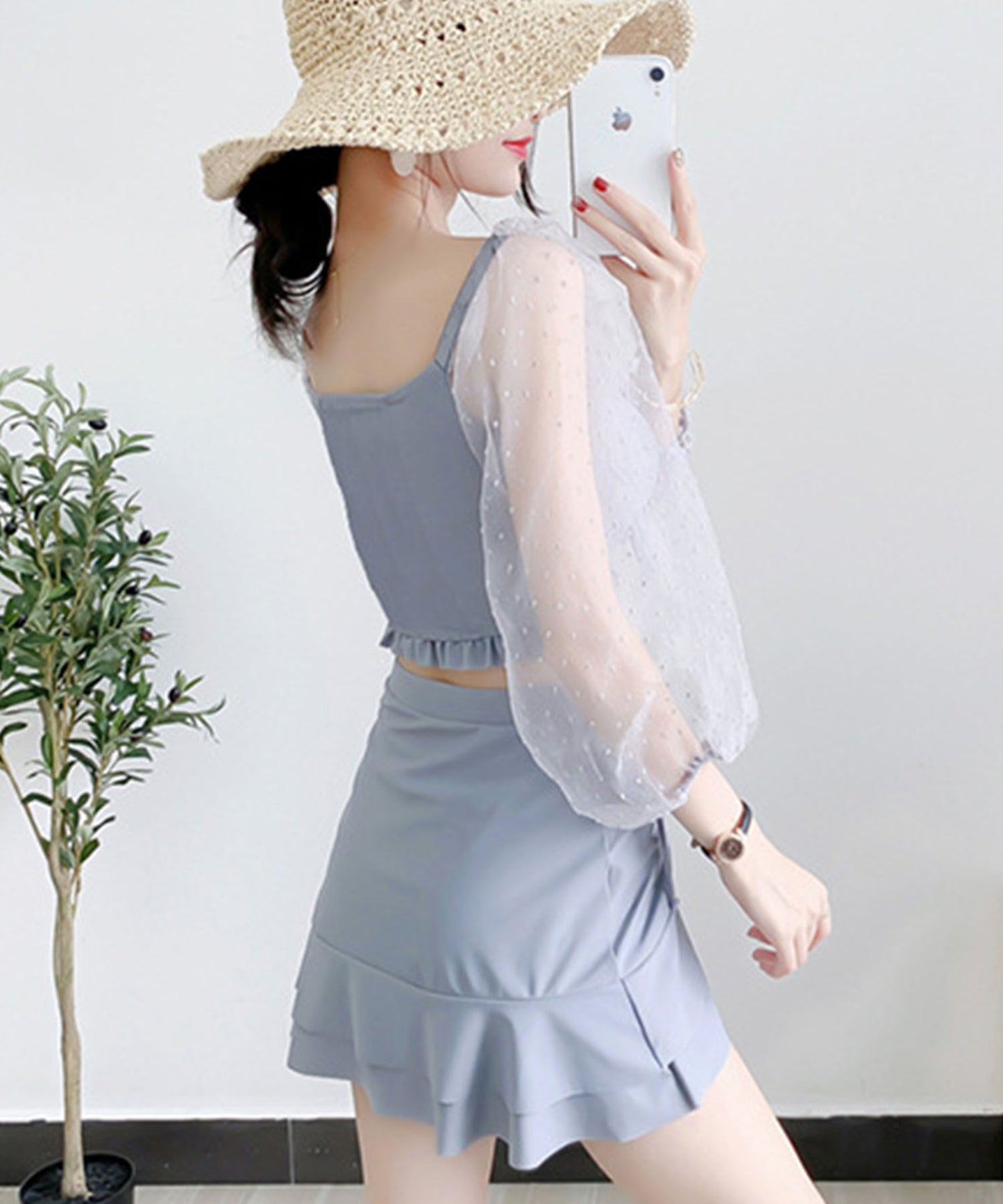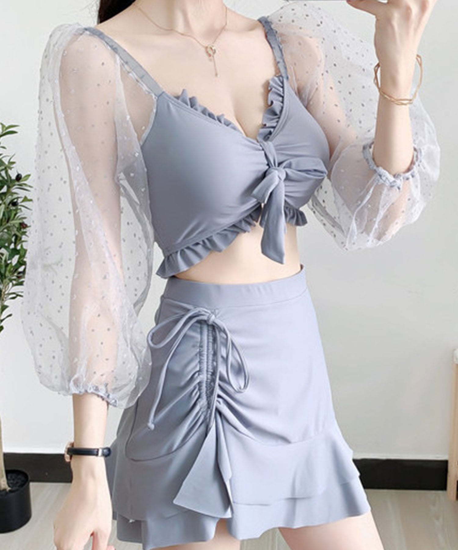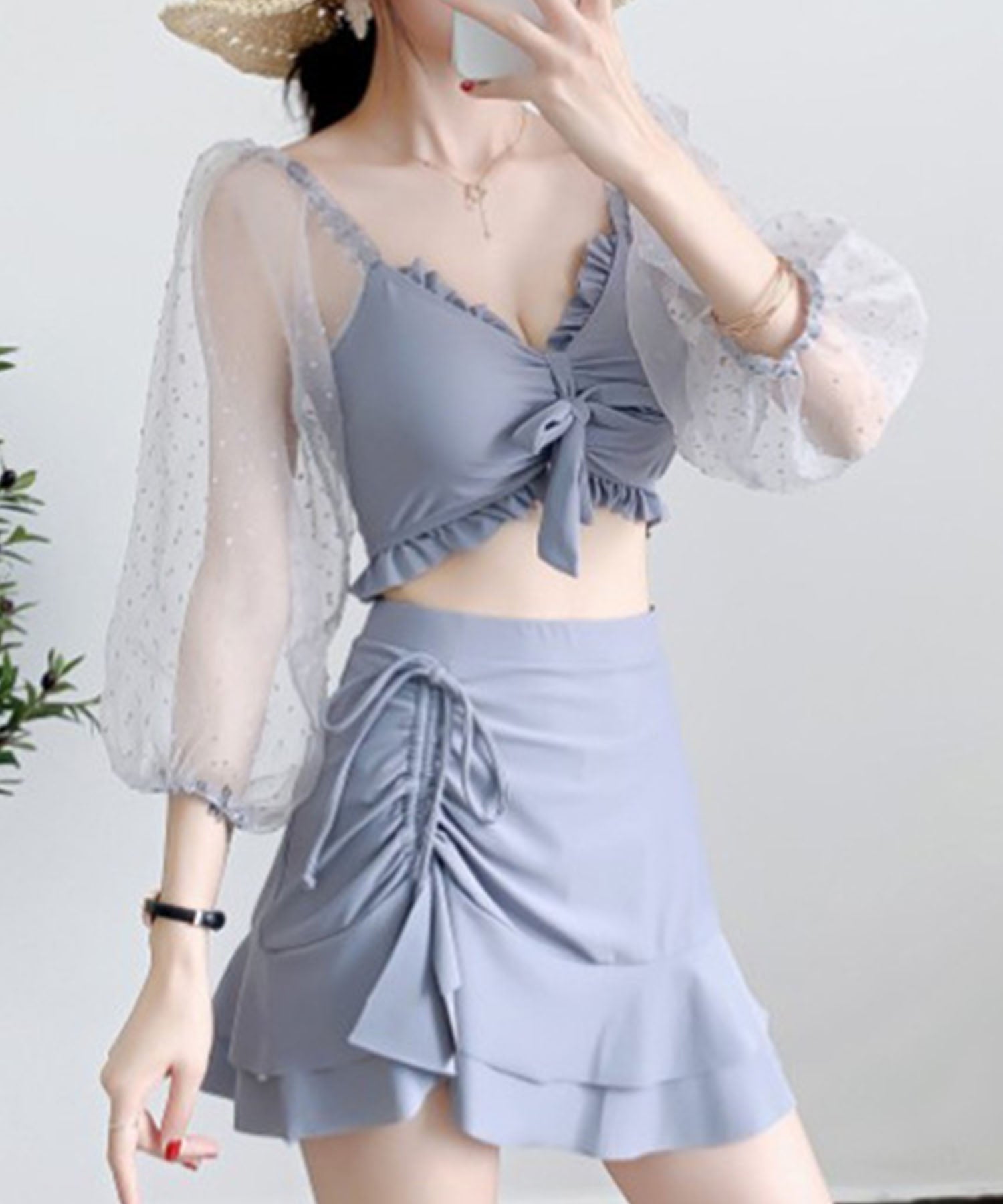 【2点セット】チュール ドット バルーン袖 フリル ビキニ