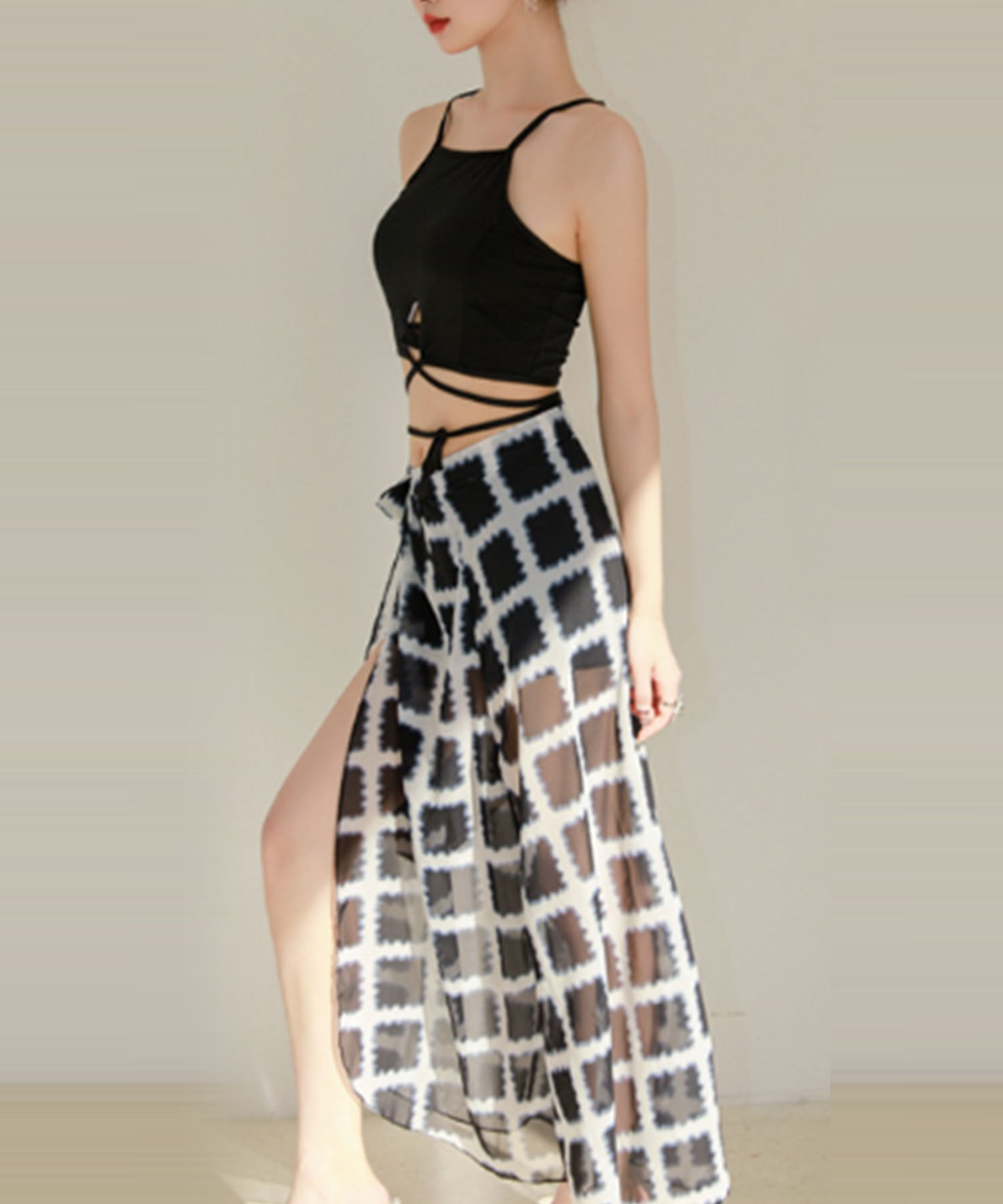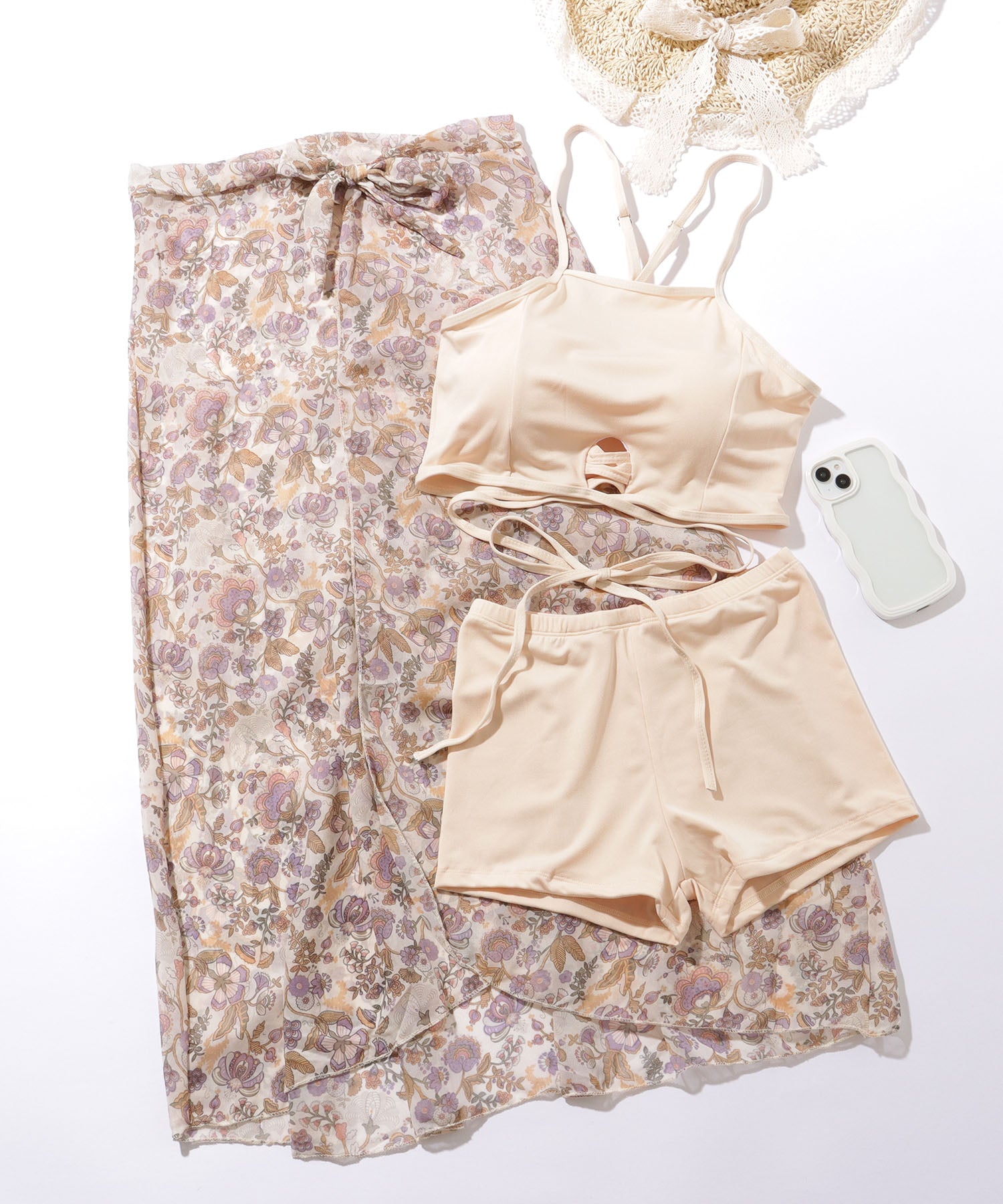 【3点セット】 パレオ付き ソリッドカラー キャミソール ビキニ