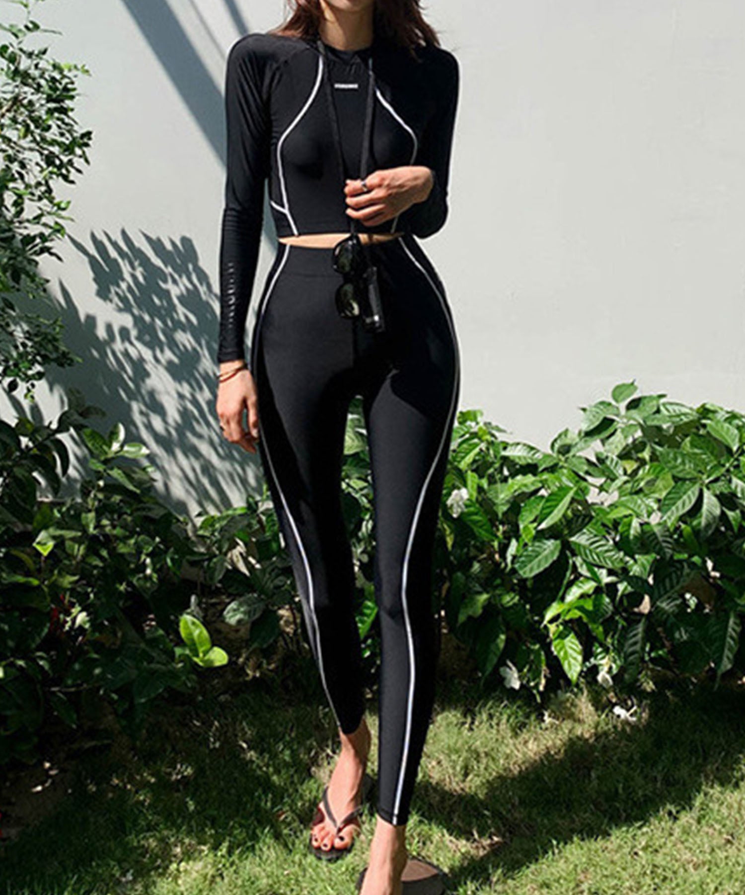 【3点セット】 配色ライン スリム フィット 長袖 ラッシュガード
