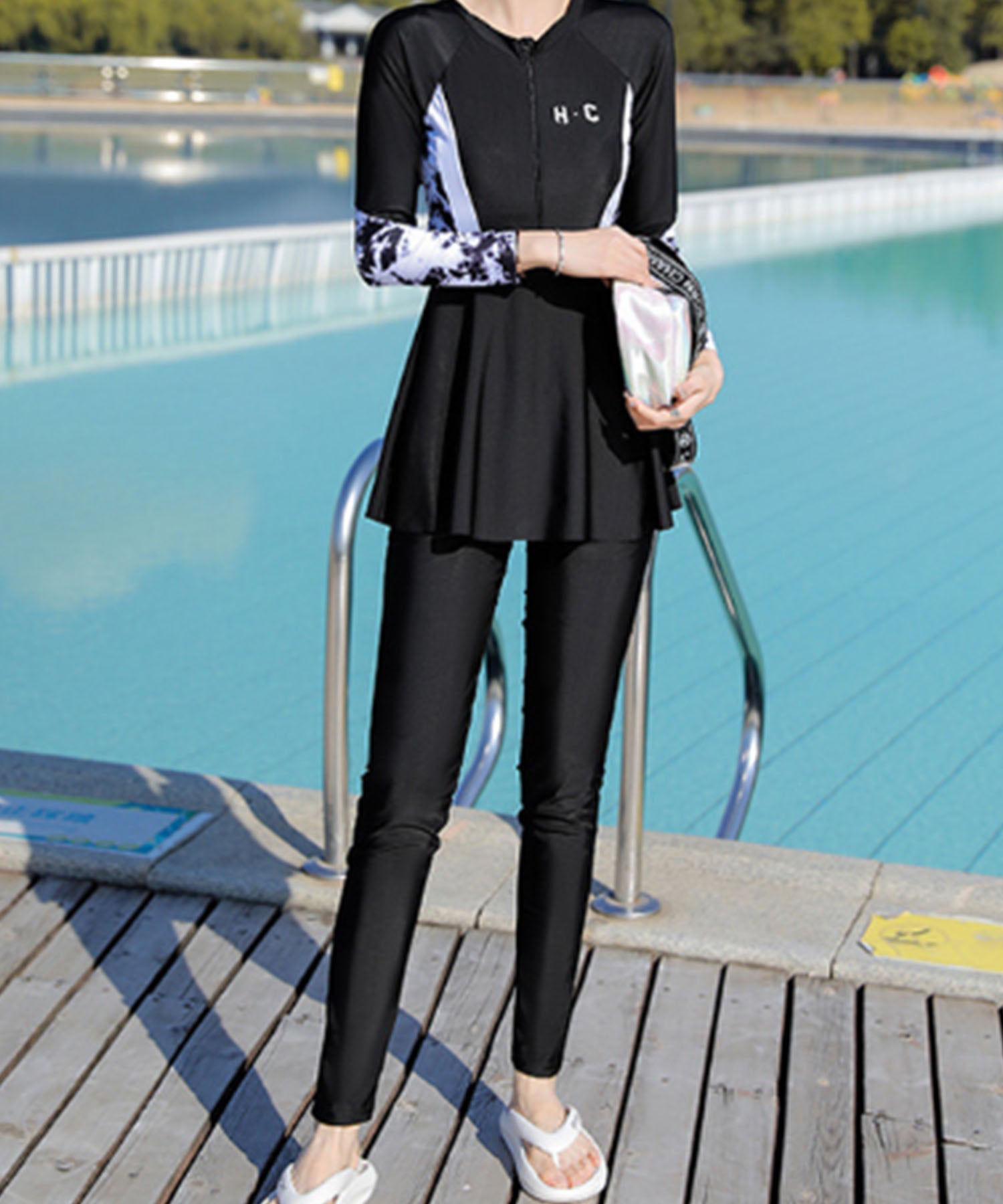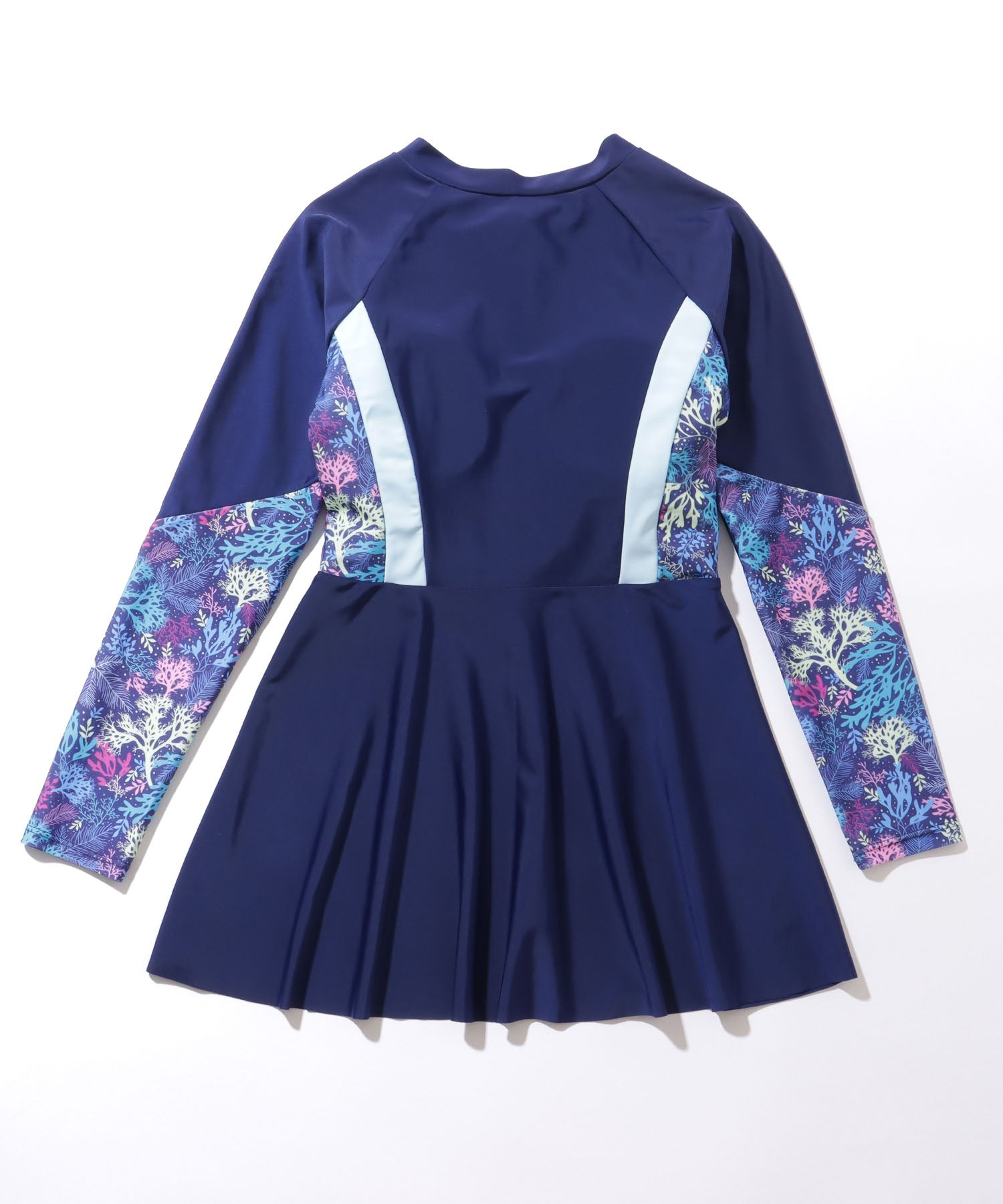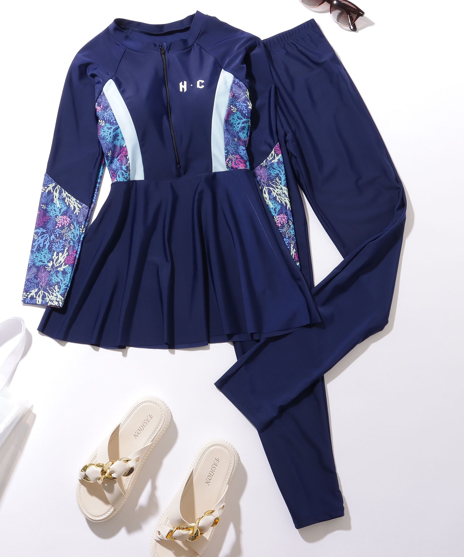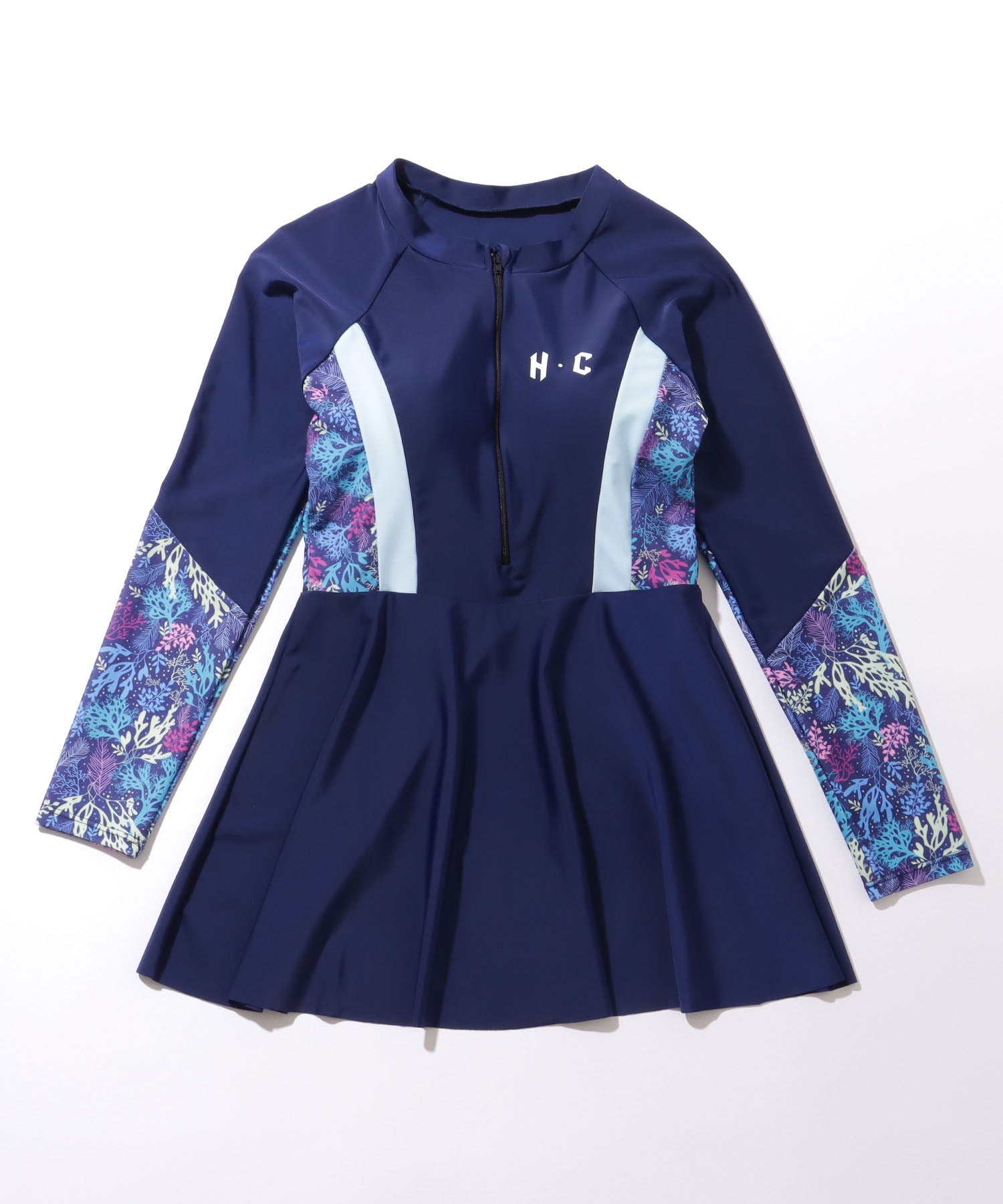 【2点セット】ハーフジップ ハイウエスト ワンピ風 長袖 ラッシュガード