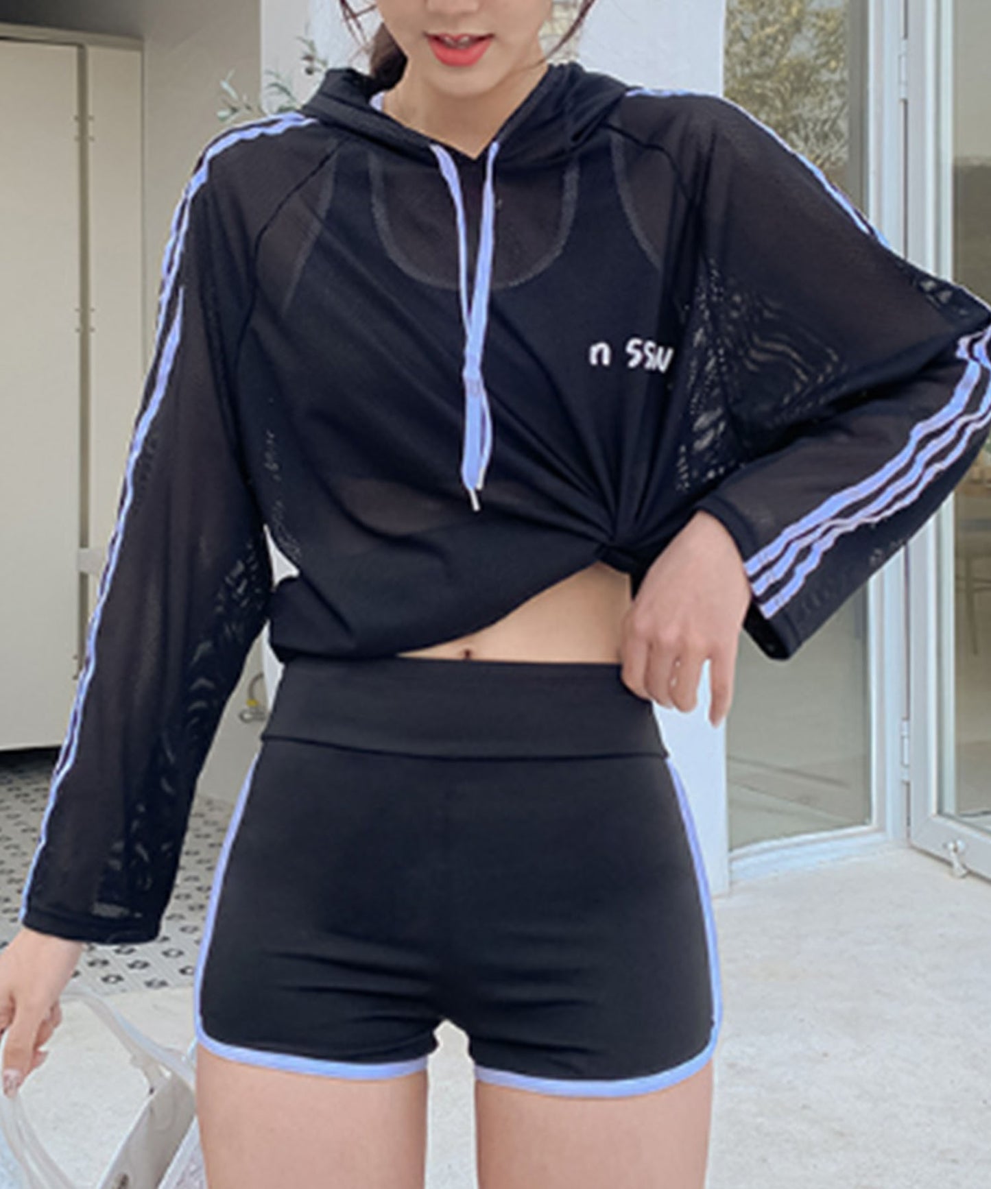 【3点セット】 メッシュ フード パーカー付き スイムウエア