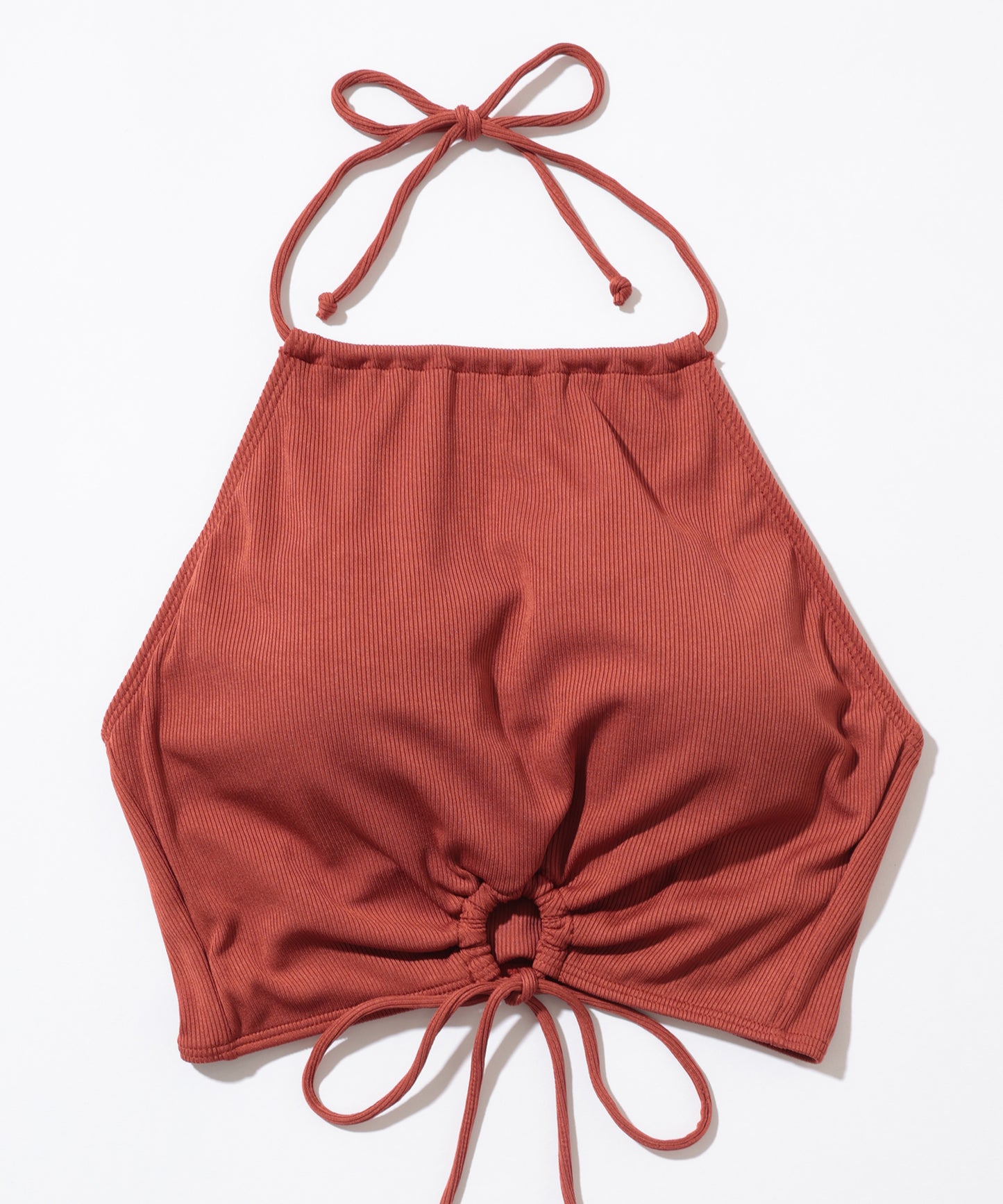 【2点セット】ソリッドカラー リブ ホルター タンキニ