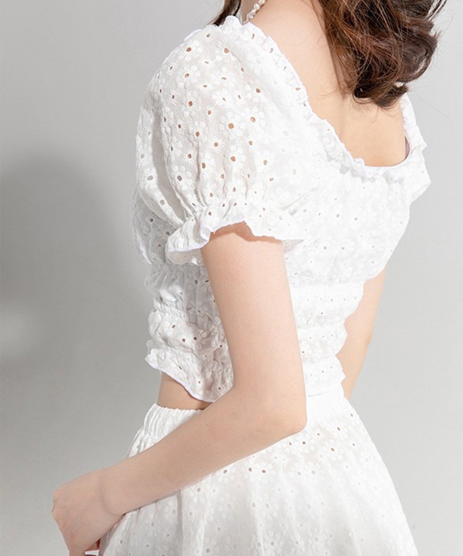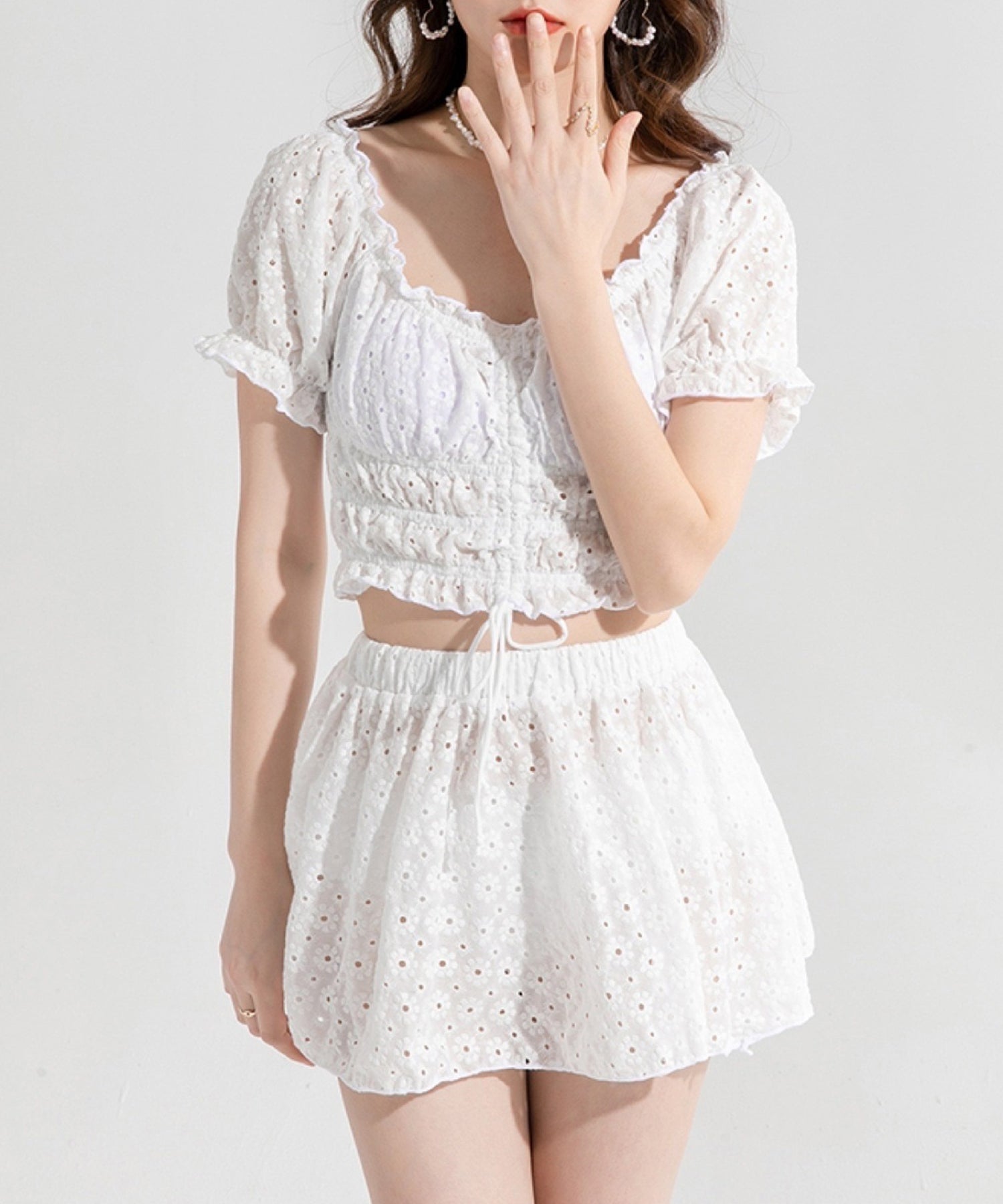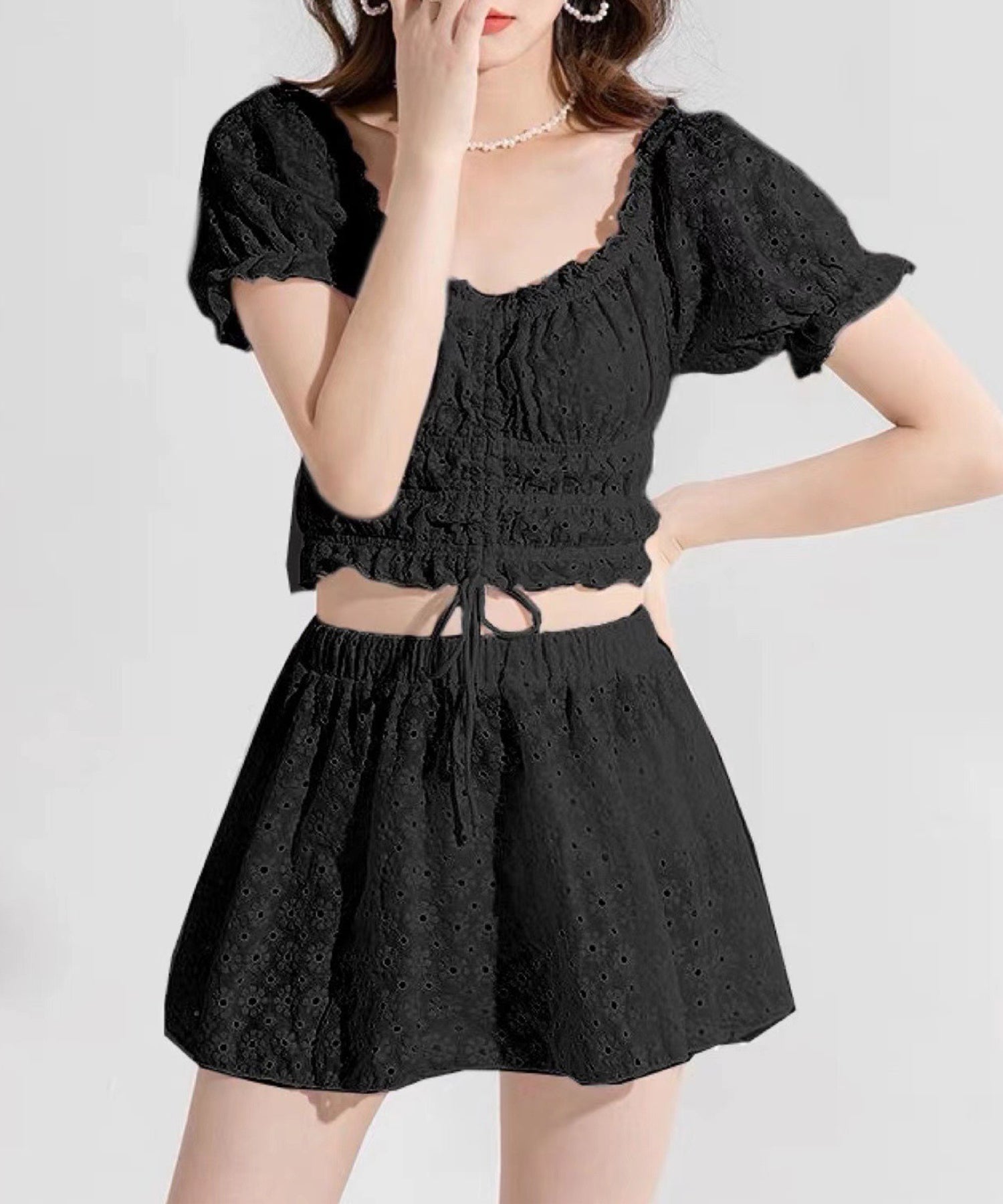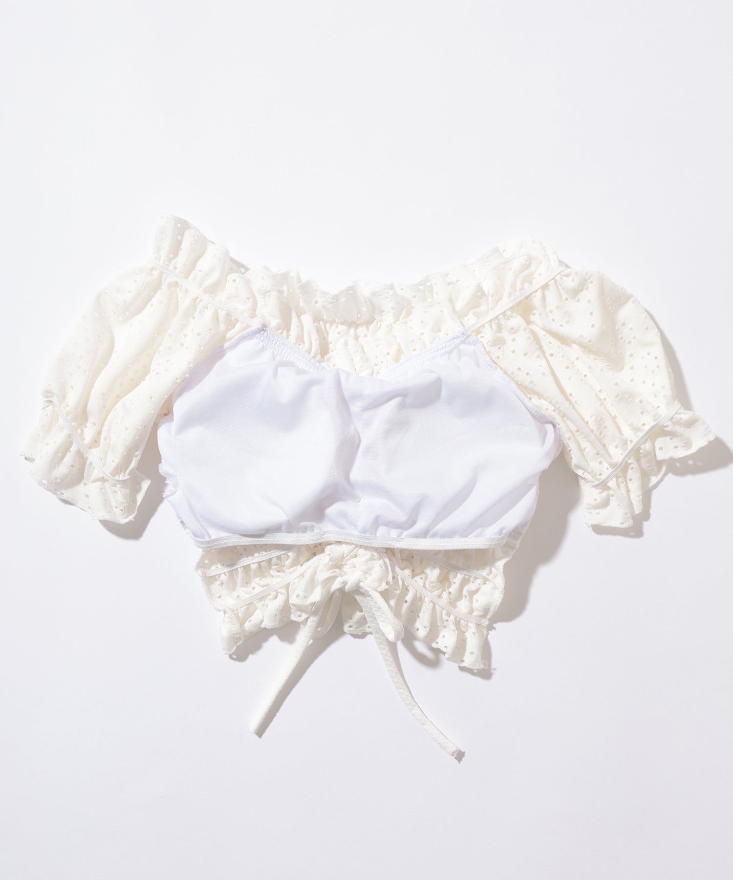 【2点セット】2WAY カットレース パフスリーブ オフショル タンキニ