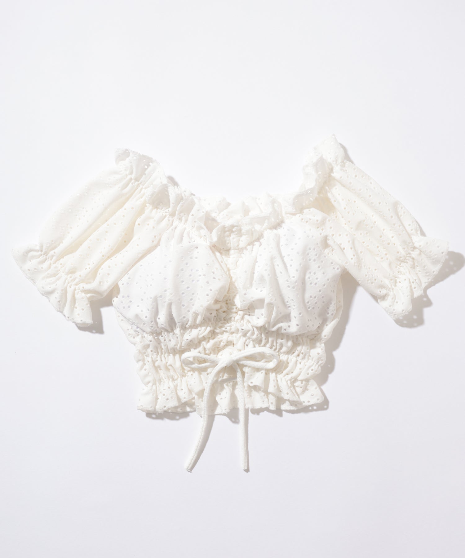 肩まわりのボリュームをカバーしてくれるパフスリーブにたっぷりのギャザーで、ガーリーなデザインに仕上げました。