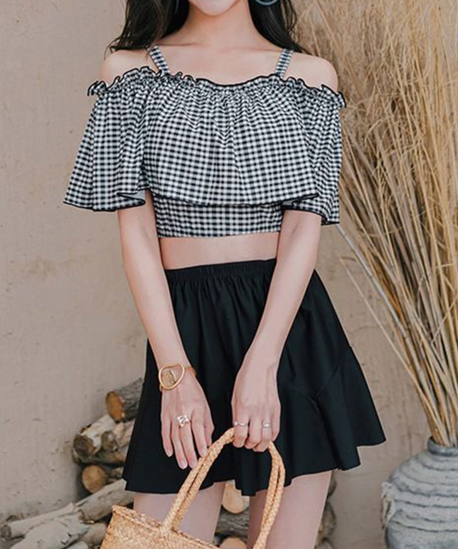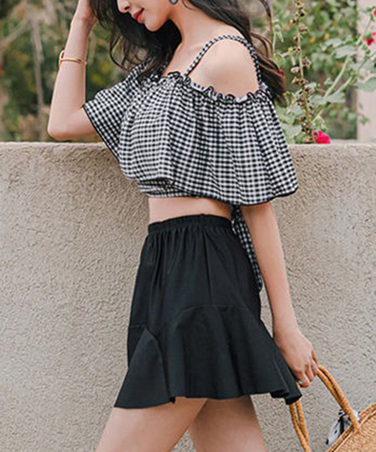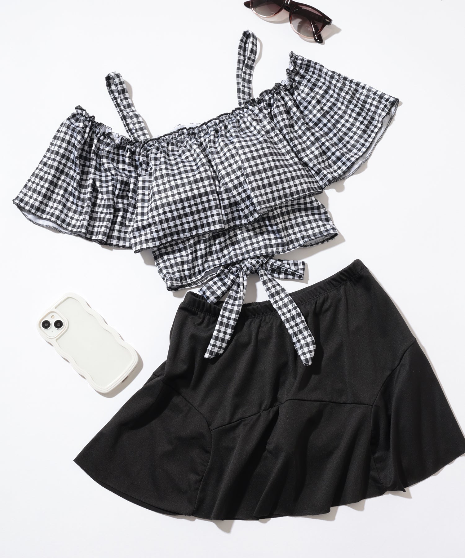 【2点セット】チェック柄 オフショル スカート タンキニ