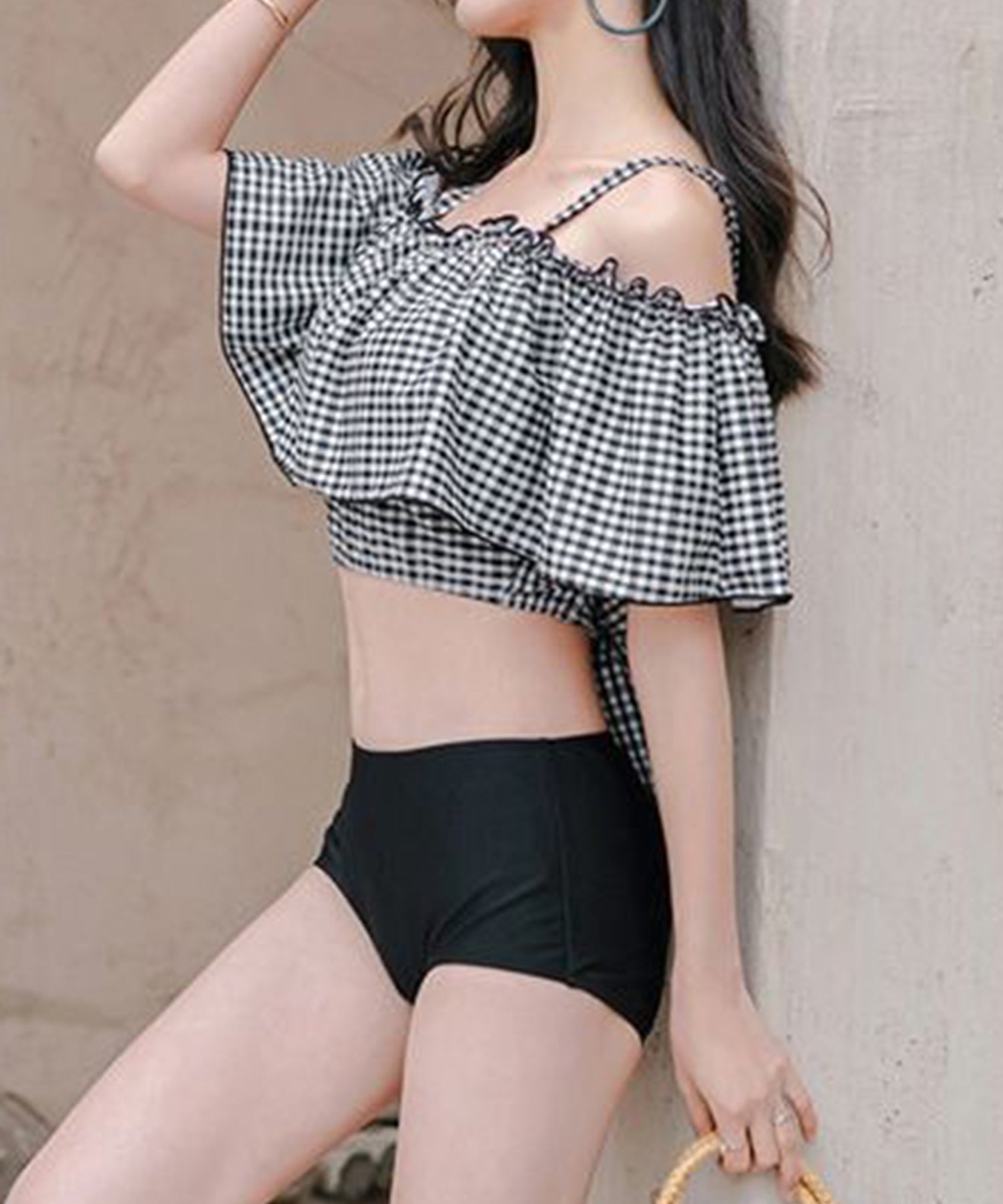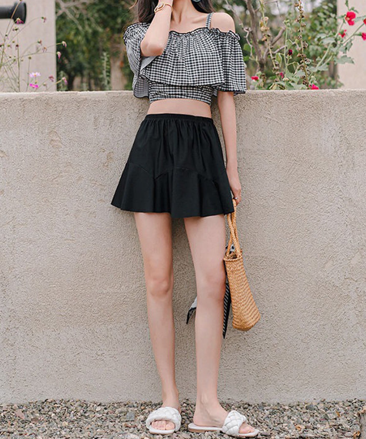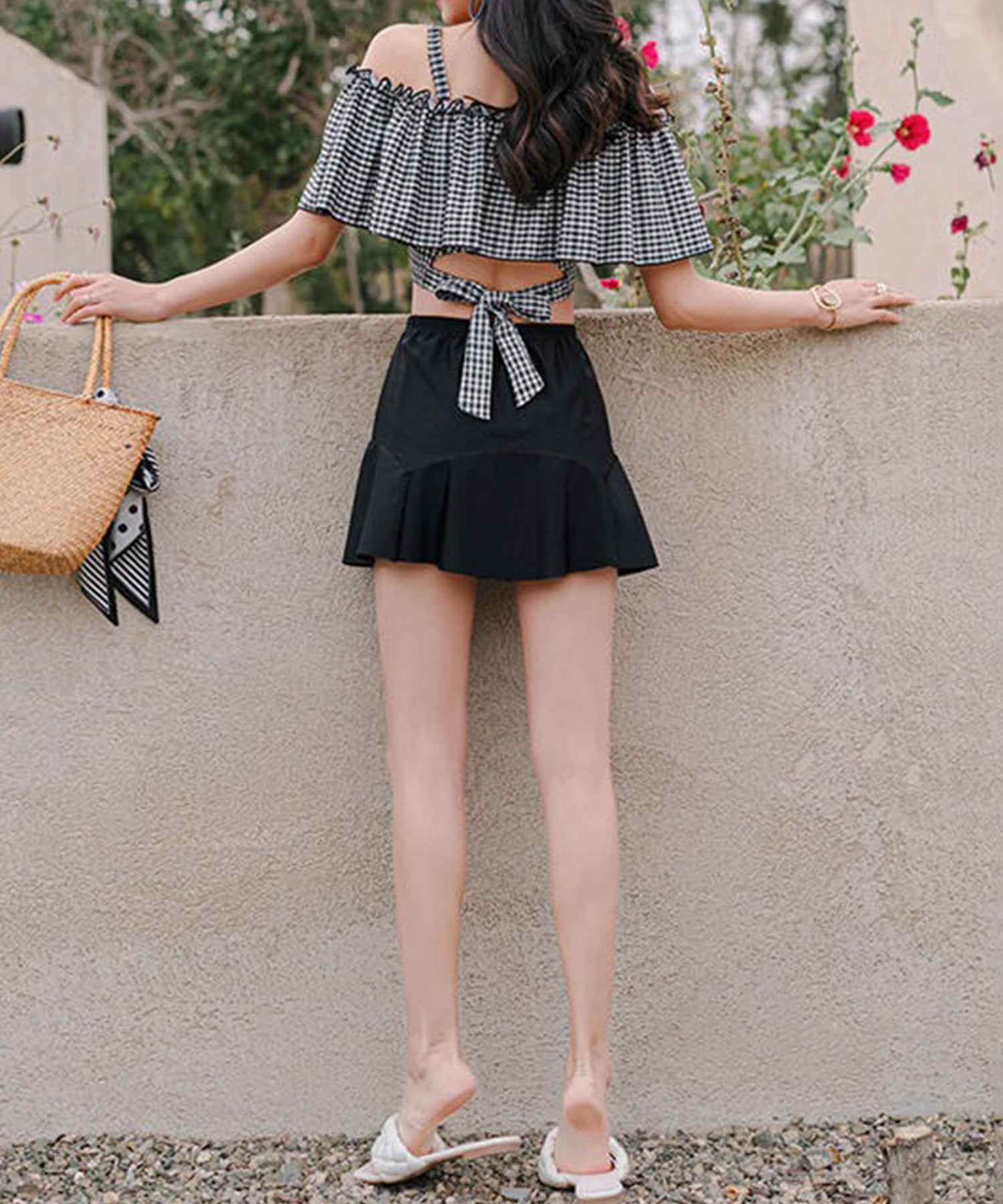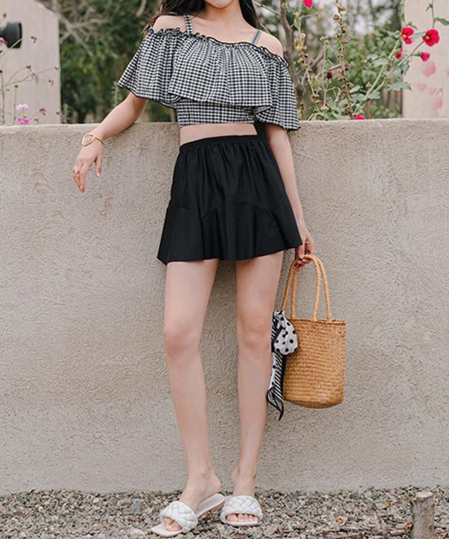 【2点セット】チェック柄 オフショル スカート タンキニ