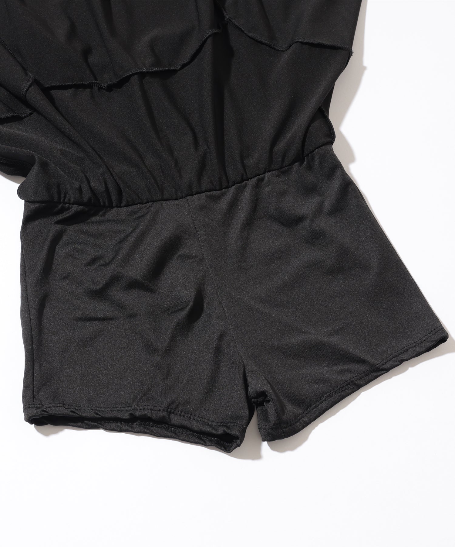 チュールフリル ケープ付き スリット キャミソール ドレス