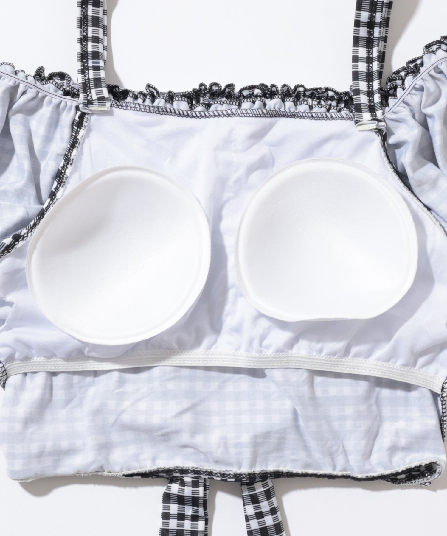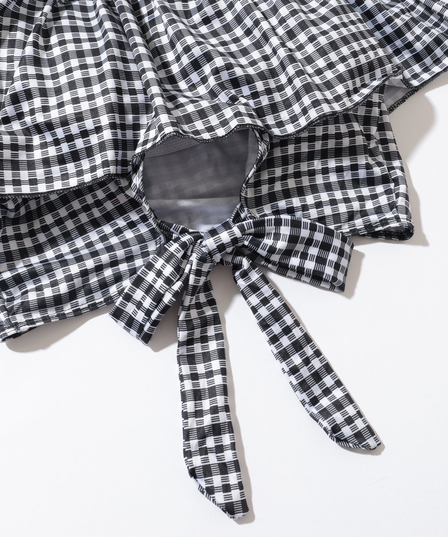 チェック柄が目を引く、スカートタイプのタンキニセット。