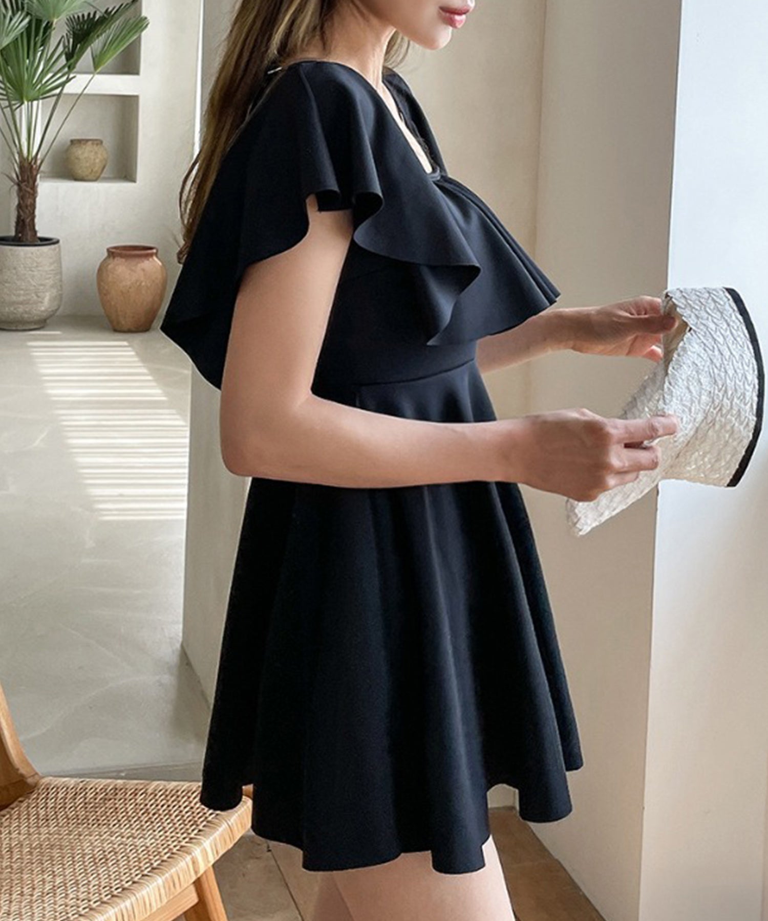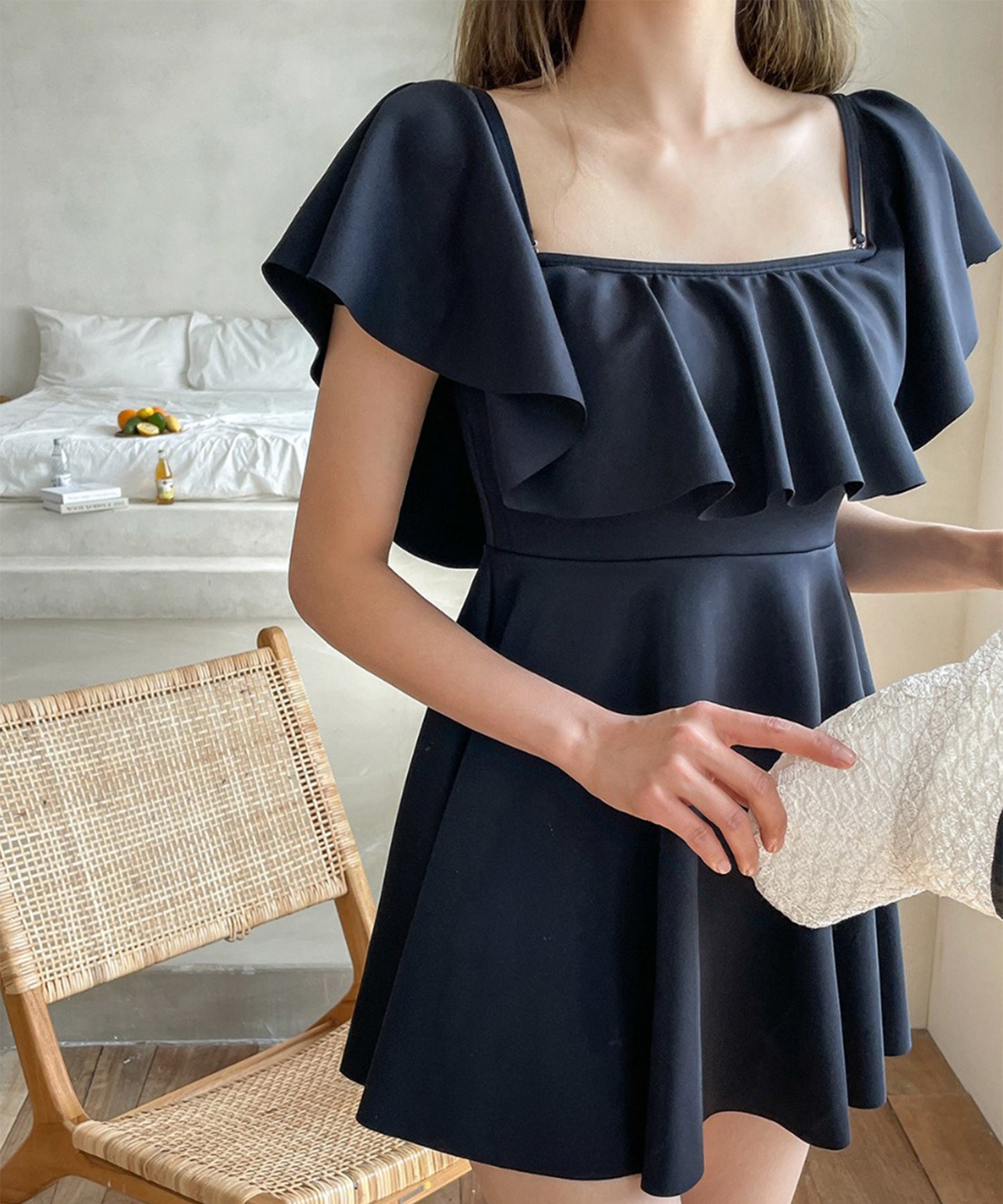 リゾート感溢れるオールインワンスイムウエア。