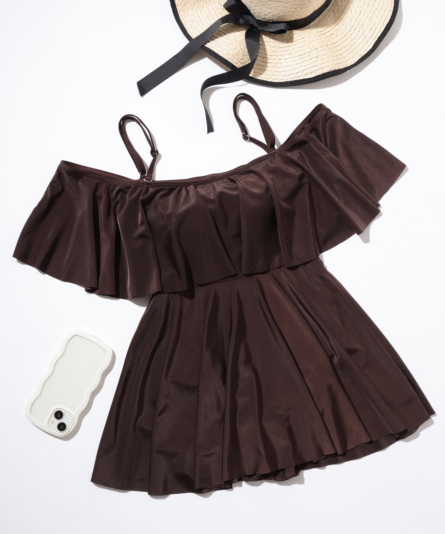 2WAY オフショル フリル ワンピース スイムウエア