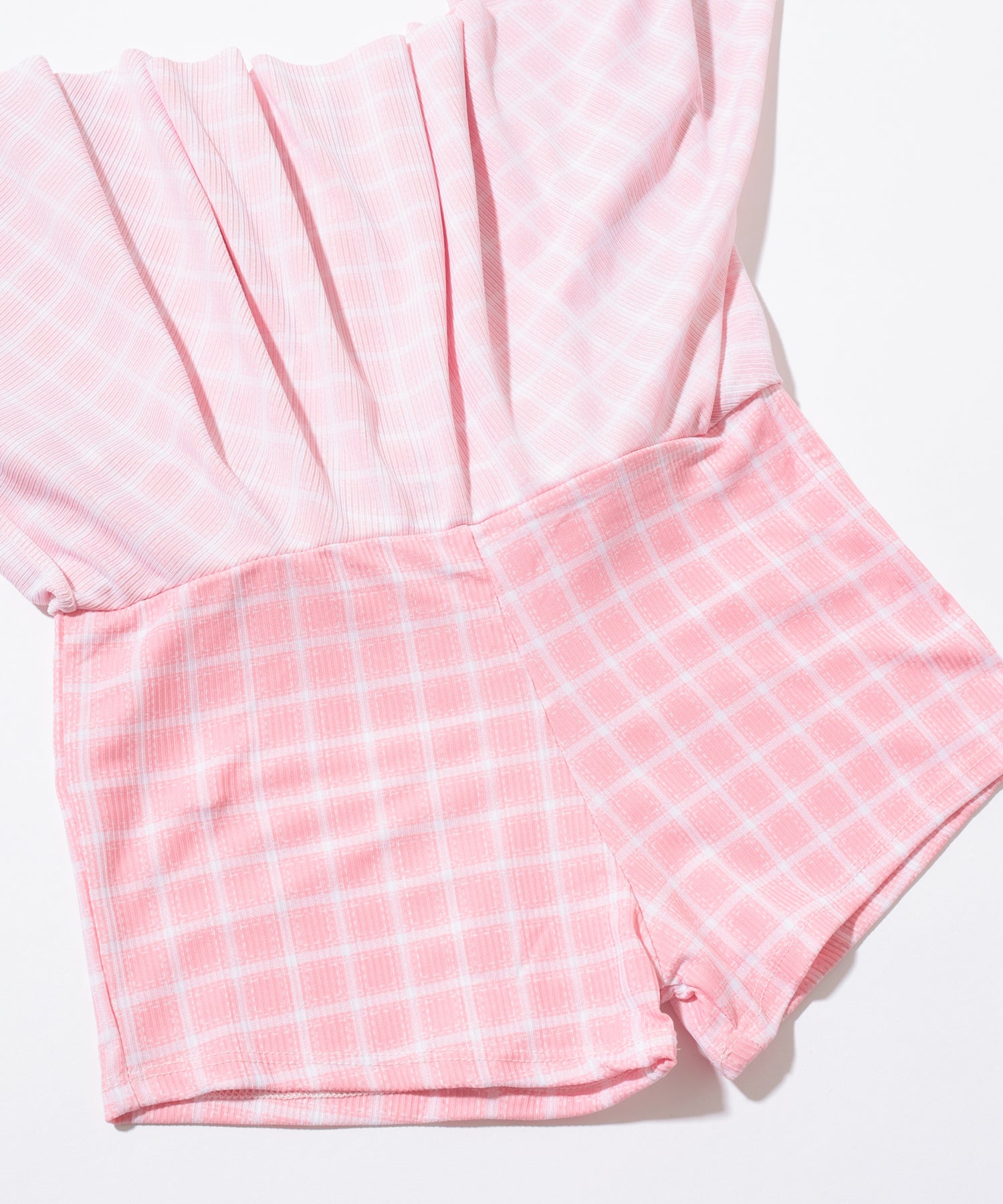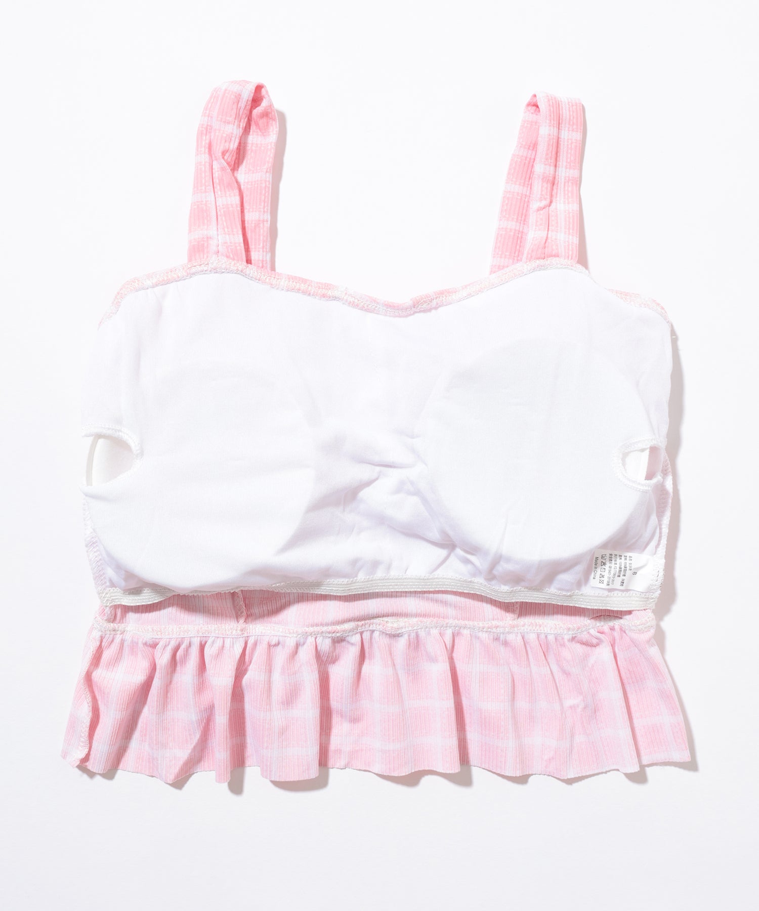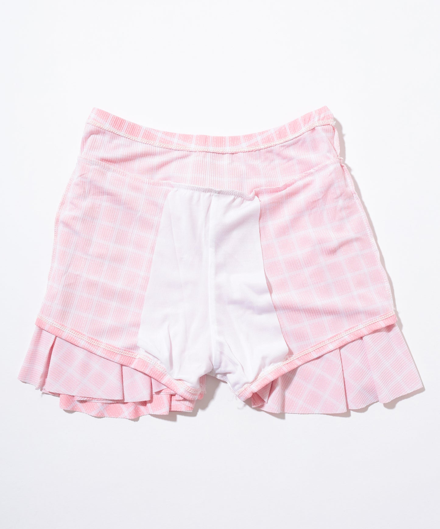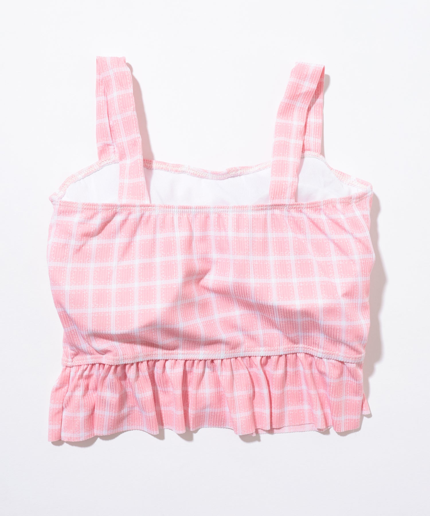 【2点セット】ビスチェ風 フリル レースアップ チェック柄 水着