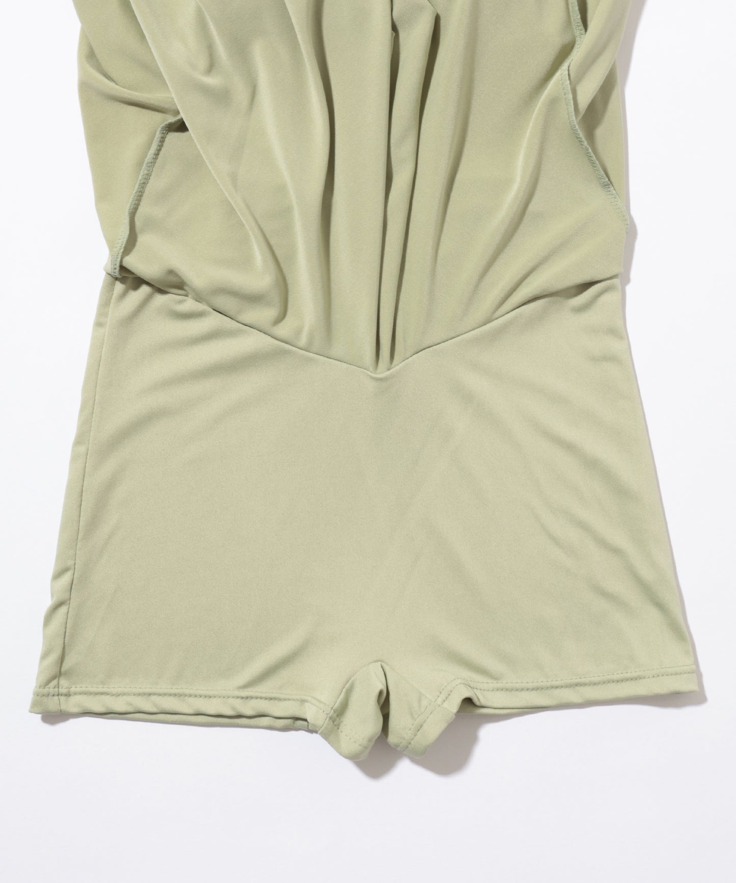 お腹のギャザーデザインで、ウエストまわりがほっそりと見えるので、スタイルアップ効果も期待できます。