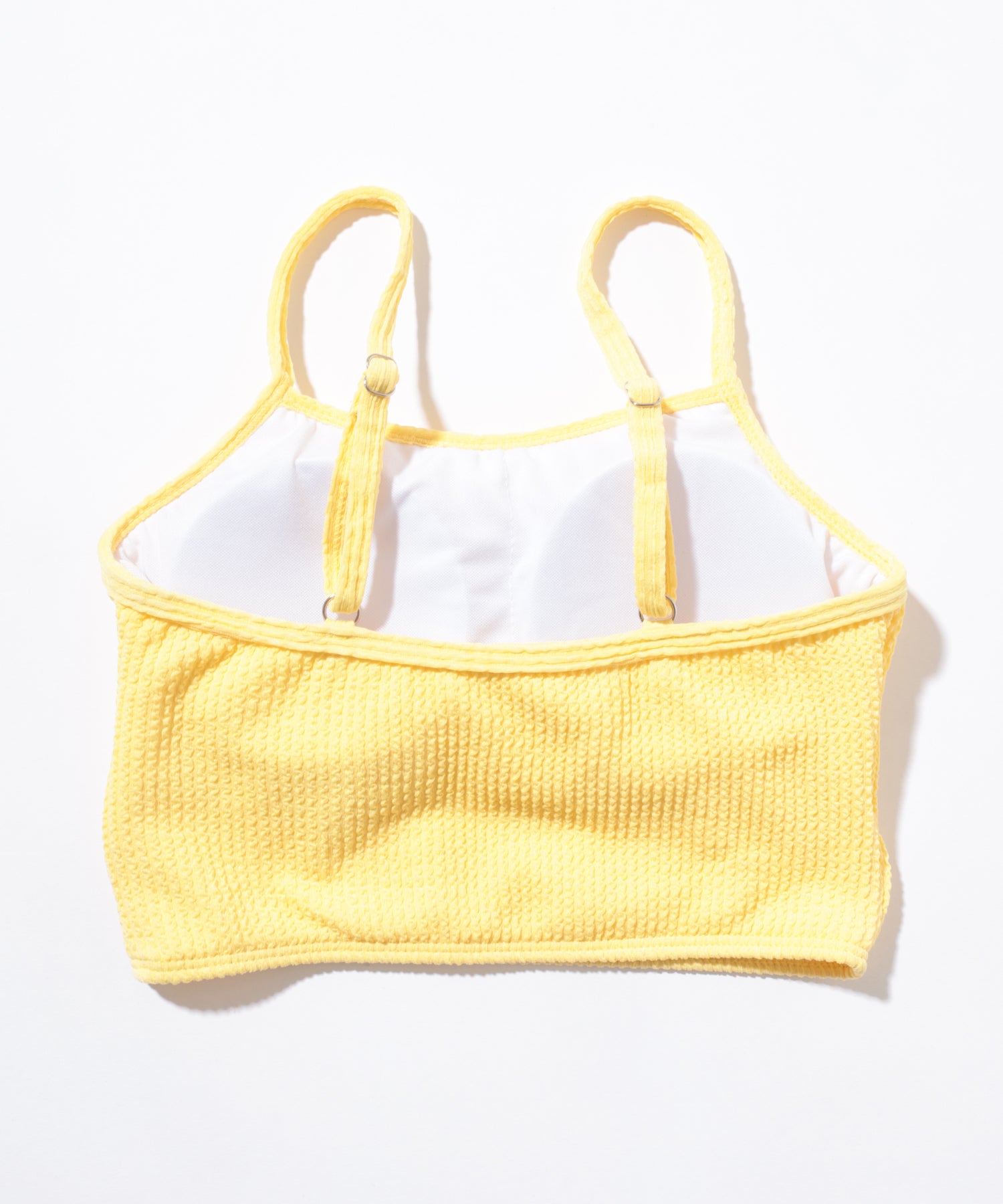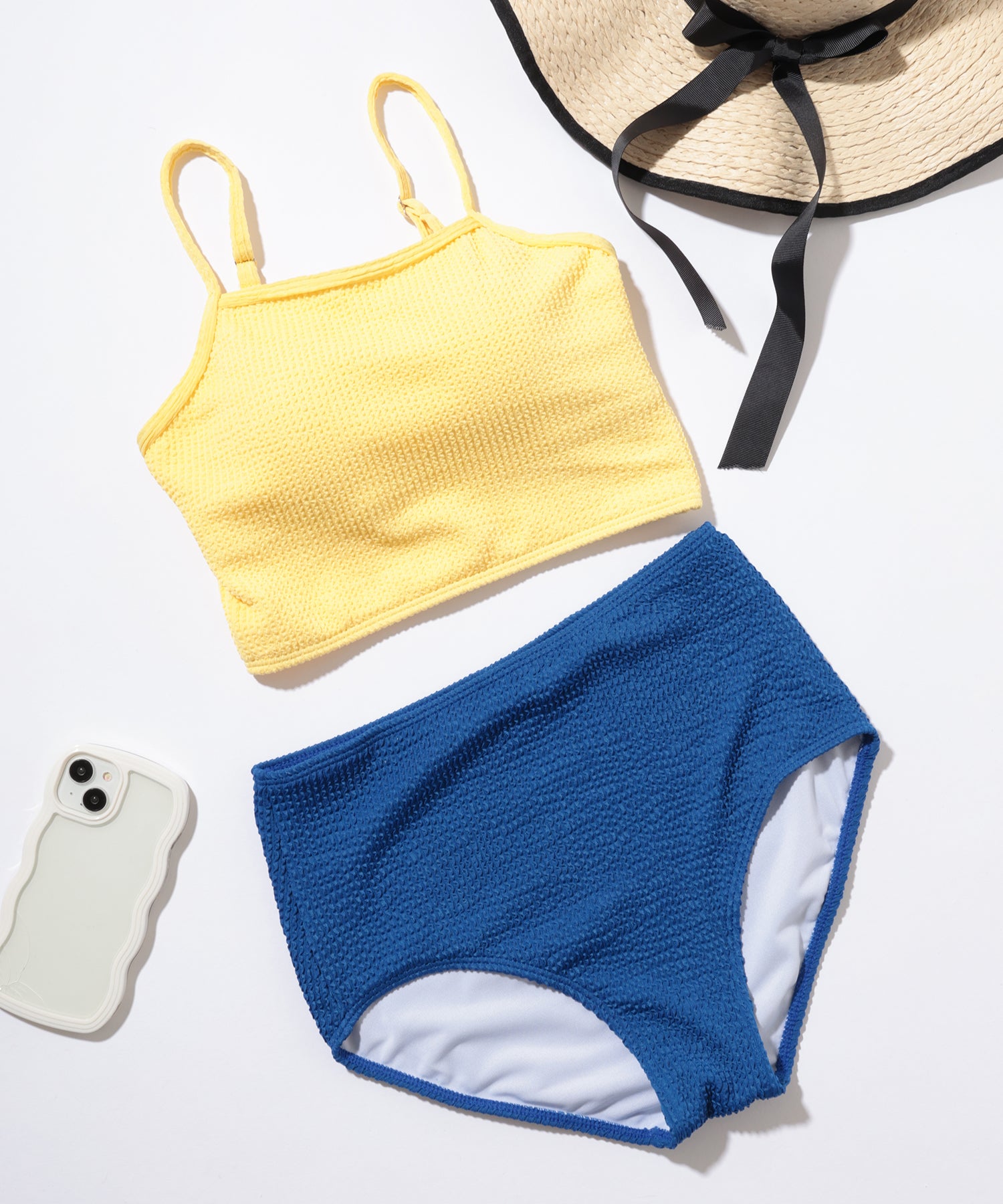 キャミソールタイプのトップスに、ハイウエストショーツをあわせたセットアップ水着。