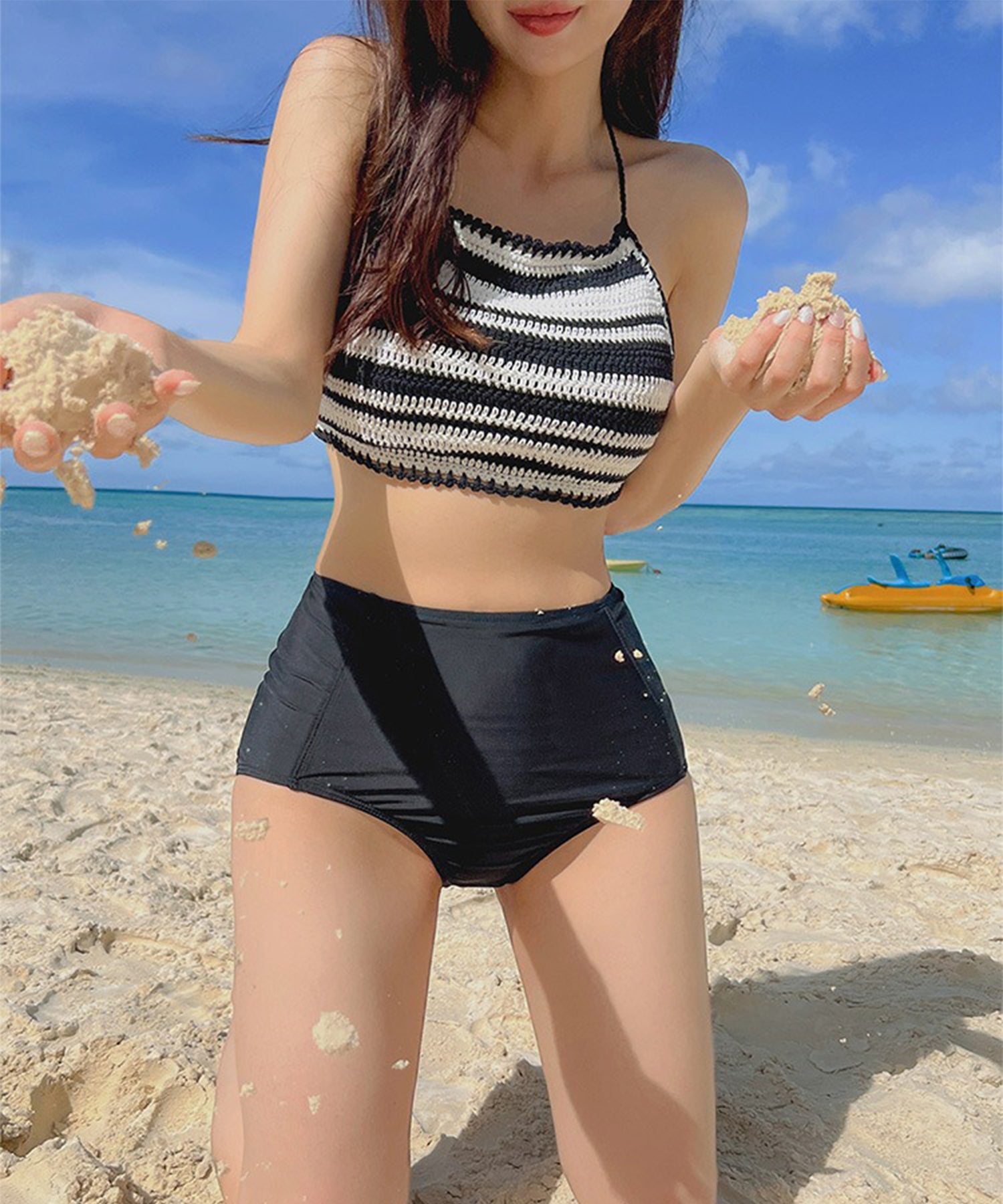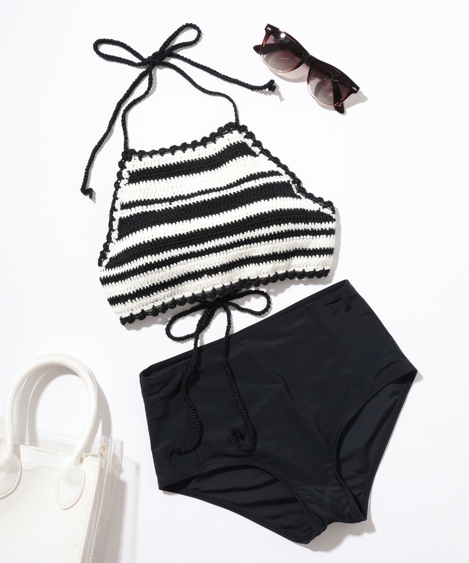 【2点セット】ボーダー柄 ホルター ニット ハイウエスト ビキニ