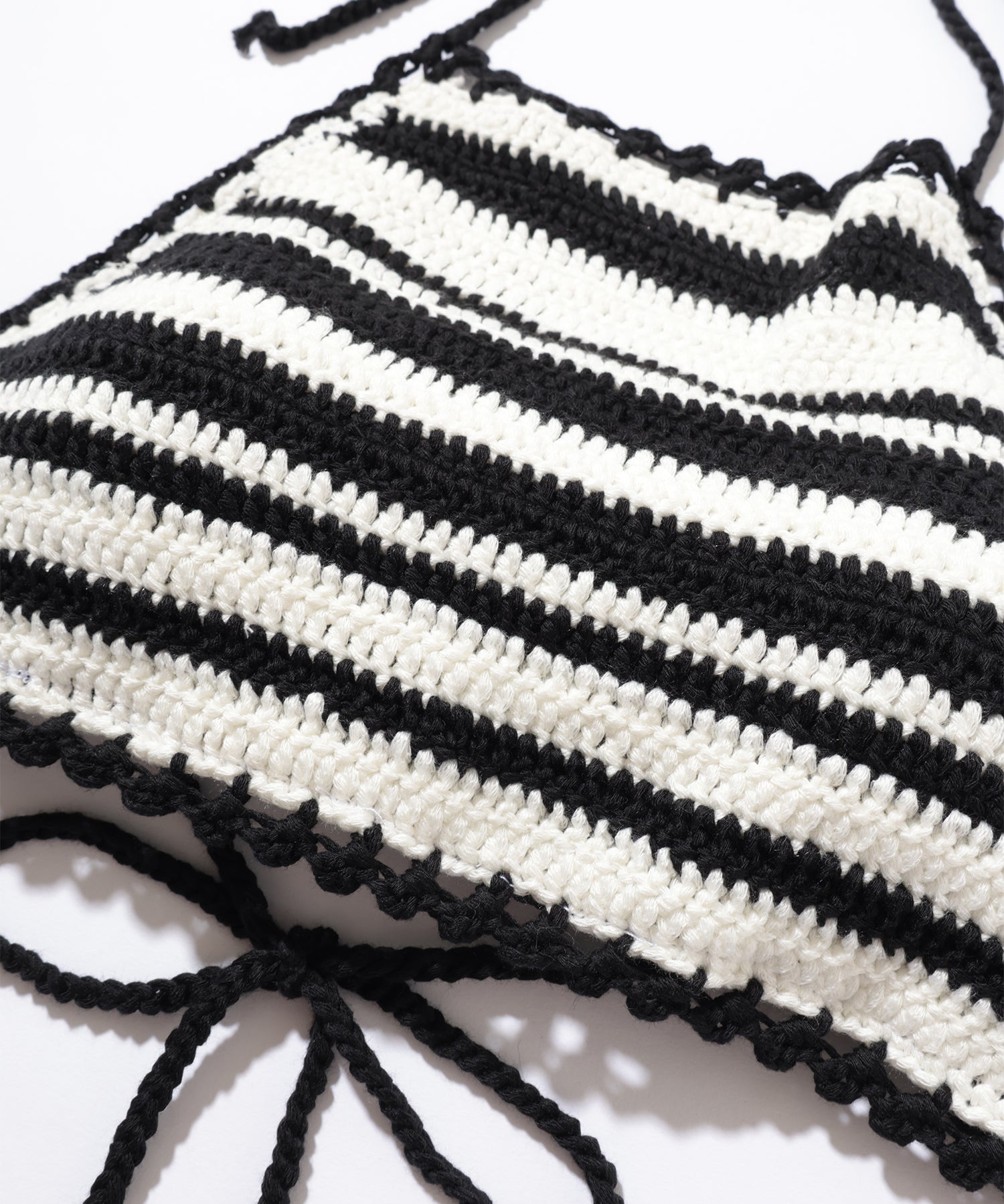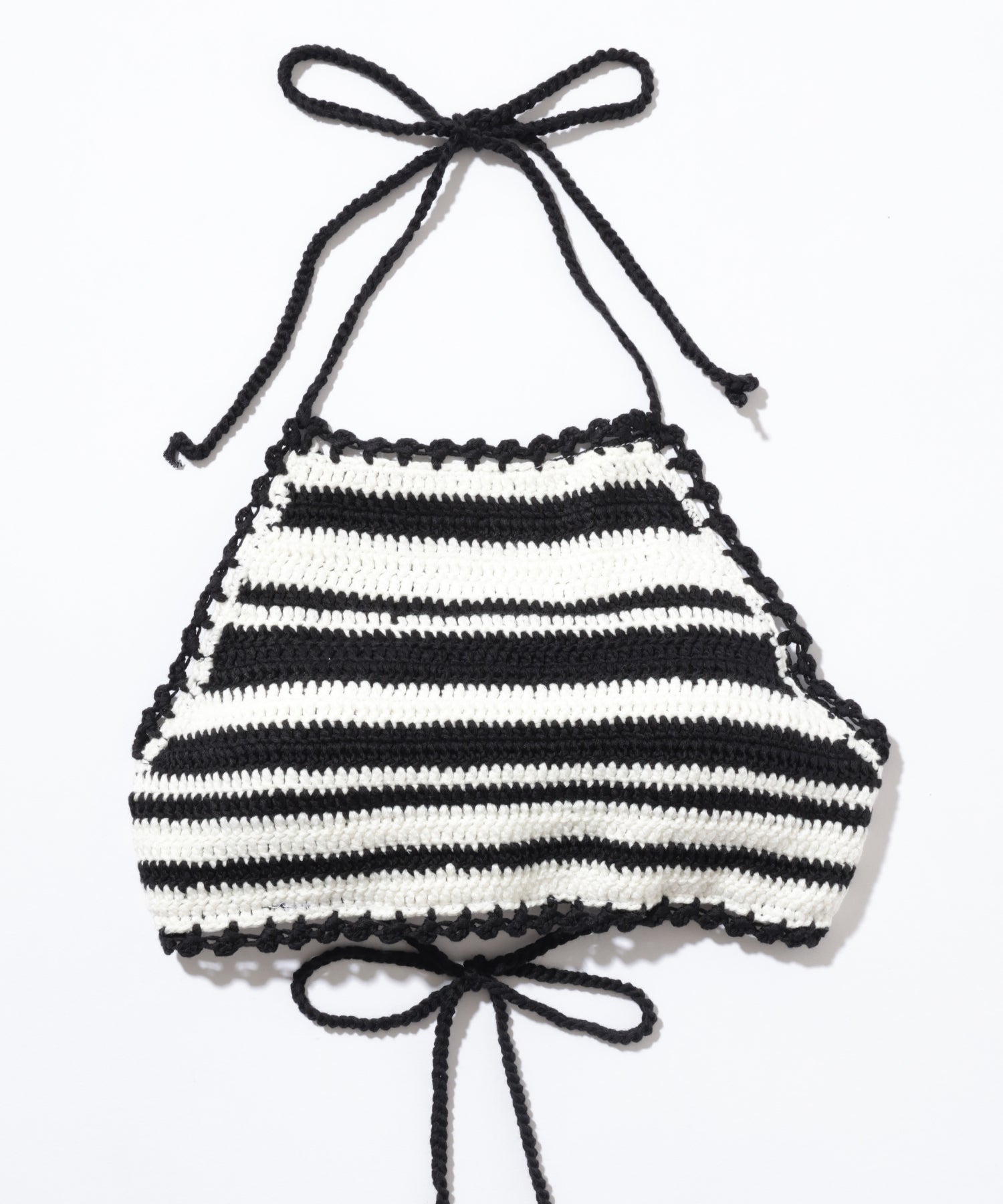 コントラストの効いたボーダー柄が目を引く、ホルタービキニ。
