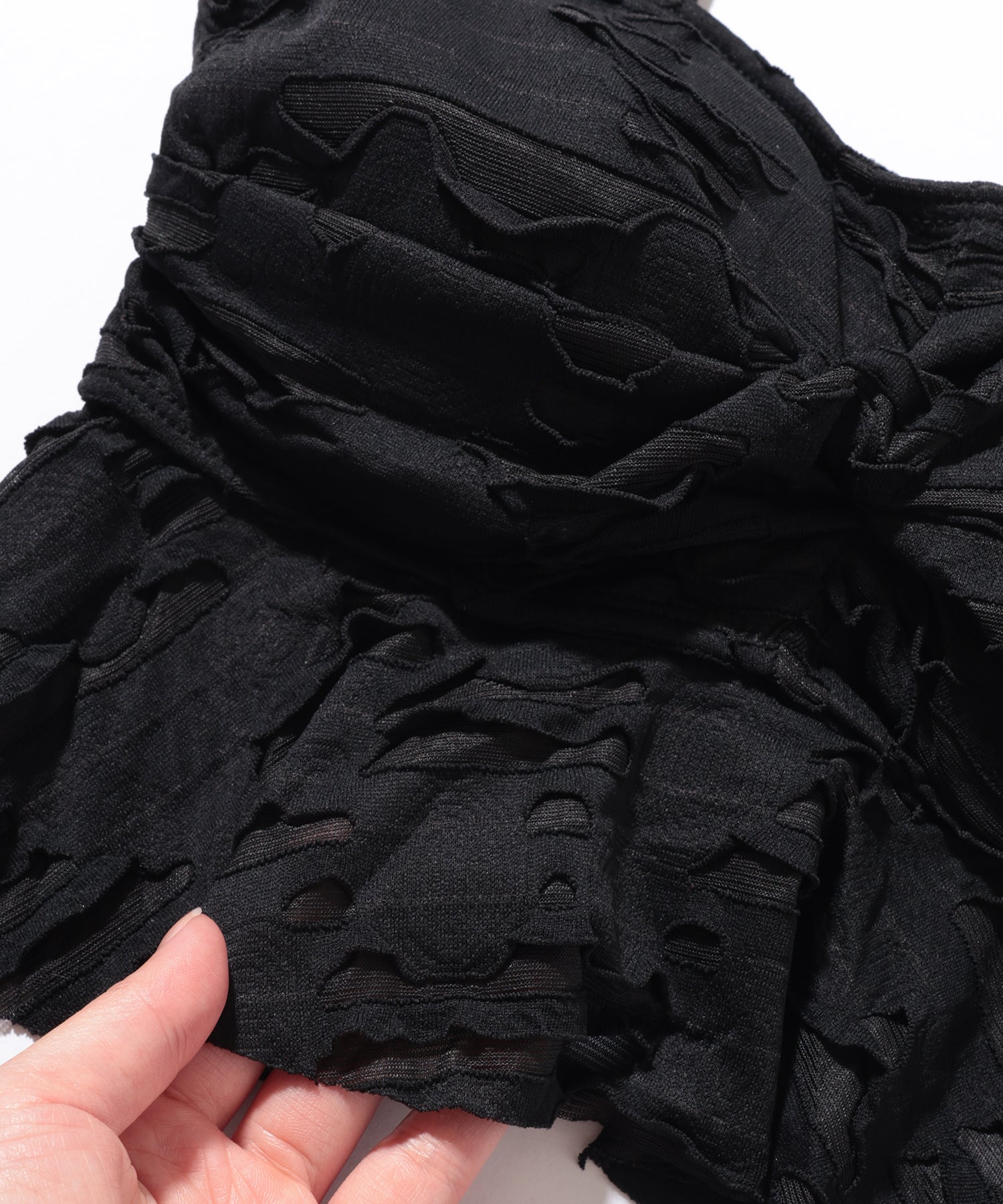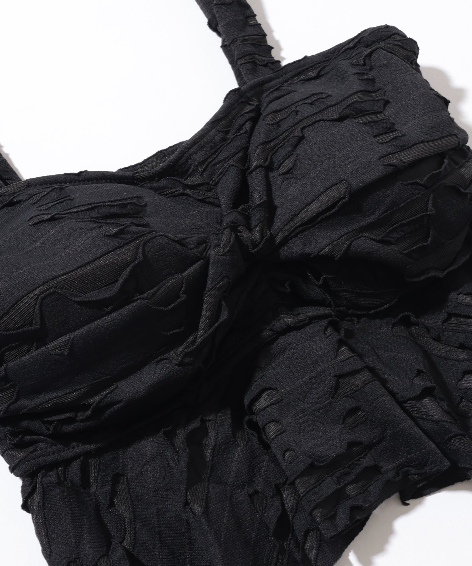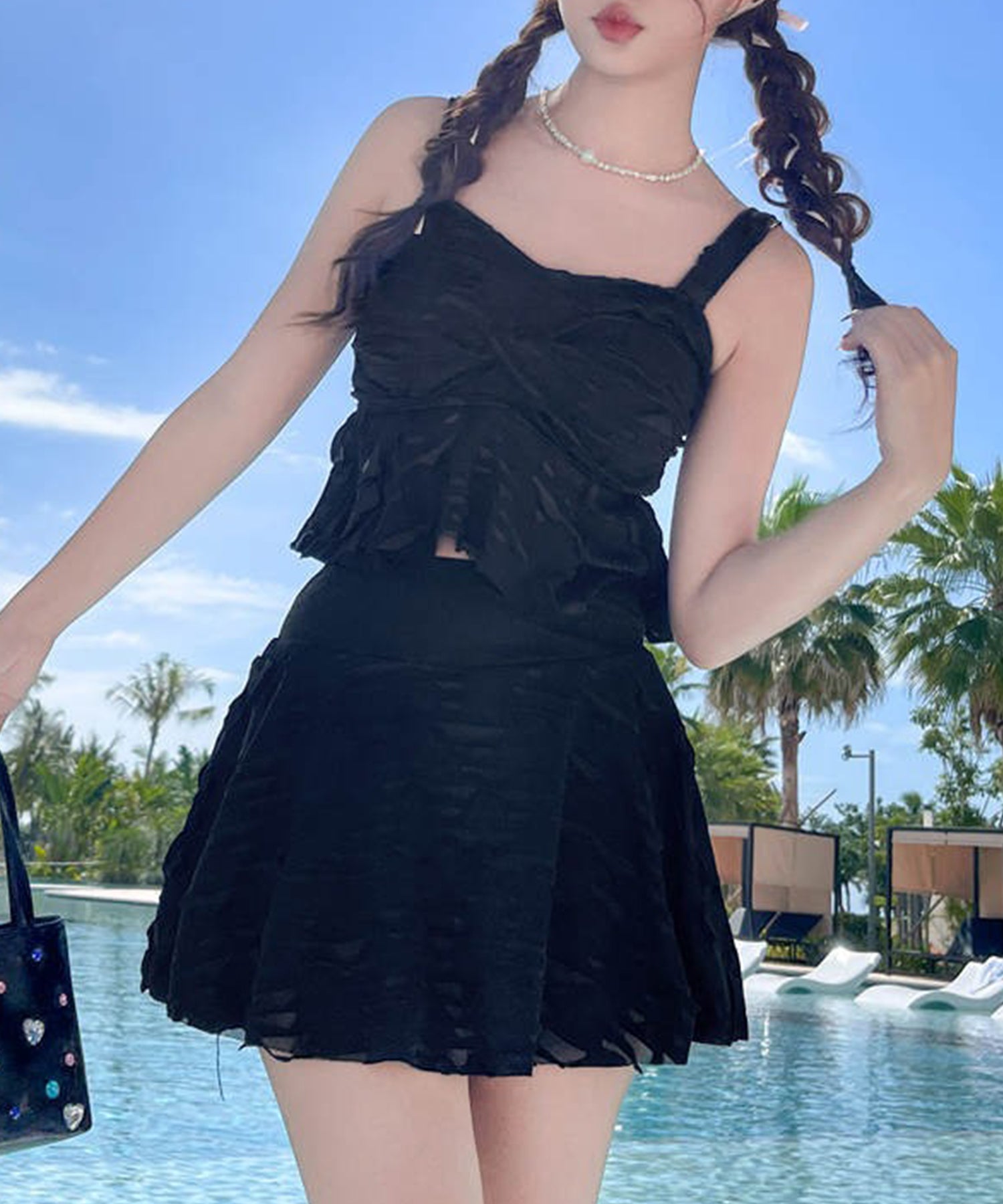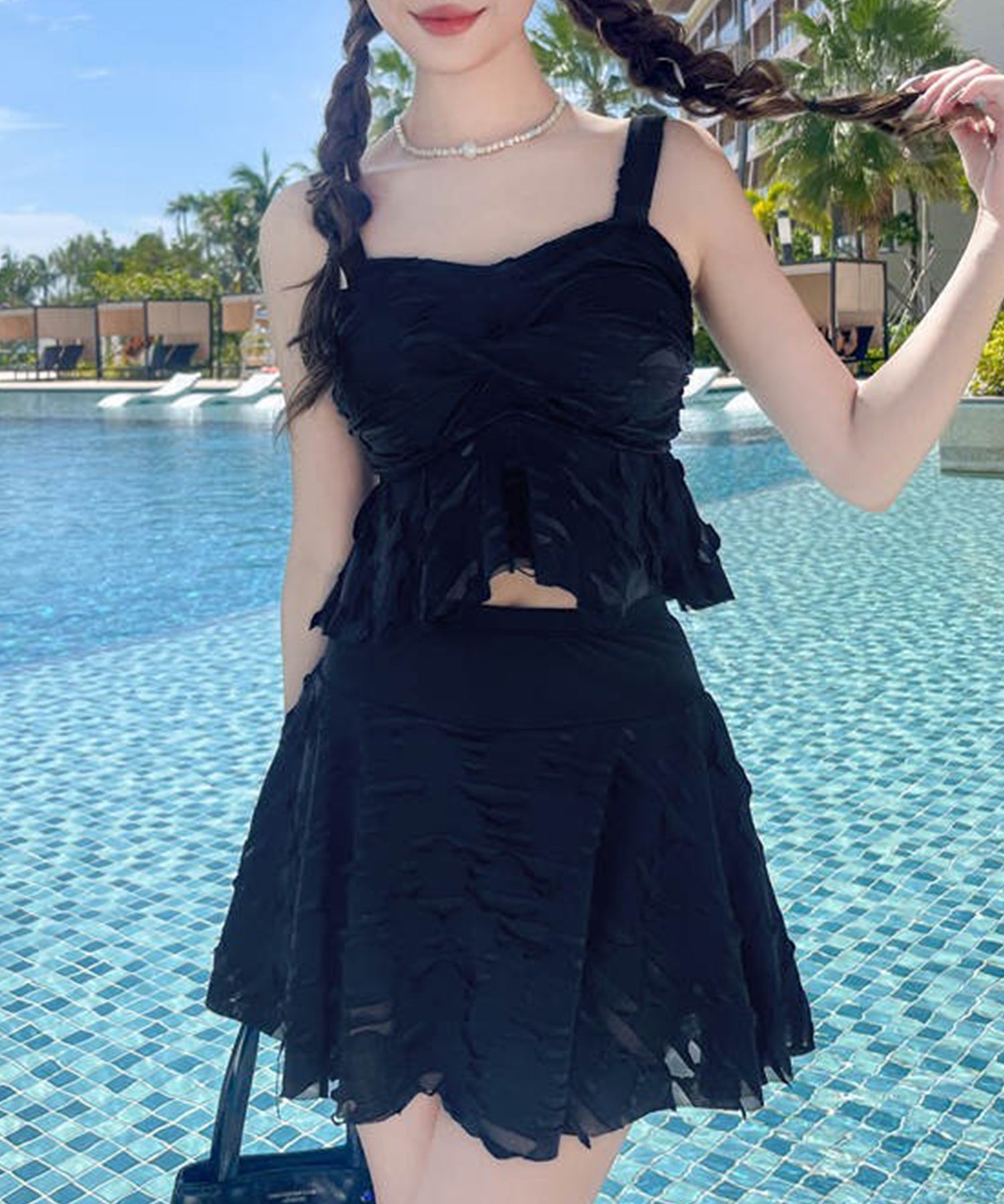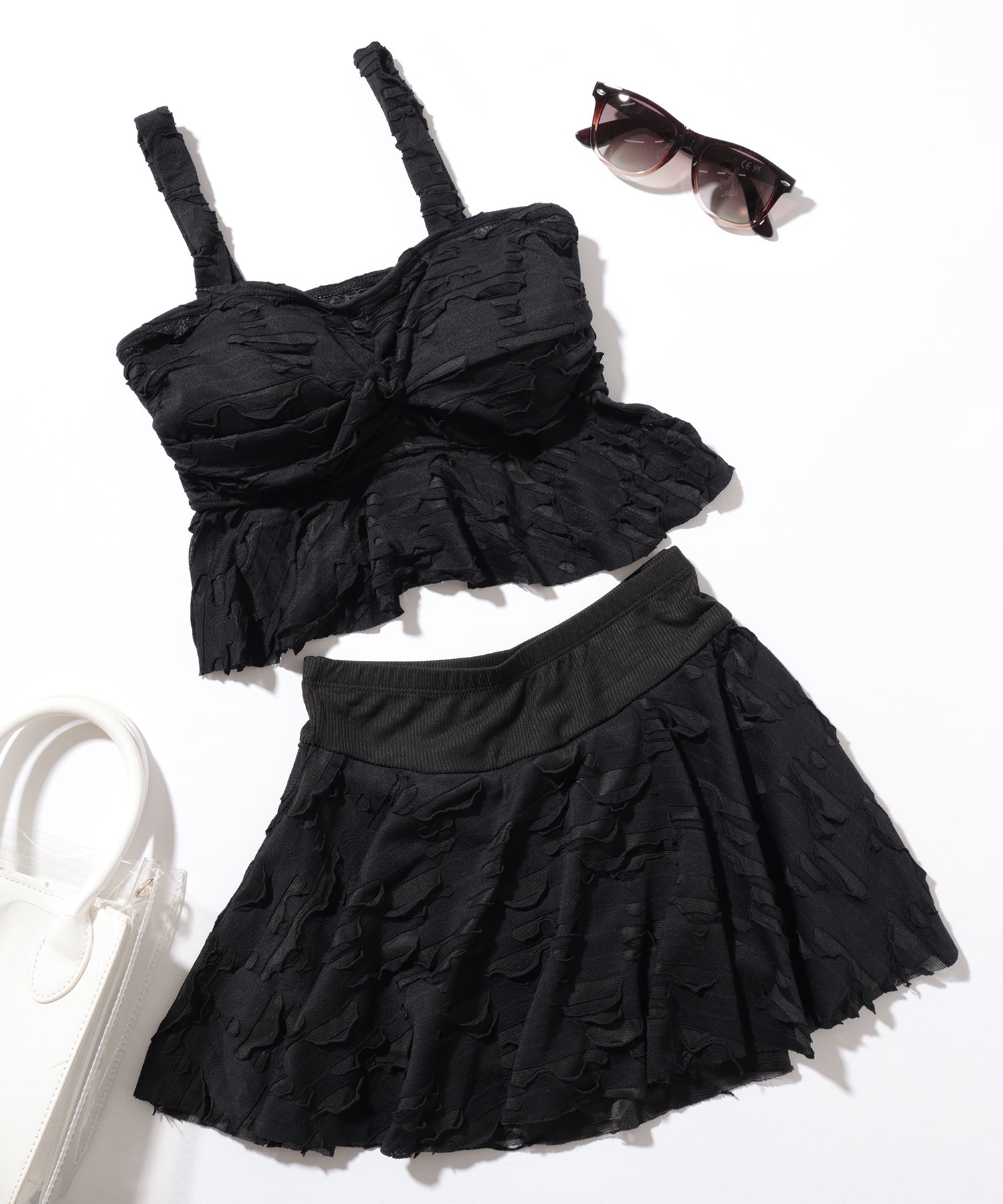 【2点セット】ジャガード調 ツイスト ペプラム フレア セパレート 水着