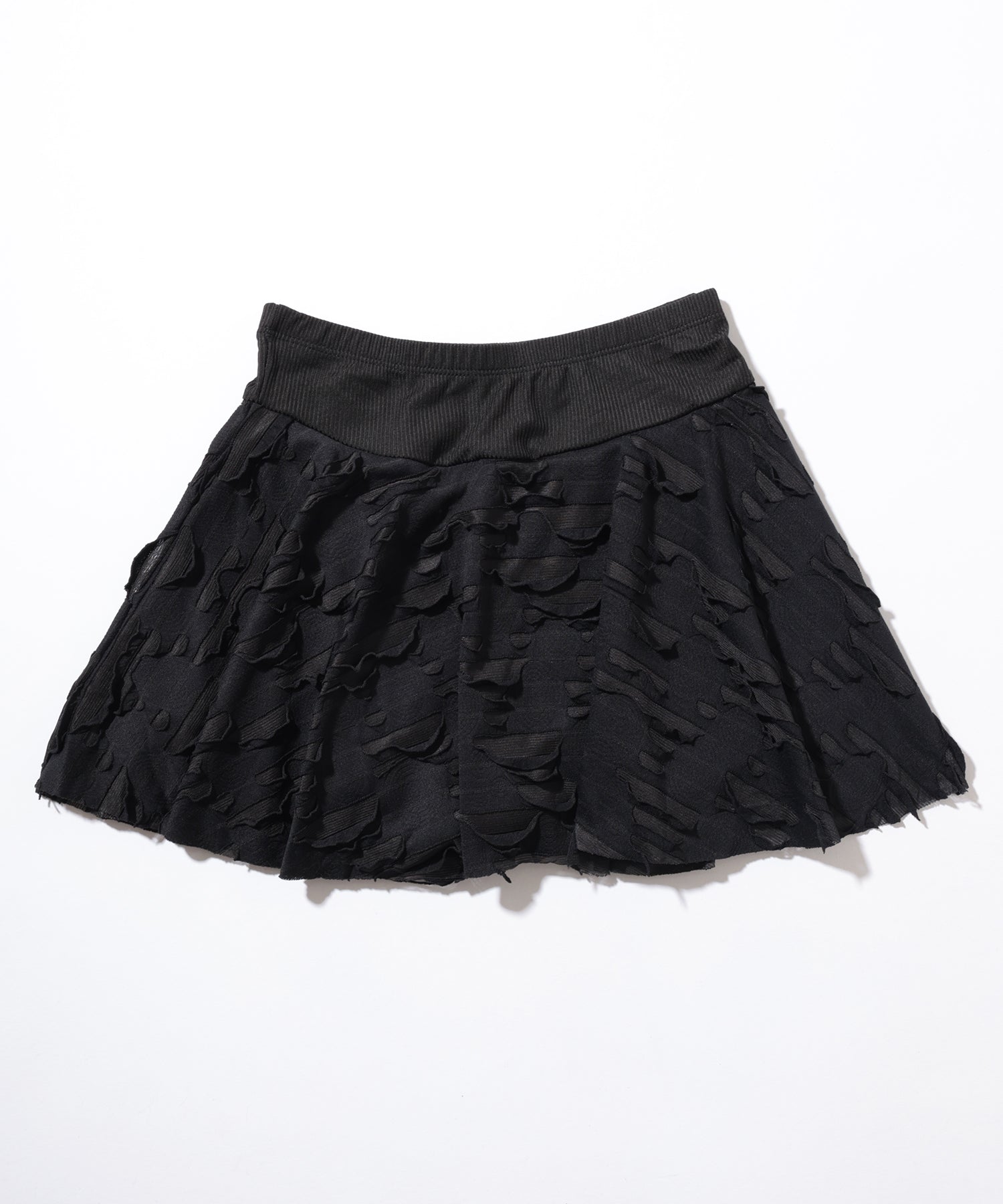 スカートは穿き口まわりをシンプルに切り替えることでメリハリのあるデザインに。