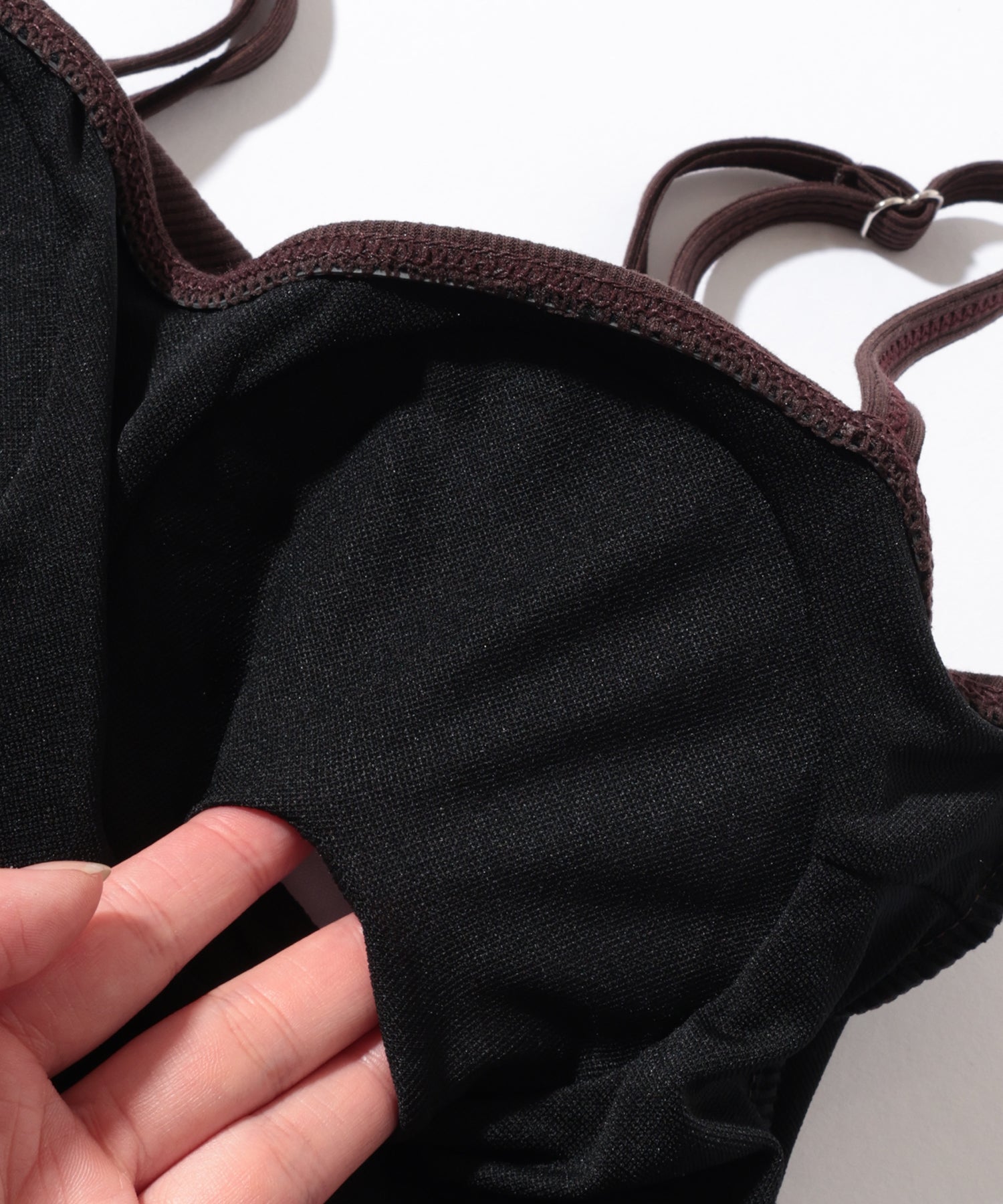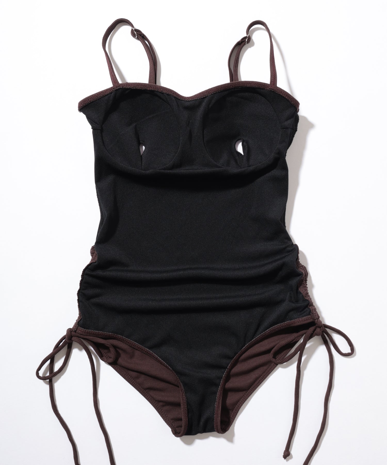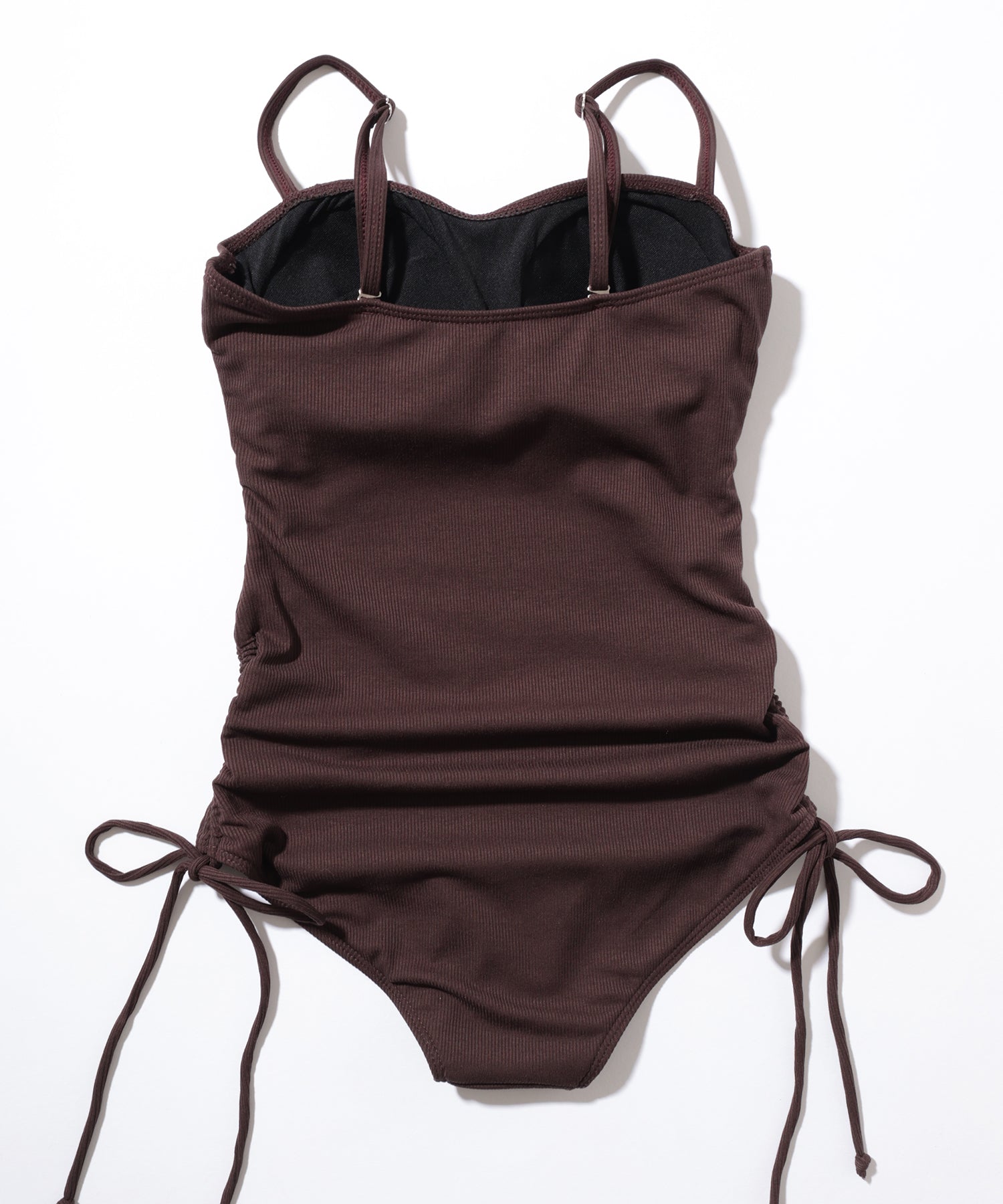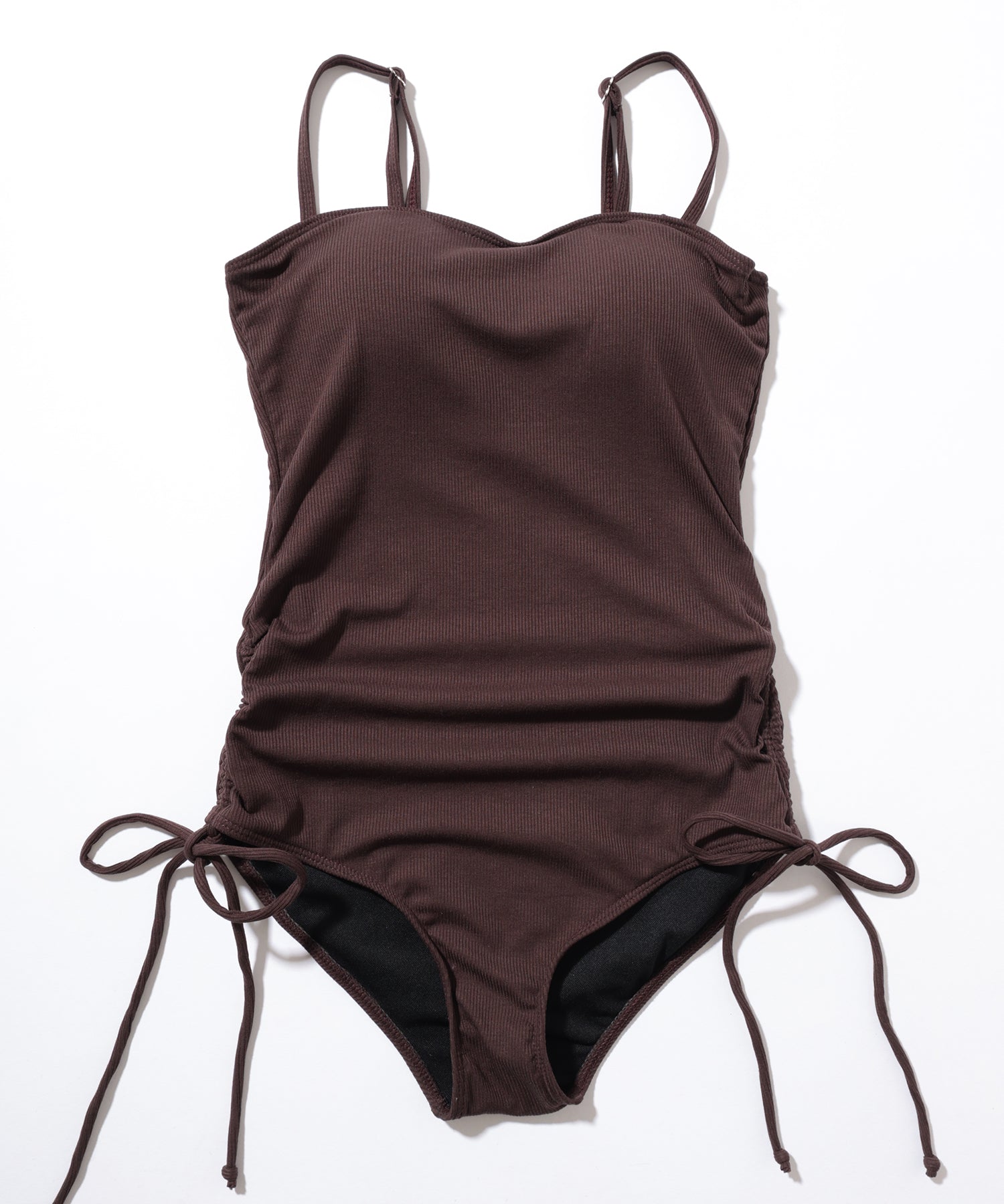 シンプルで落ち着きのあるリブ素材のワンピース水着。