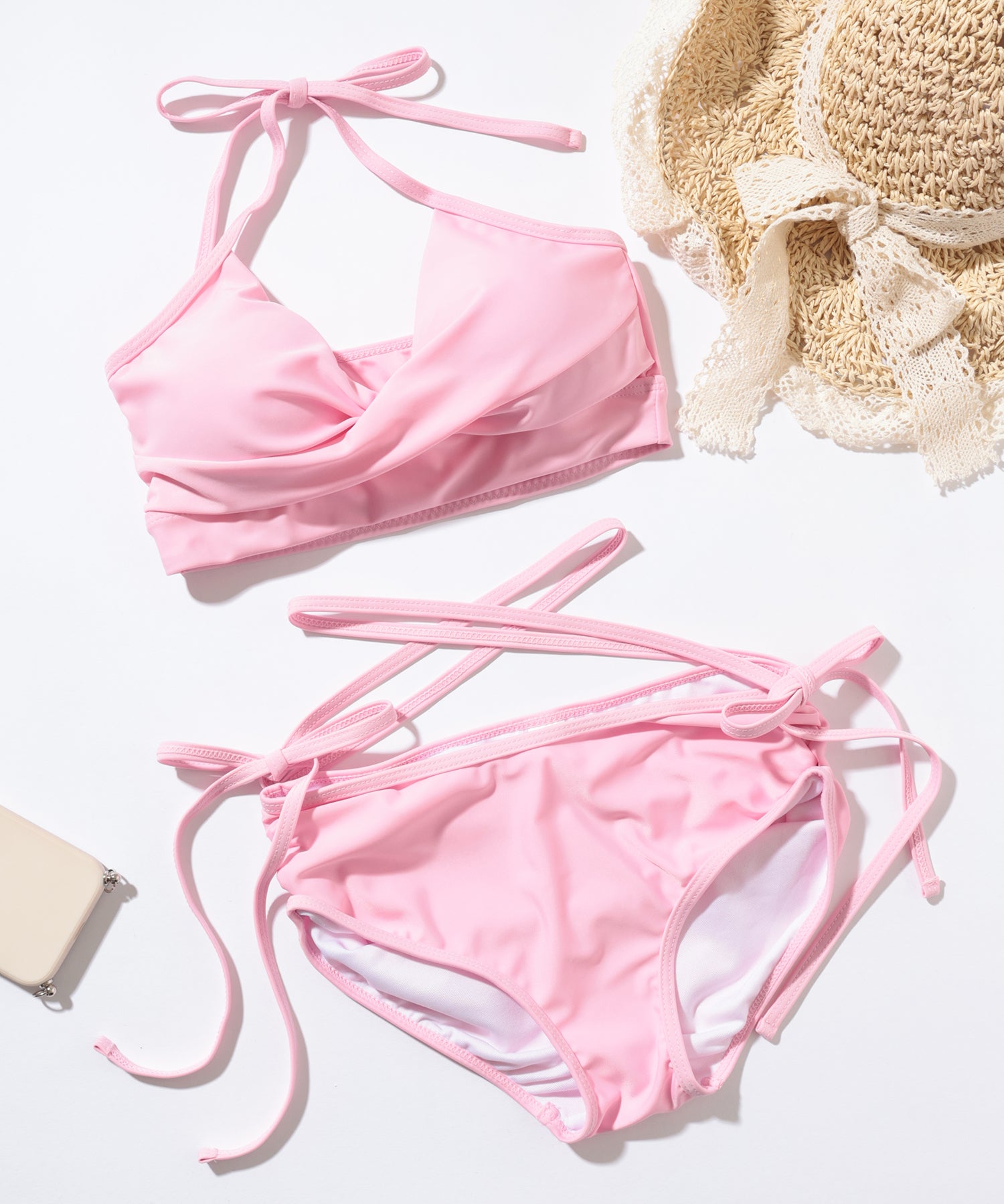 【2点セット】ツイスト クロスストラップ ホルターネック ビキニ 水着