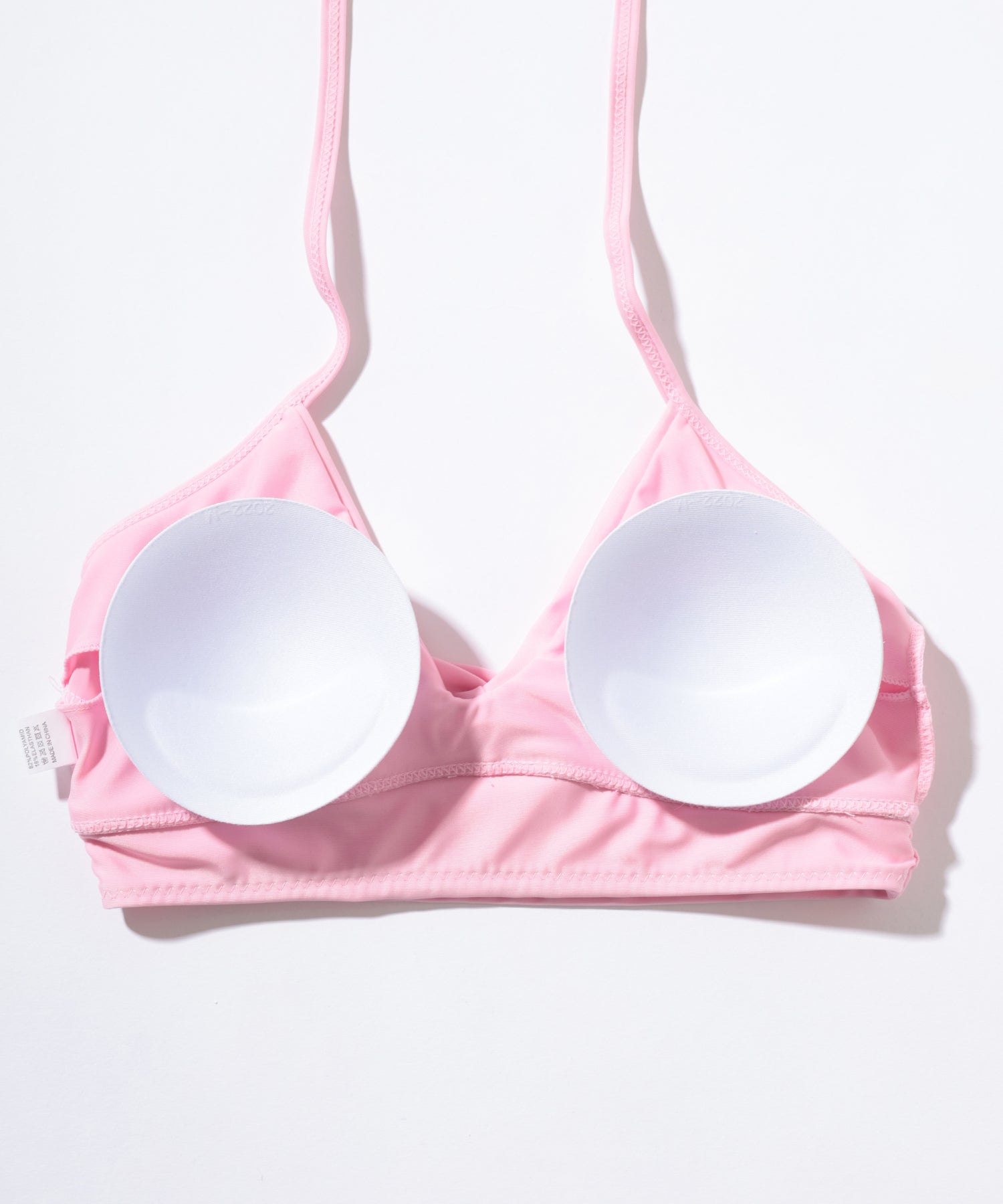 ブラトップのフロントはツイストで立体感を出し、アンダー部分を幅広に設定して、ホールド感を高めました。