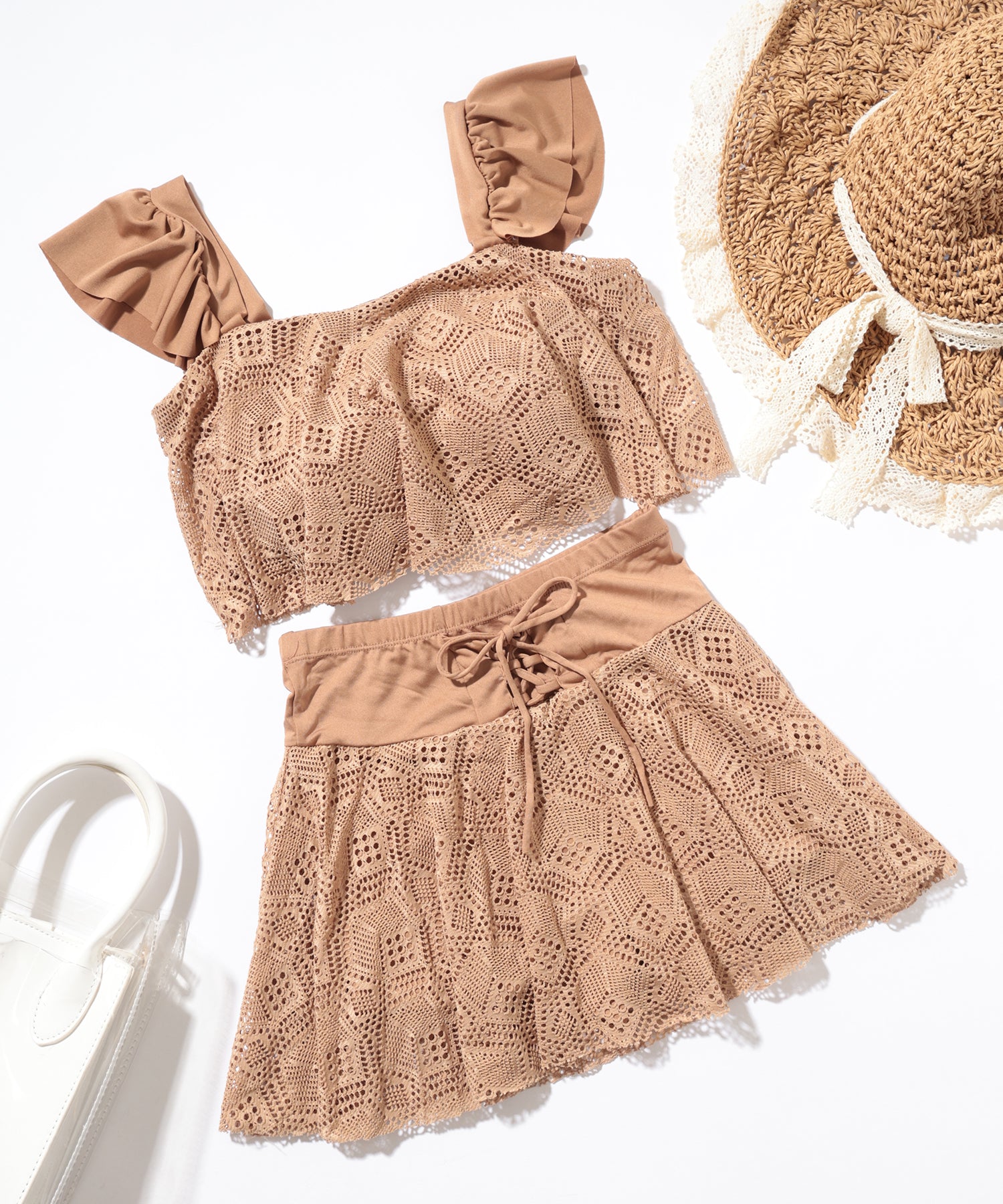 【2点セット】レース スクエアネック フレア セパレート 水着