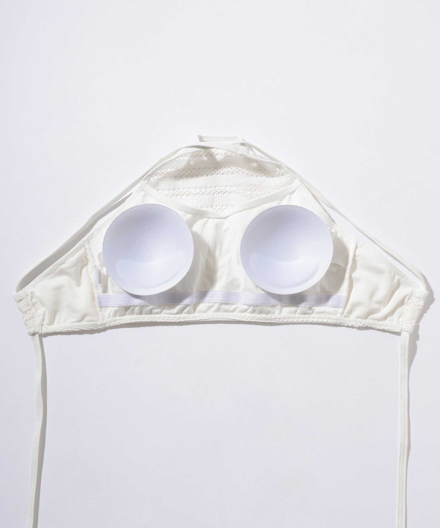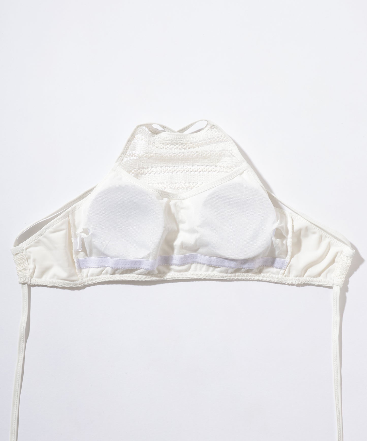 バックスタイルはクロスにして結ぶ、肌感強めのセンシュアルなルックス。