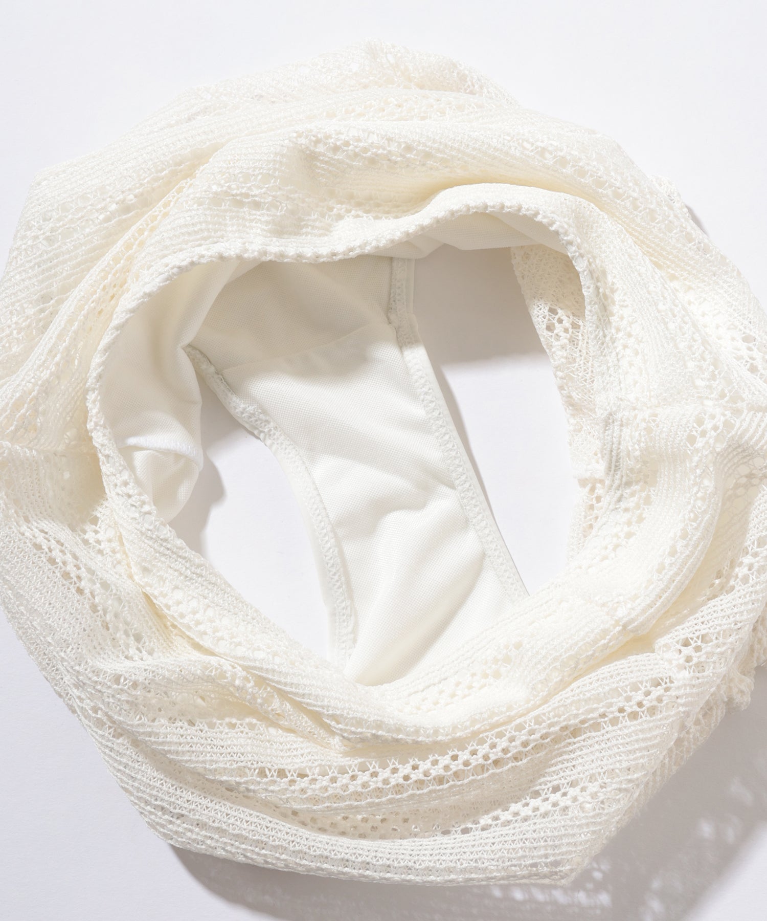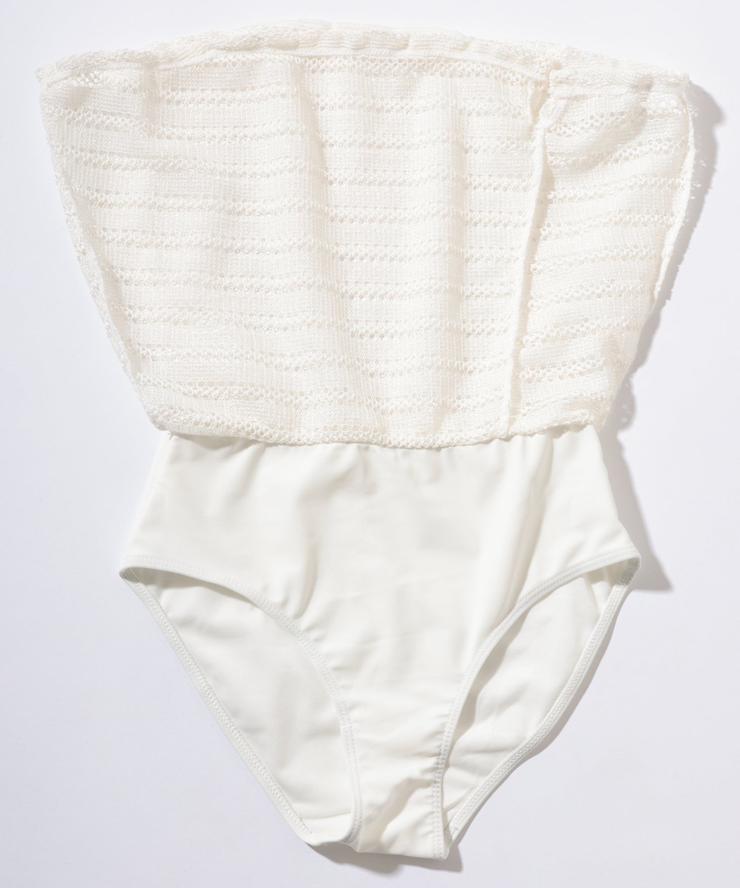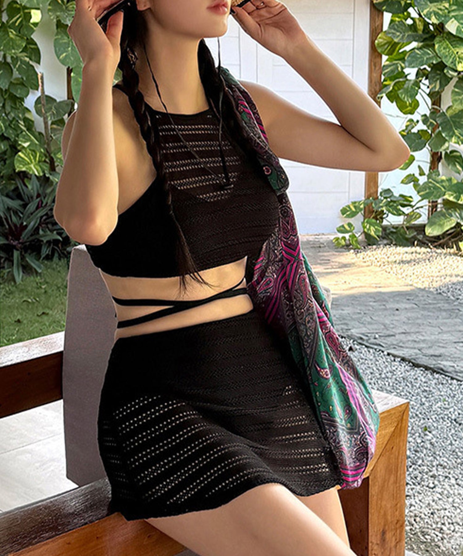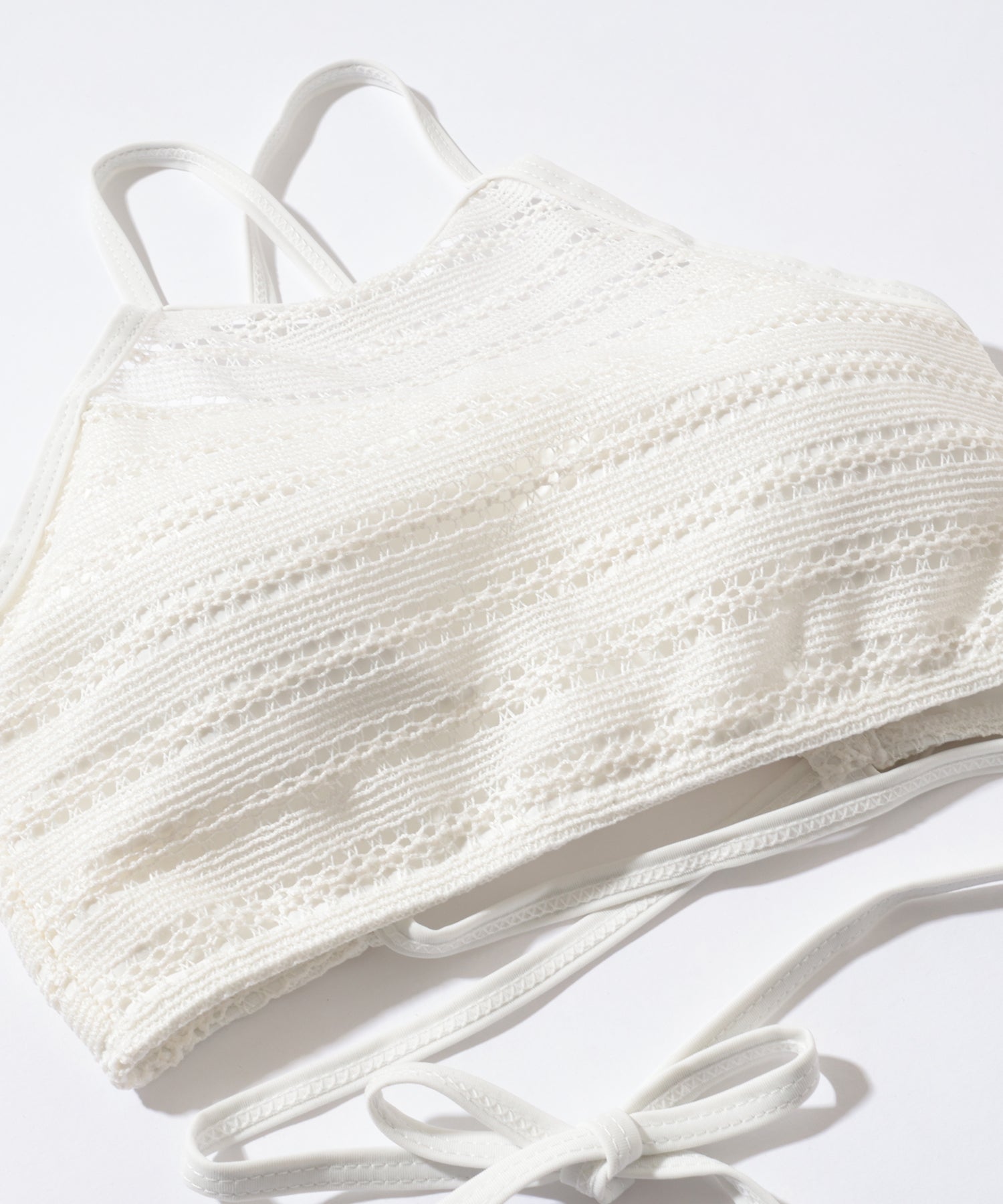 パンチングを施したレース編みが涼やかなセパレート水着。