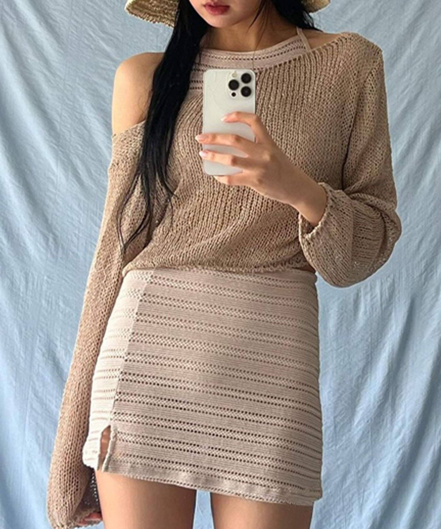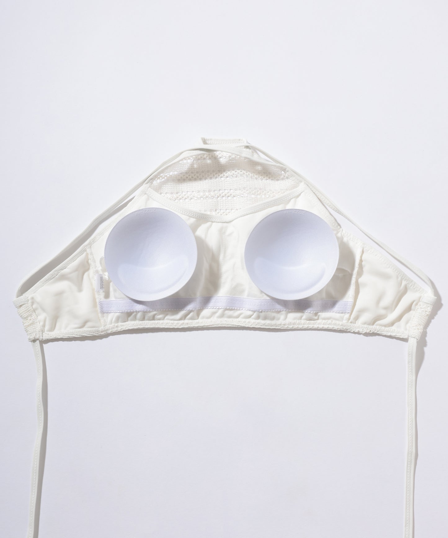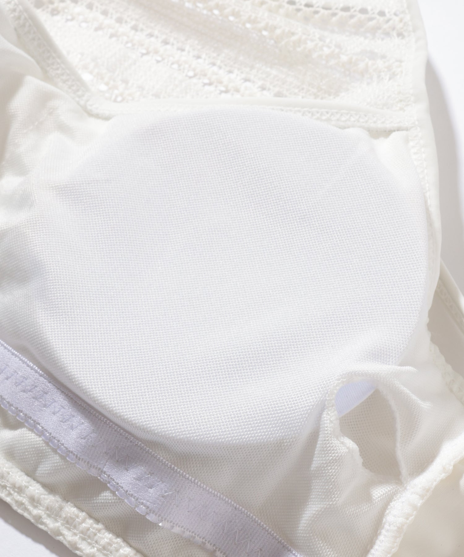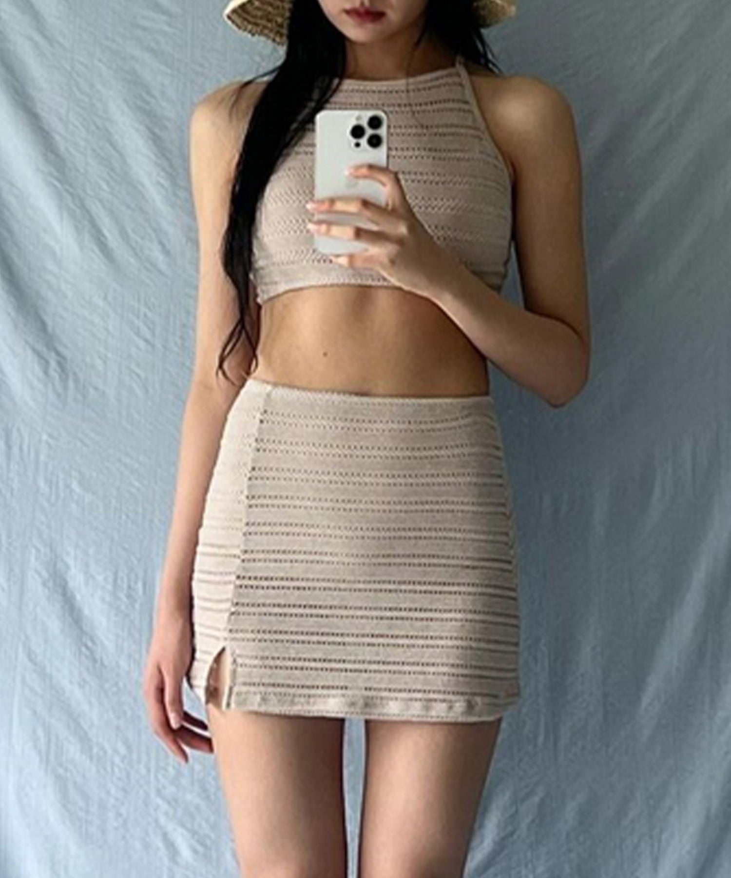 パンチングを施したレース編みが涼やかなセパレート水着。