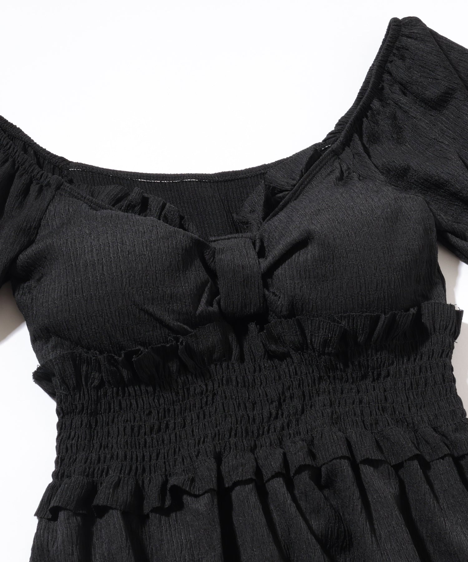表面感のある生地にフリルをあしらって、スイートな雰囲気に仕上げました。